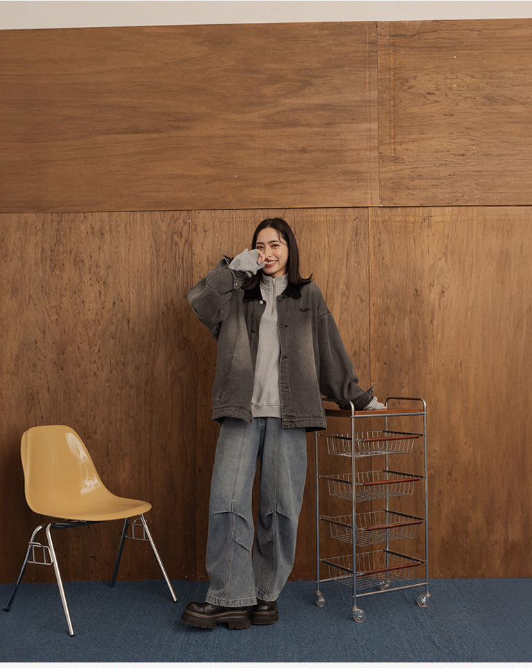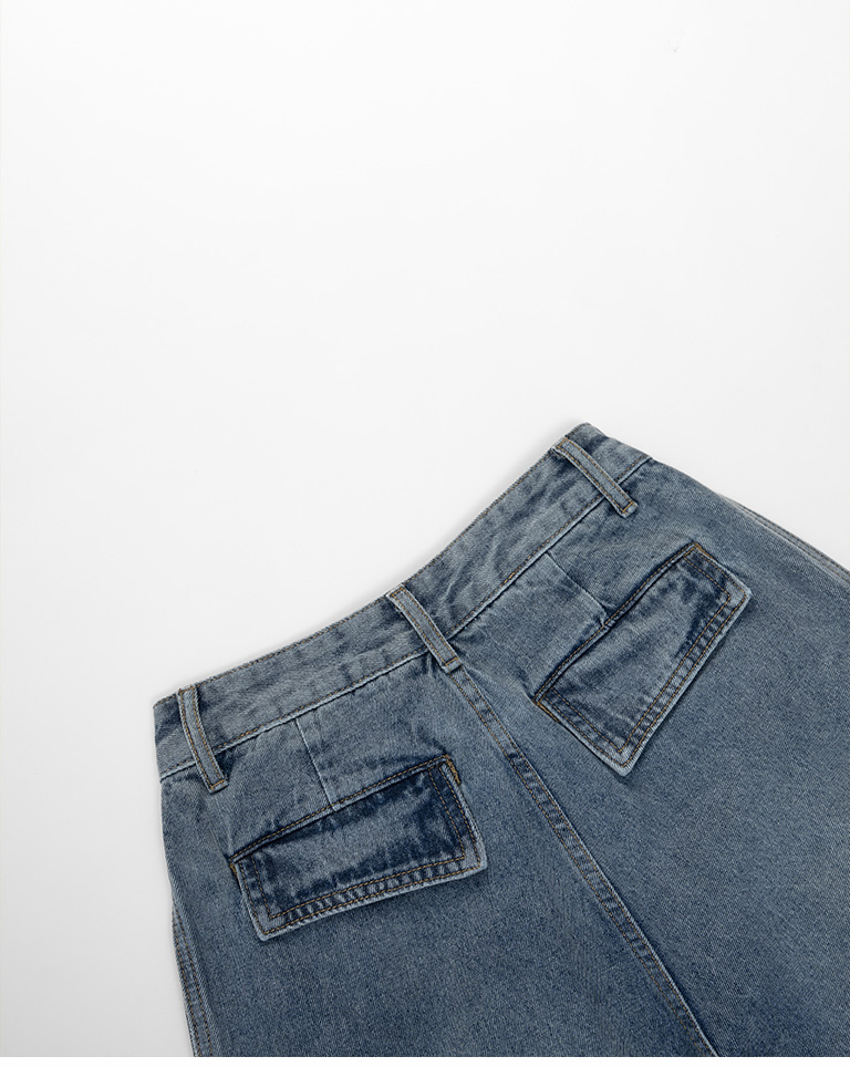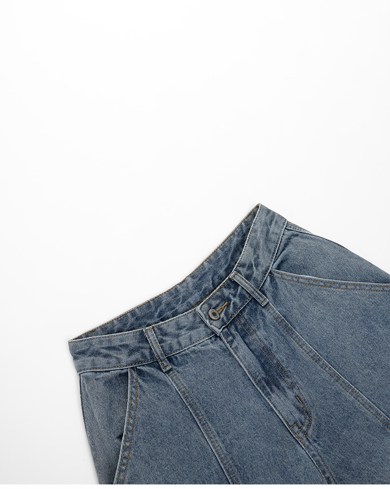 Peixuan Collaboration Washed Cut Pleated Scimitar Jeans S/M/L/XL