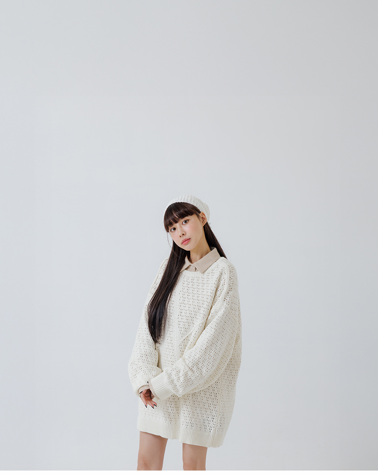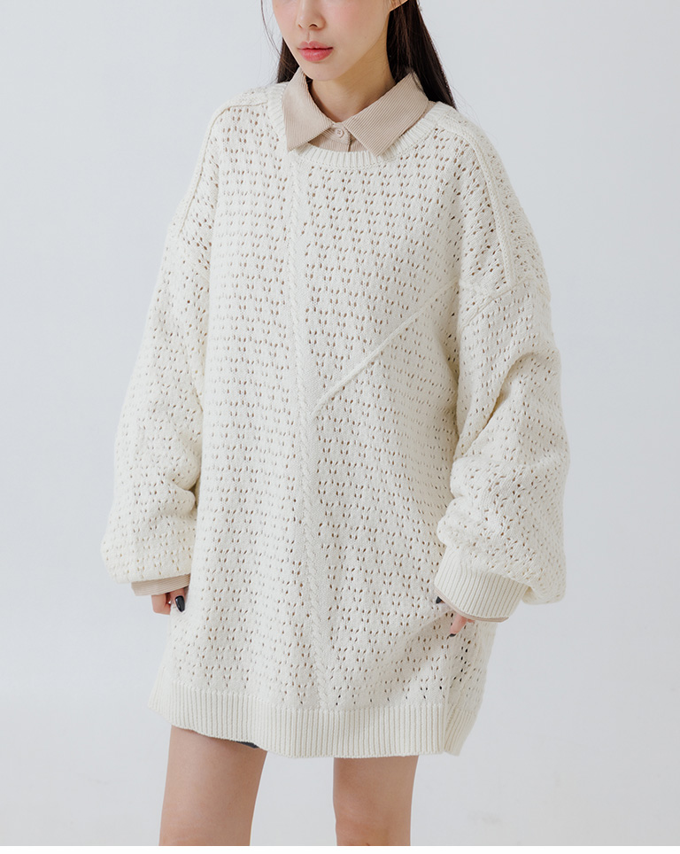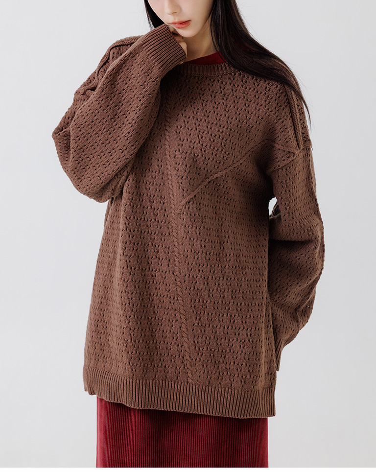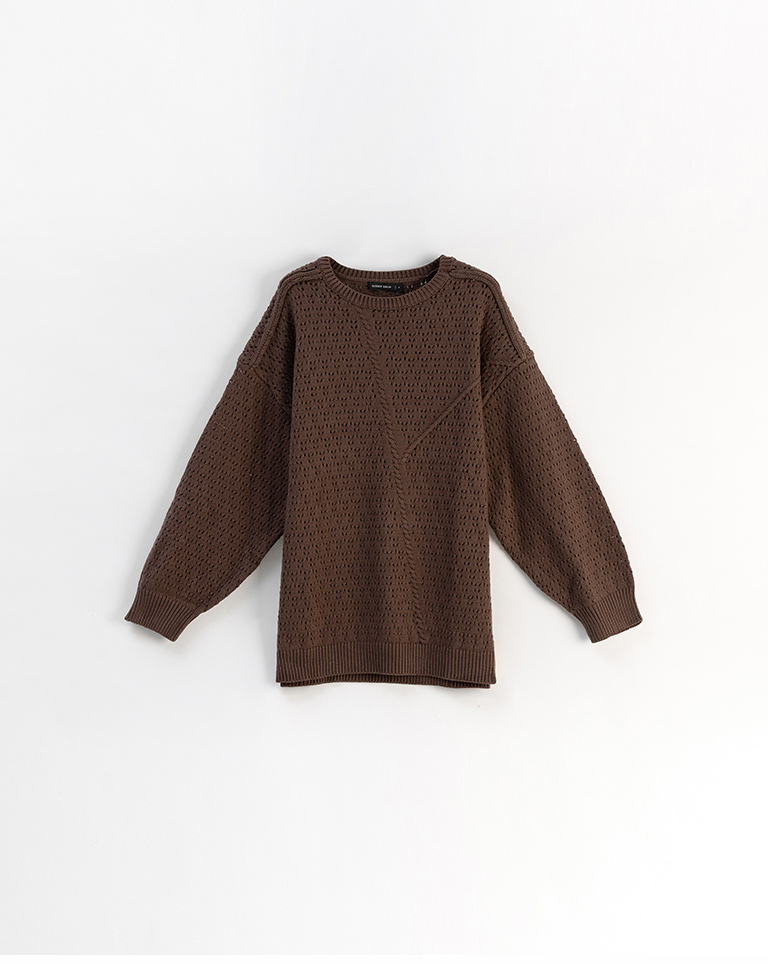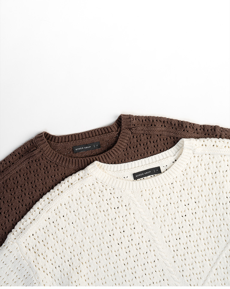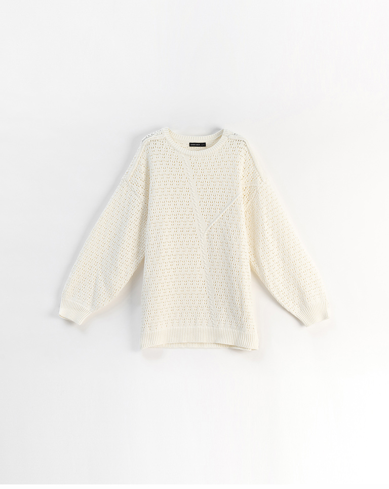 Textured, openwork, wide-cut knit sweater, available in two colors.