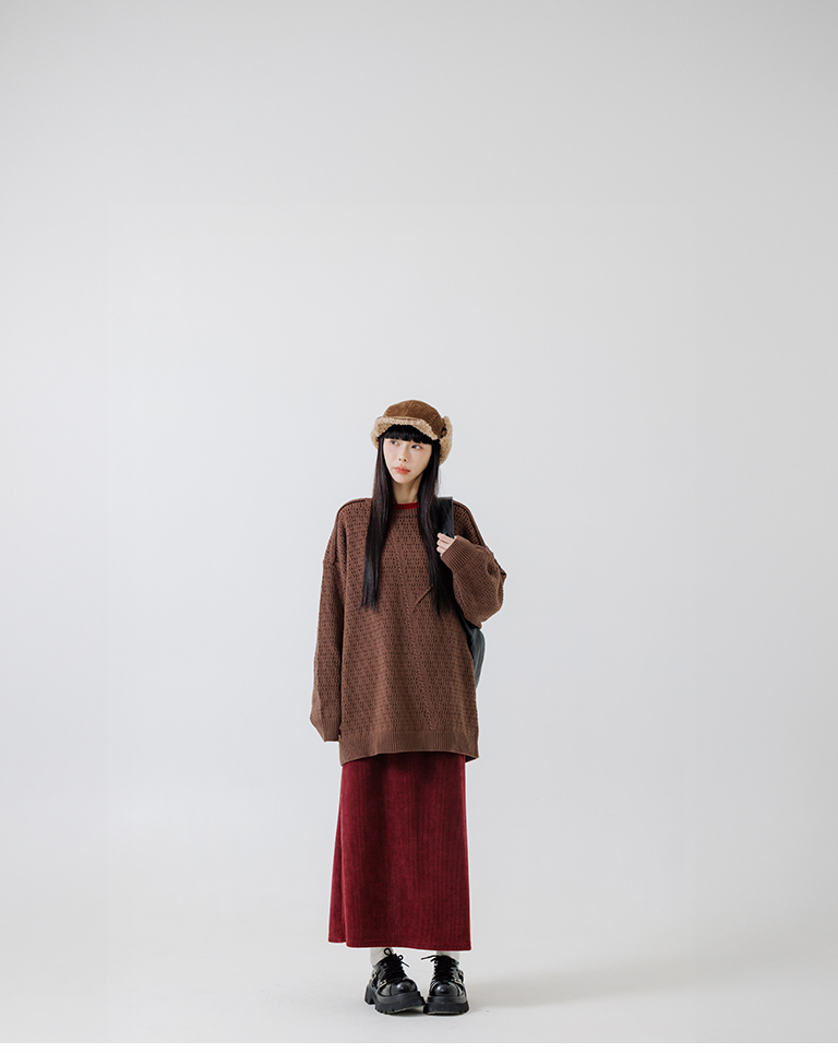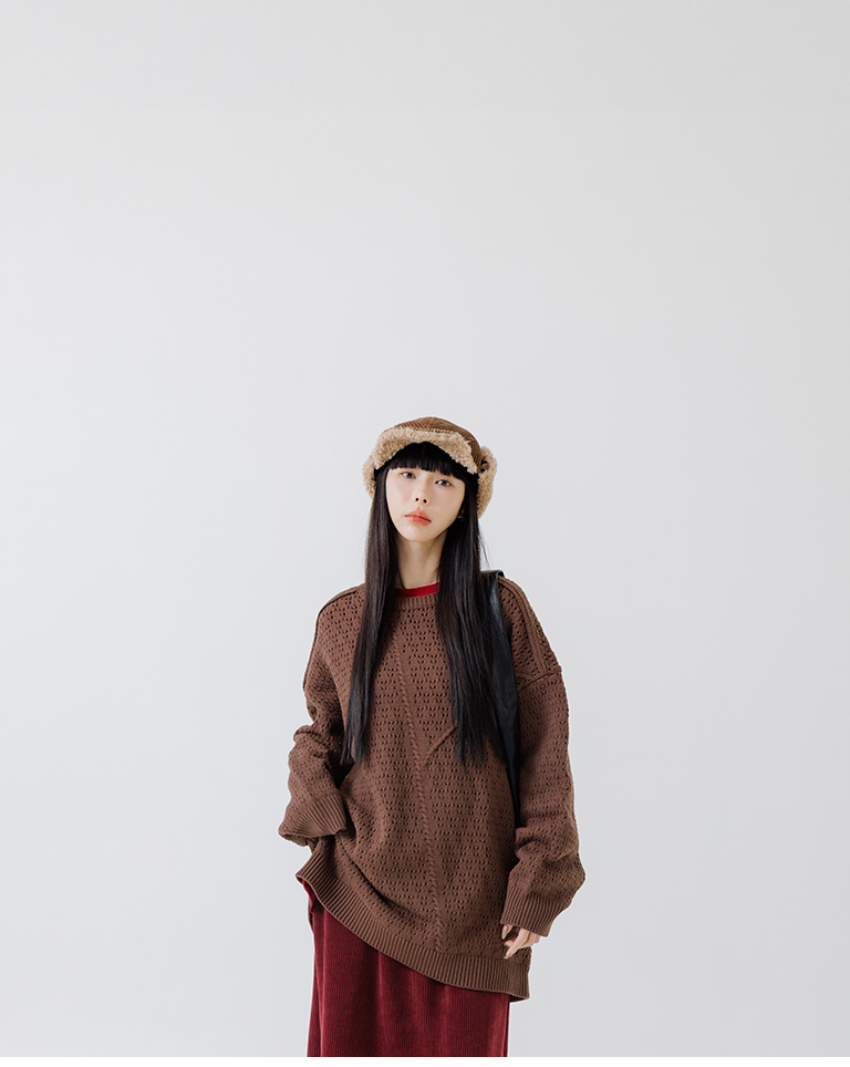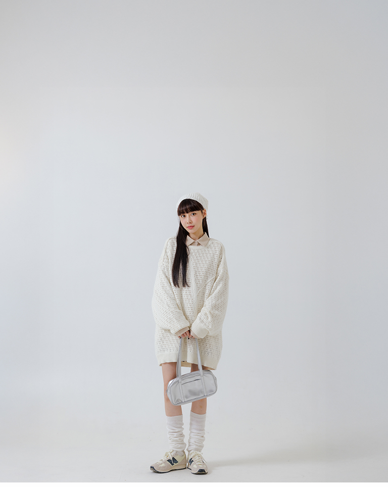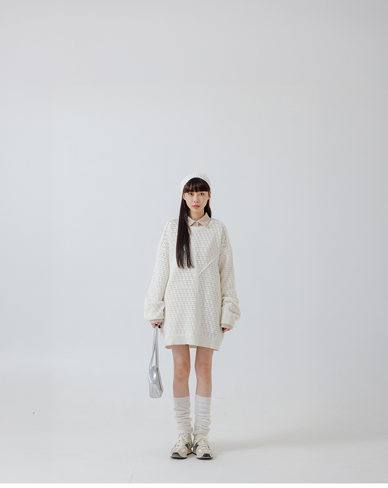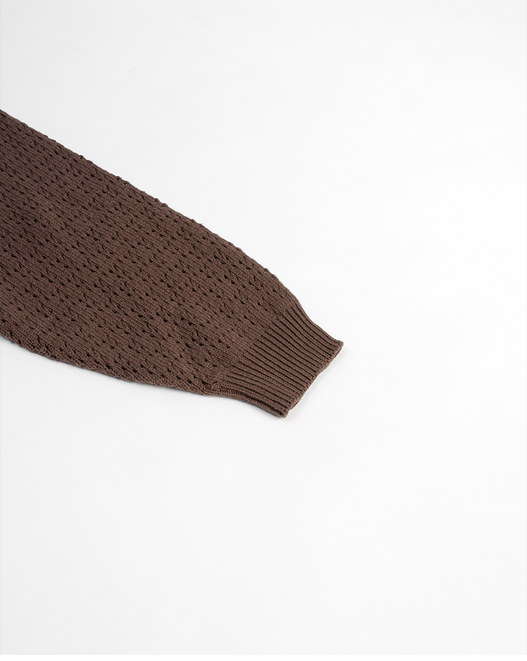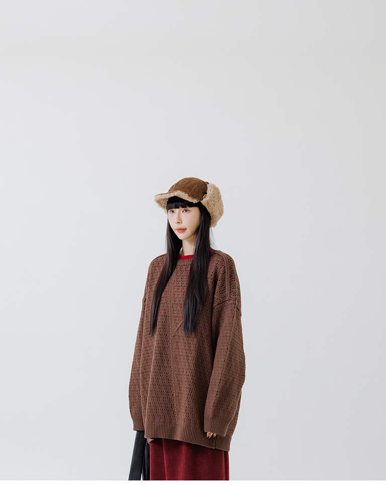 Textured, openwork, wide-cut knit sweater, available in two colors.