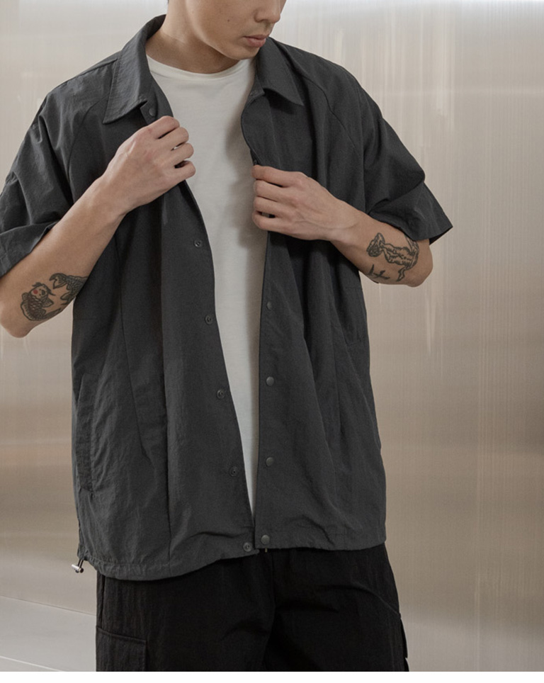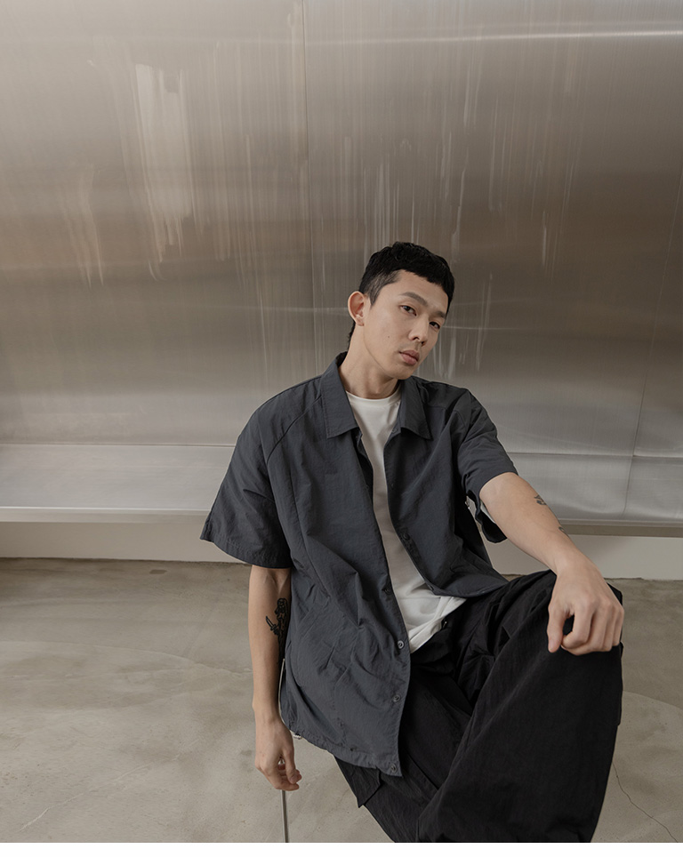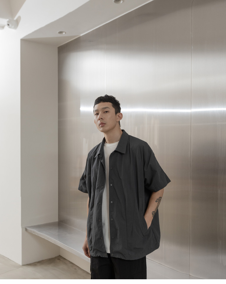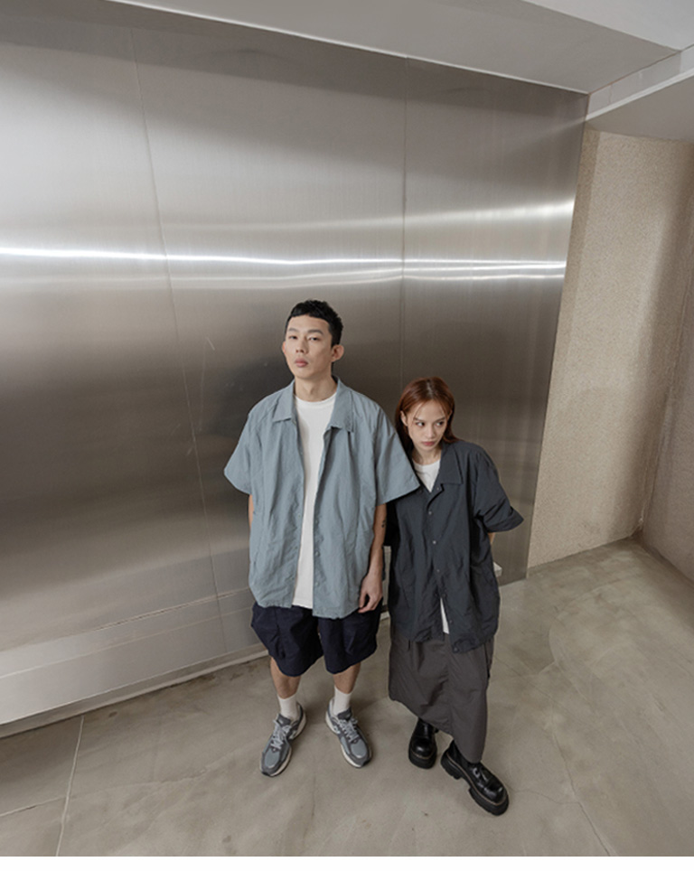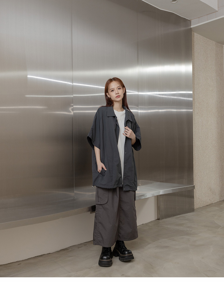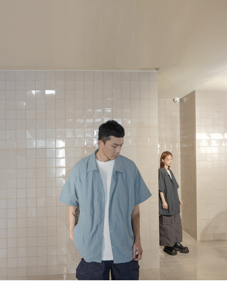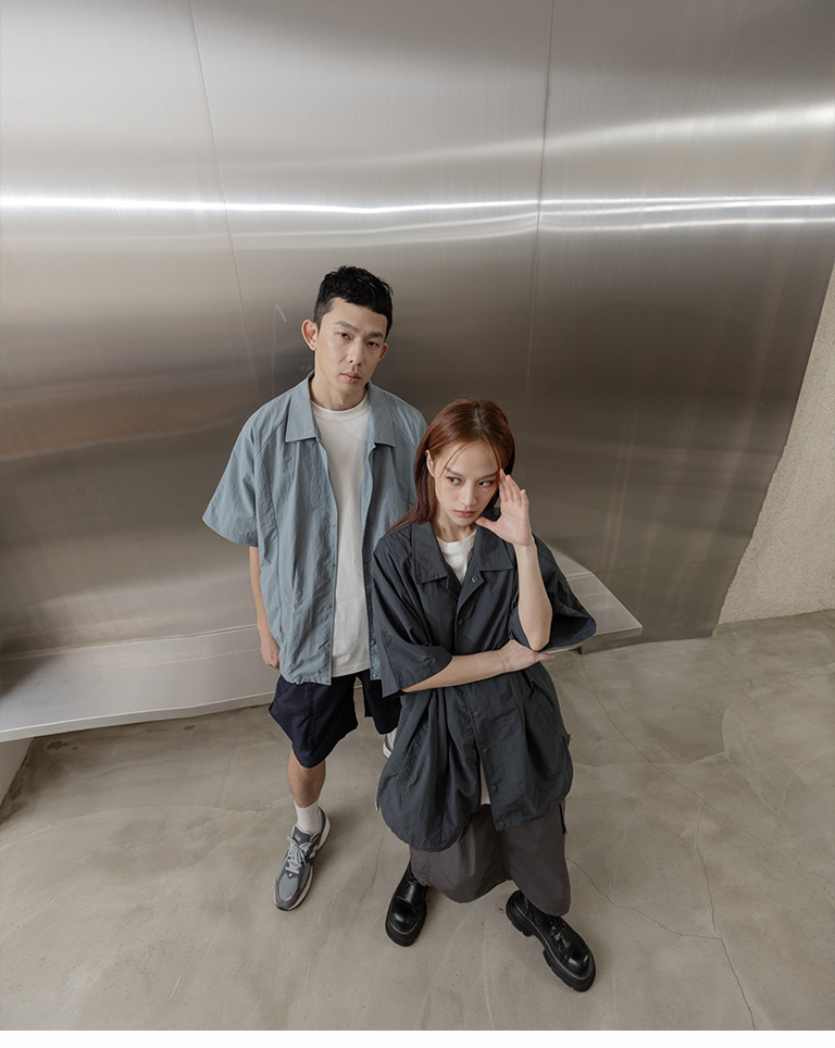 Wide shirt with pressed cut design. Available in two colors M-L