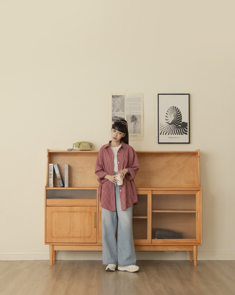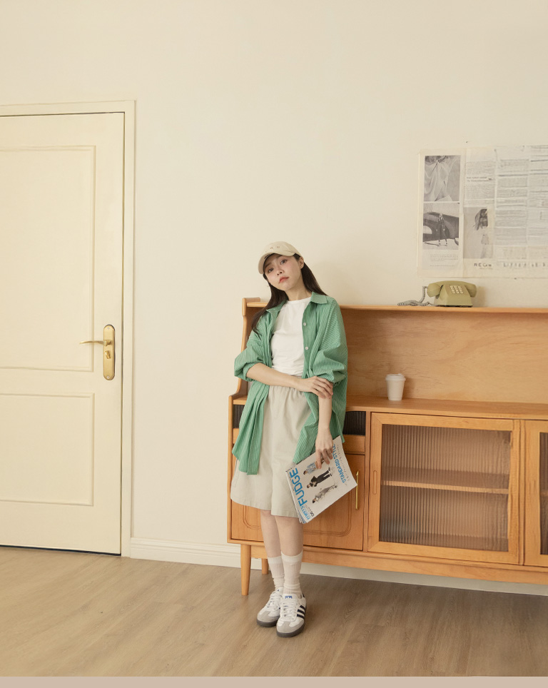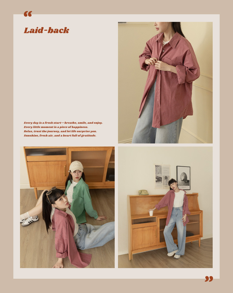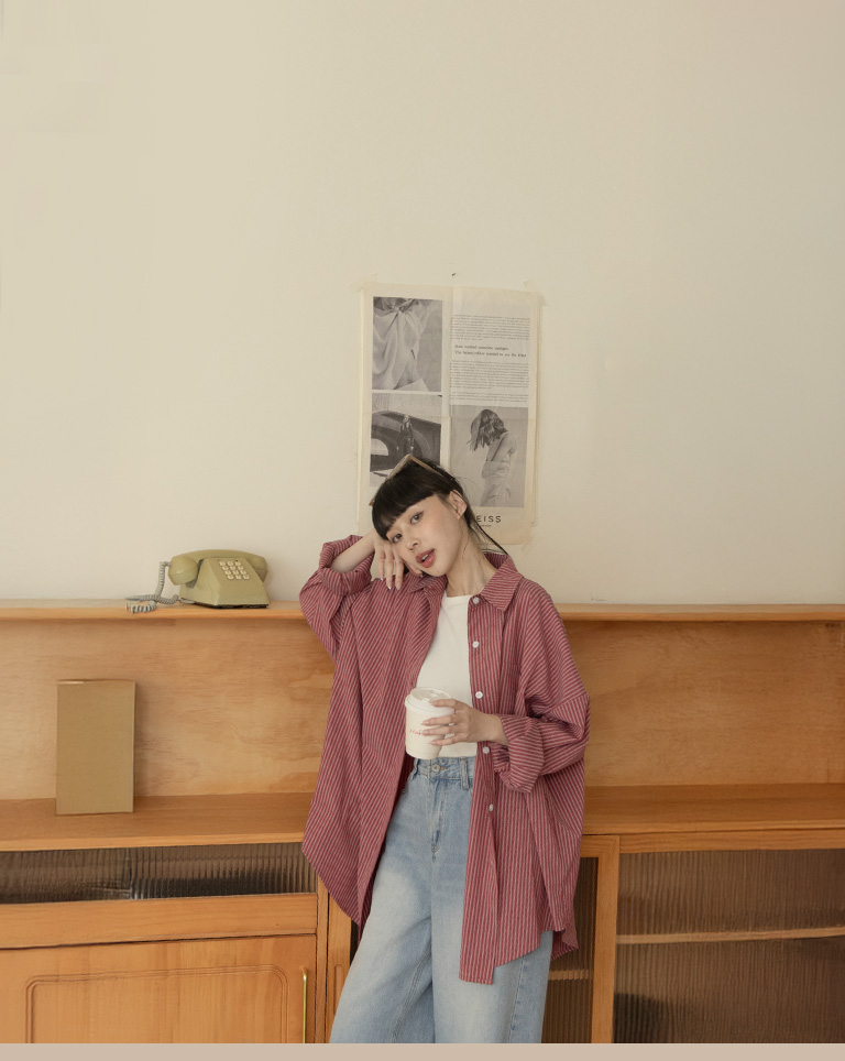 Striped wide shirt with front pocket design, sold in two colors