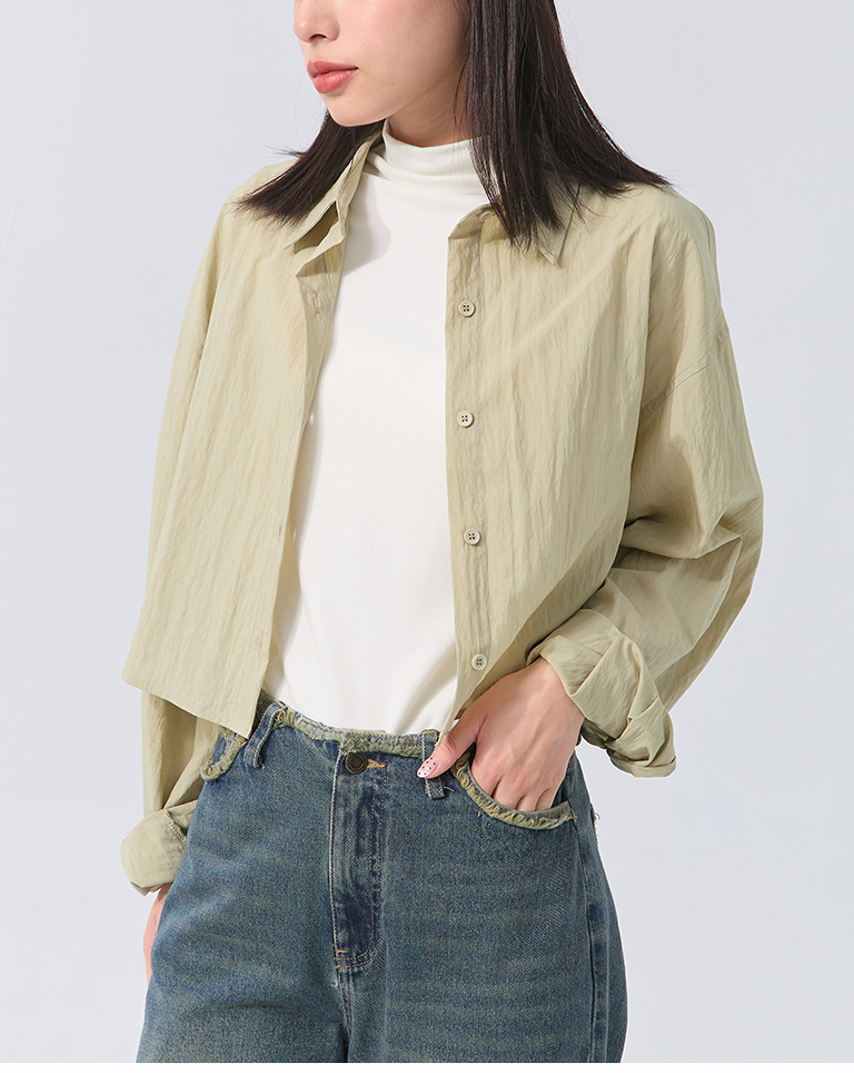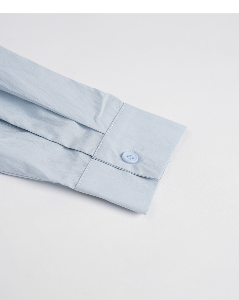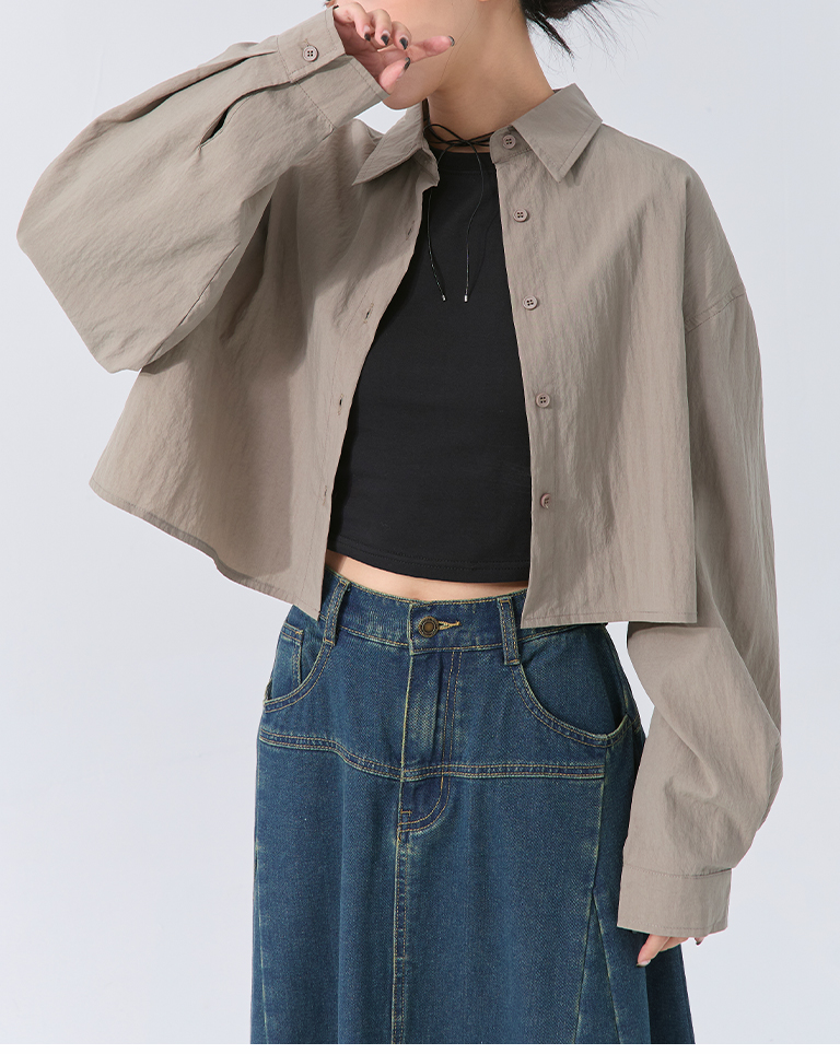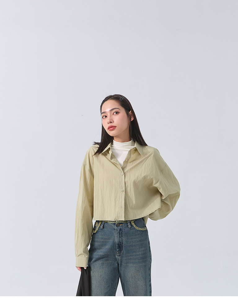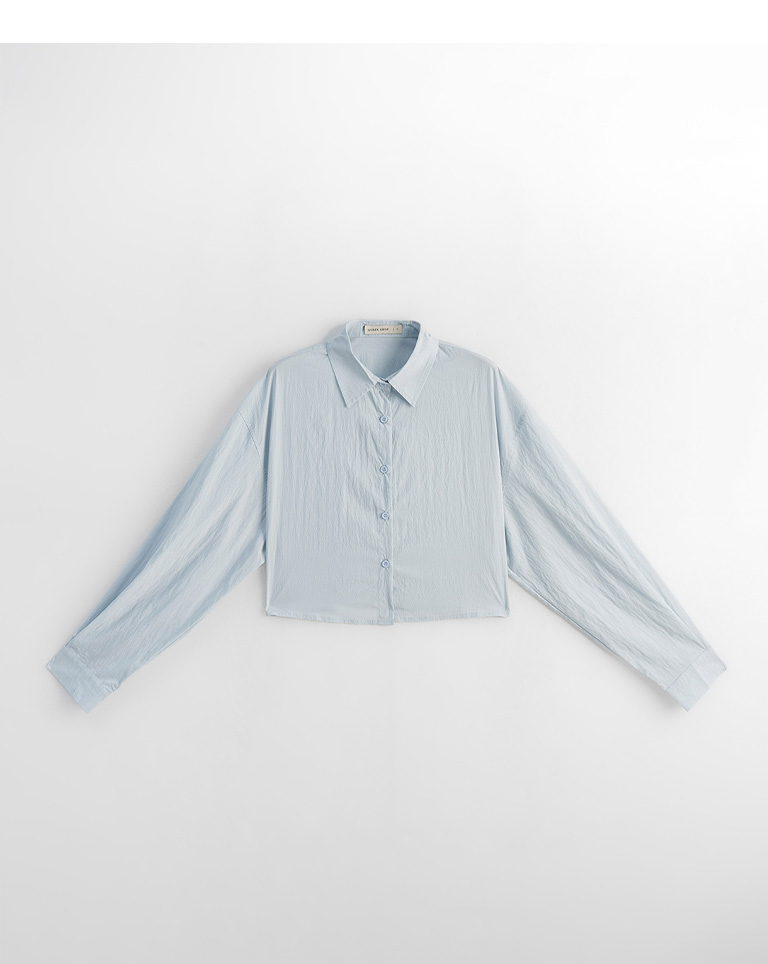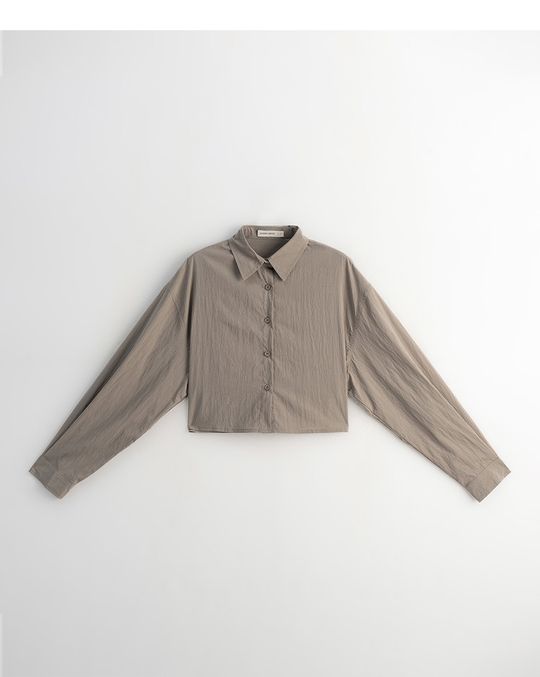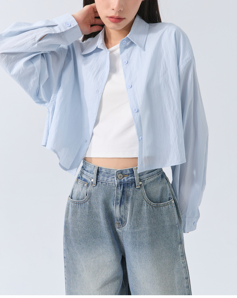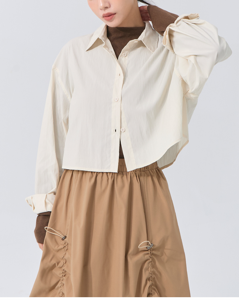Plain back pleated long-sleeved cropped shirt (sold in four colors)