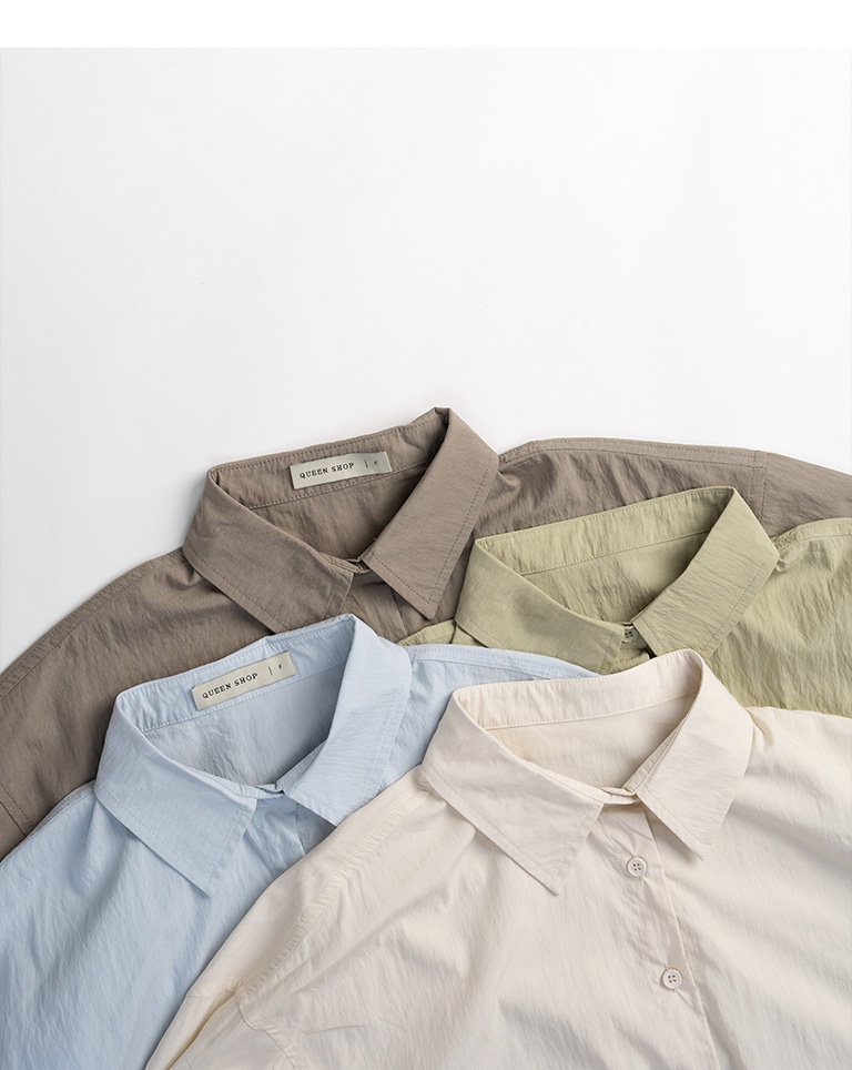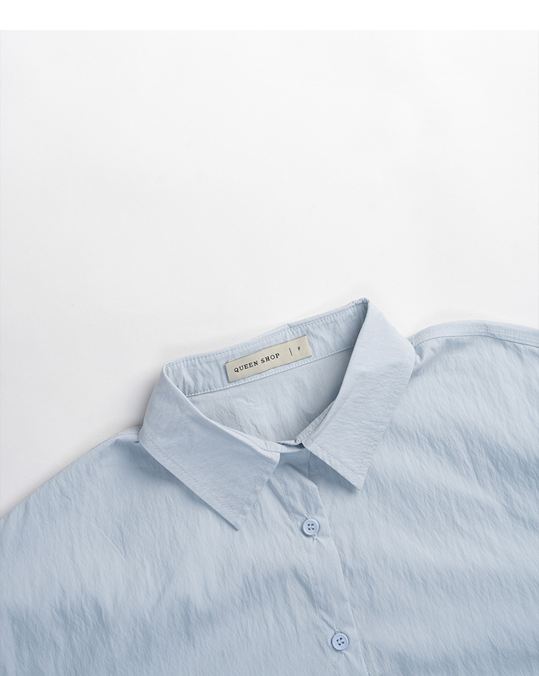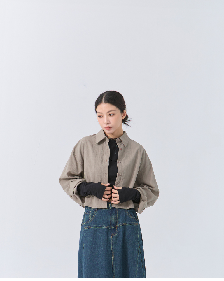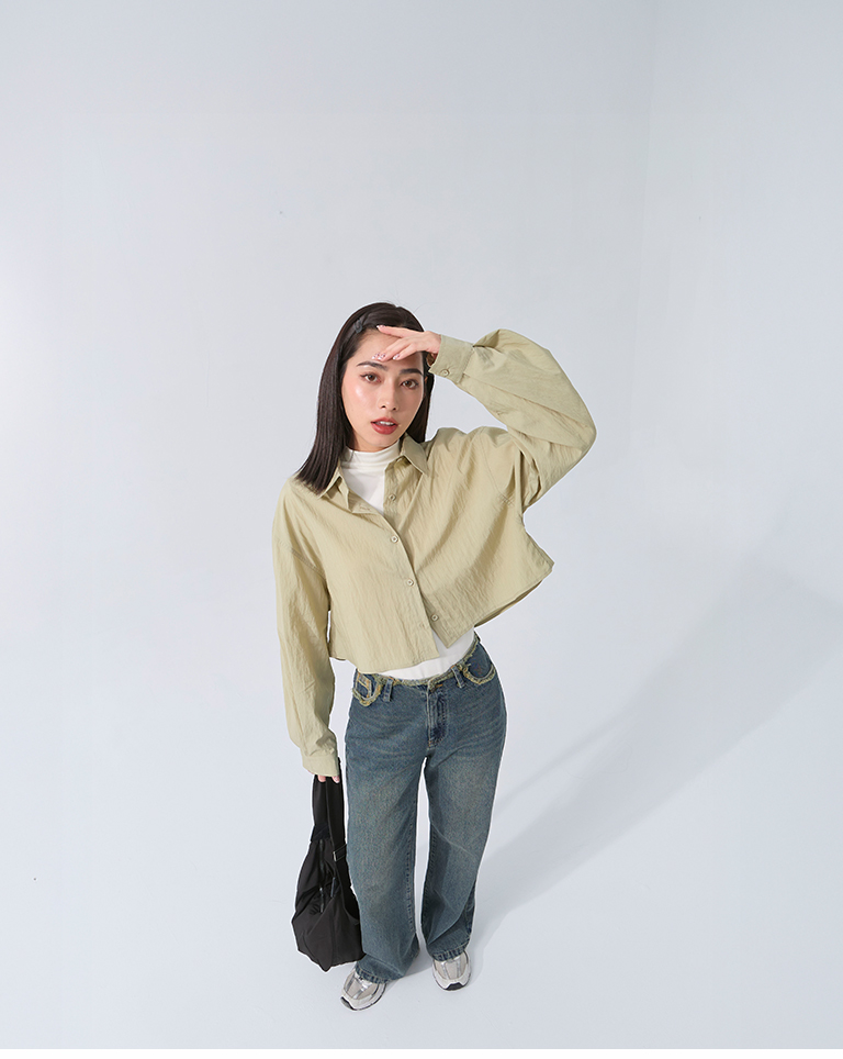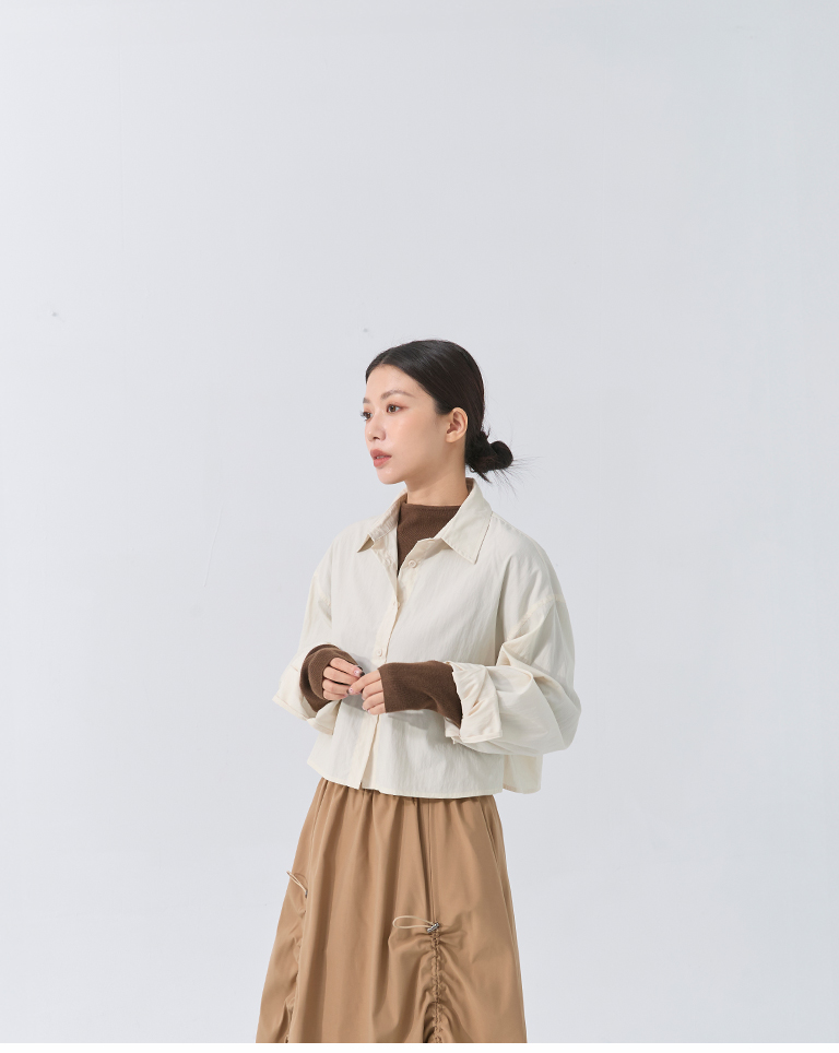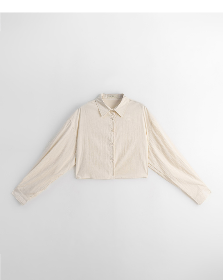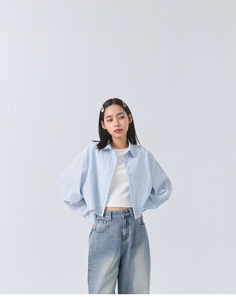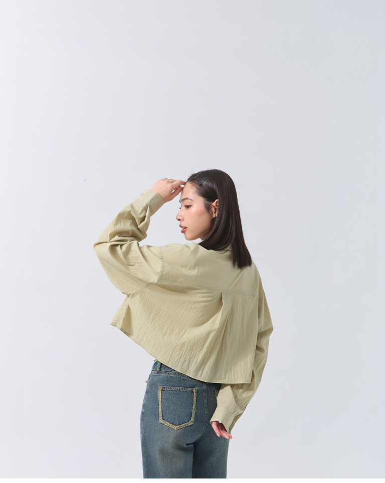Plain back pleated long-sleeved cropped shirt (sold in four colors)