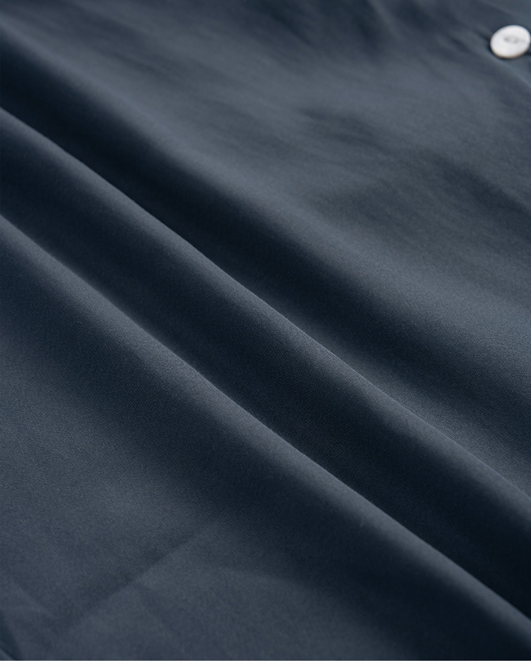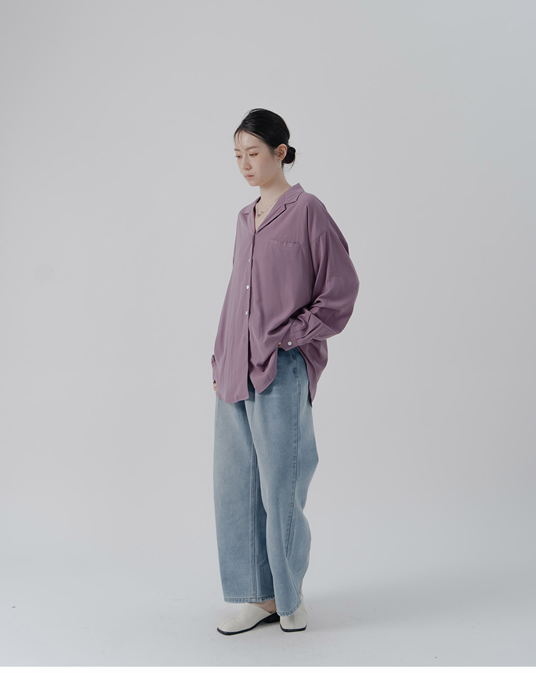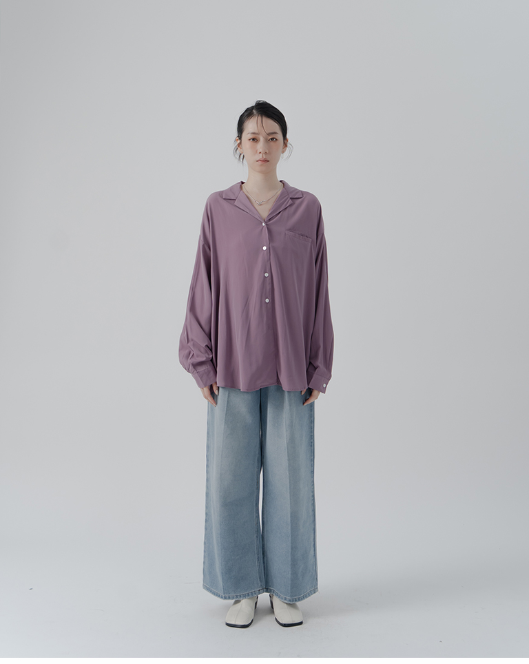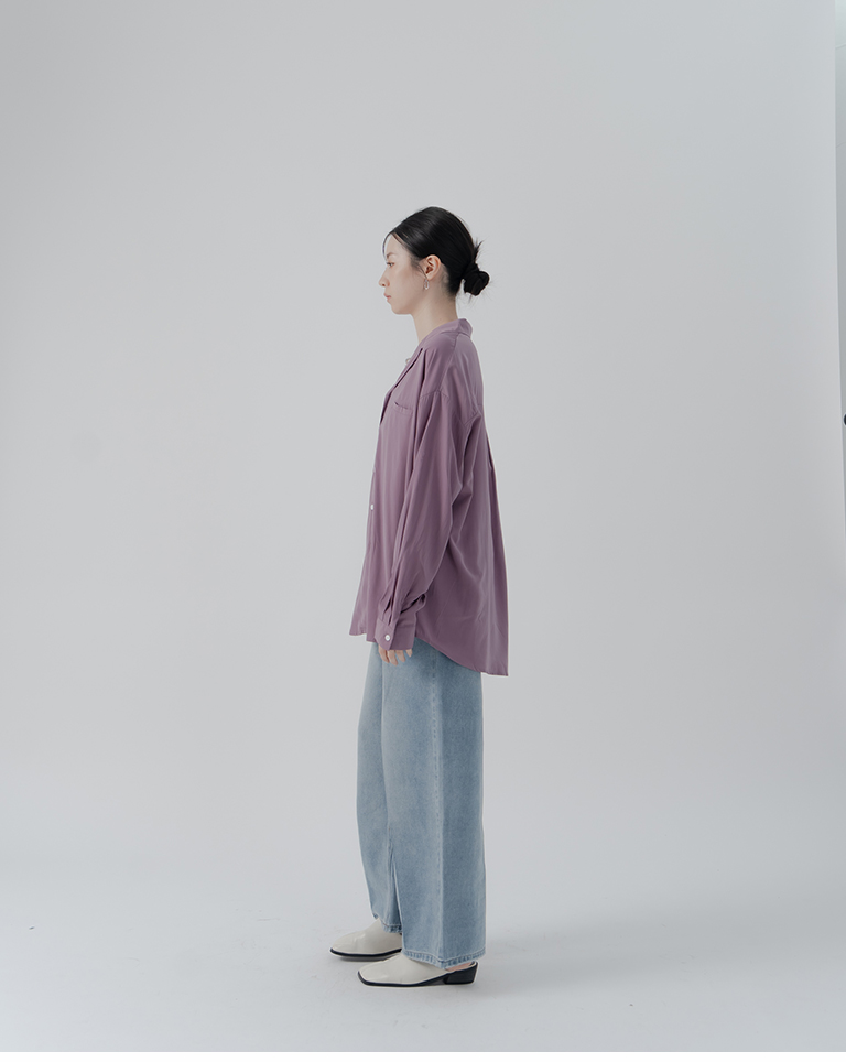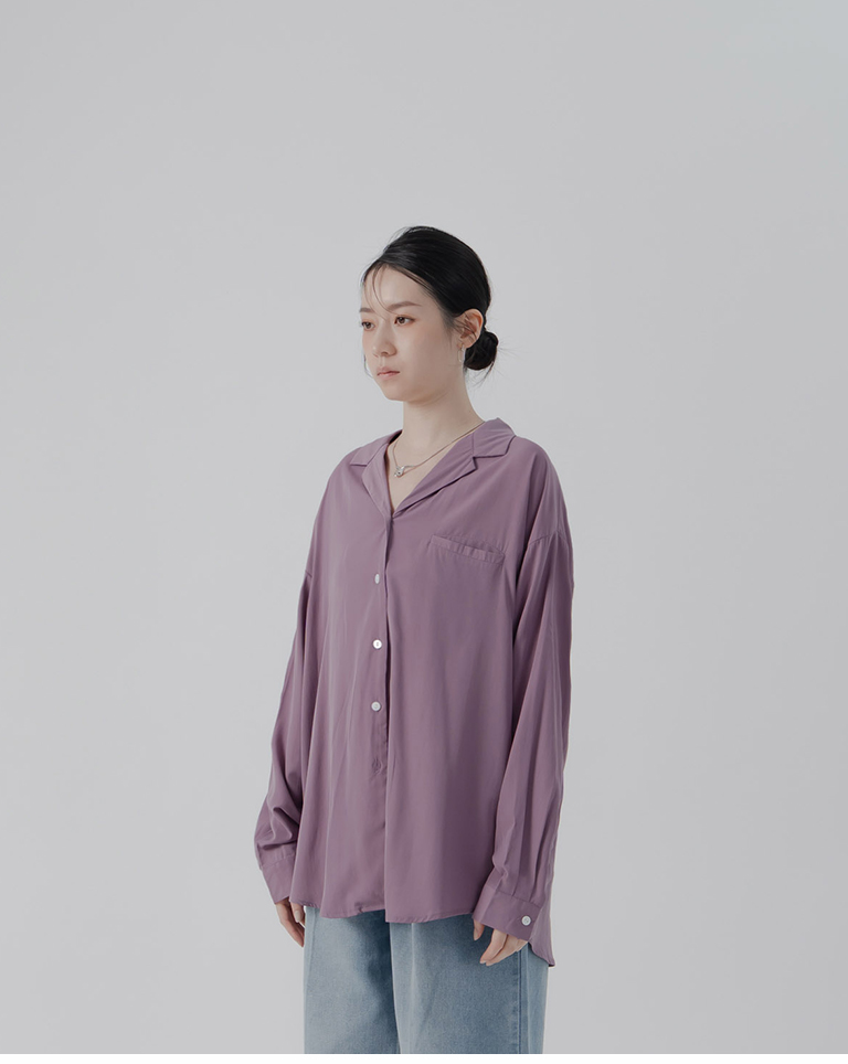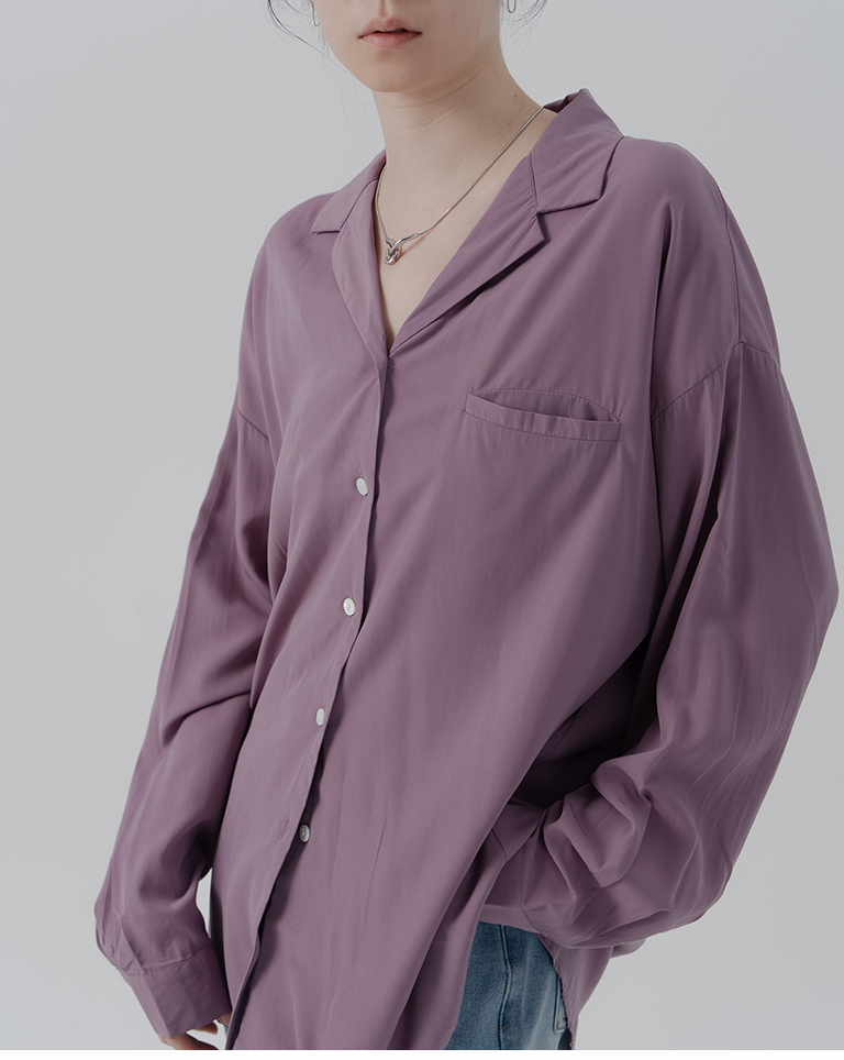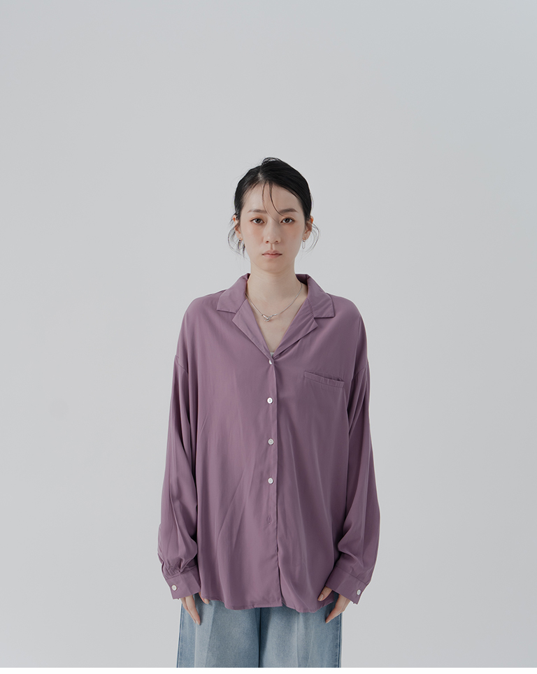 Simple Single Pocket Cuban Collar Shirt - Purple