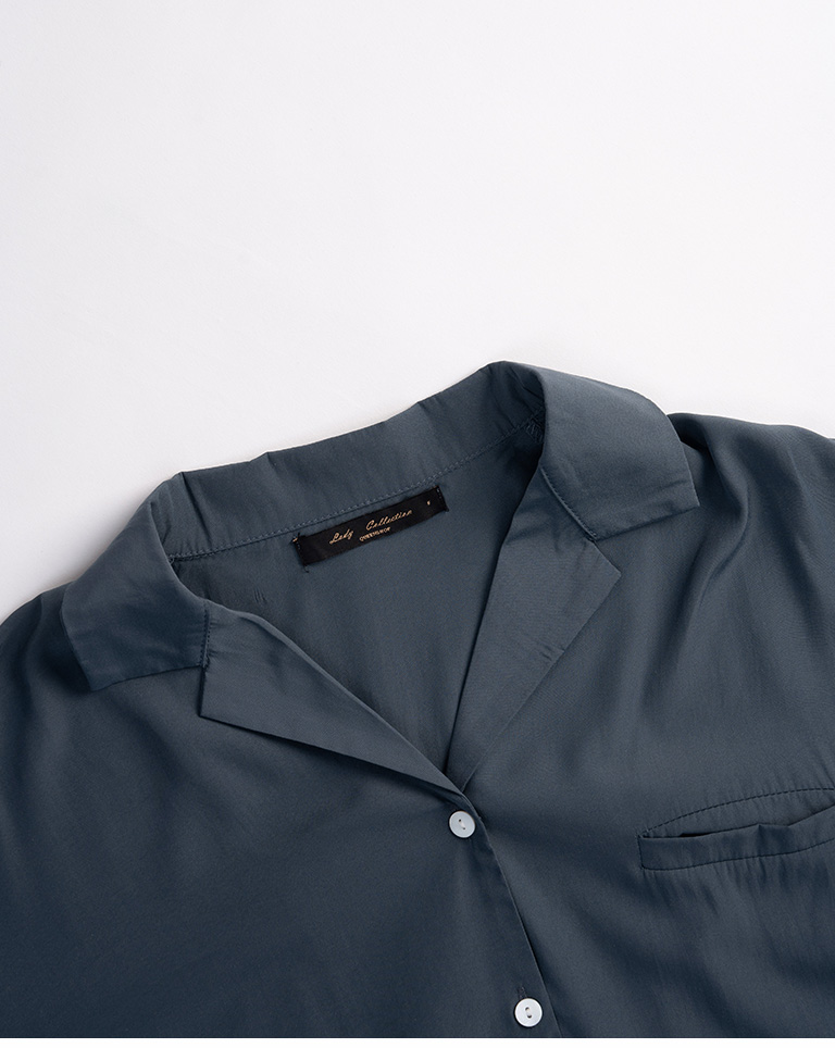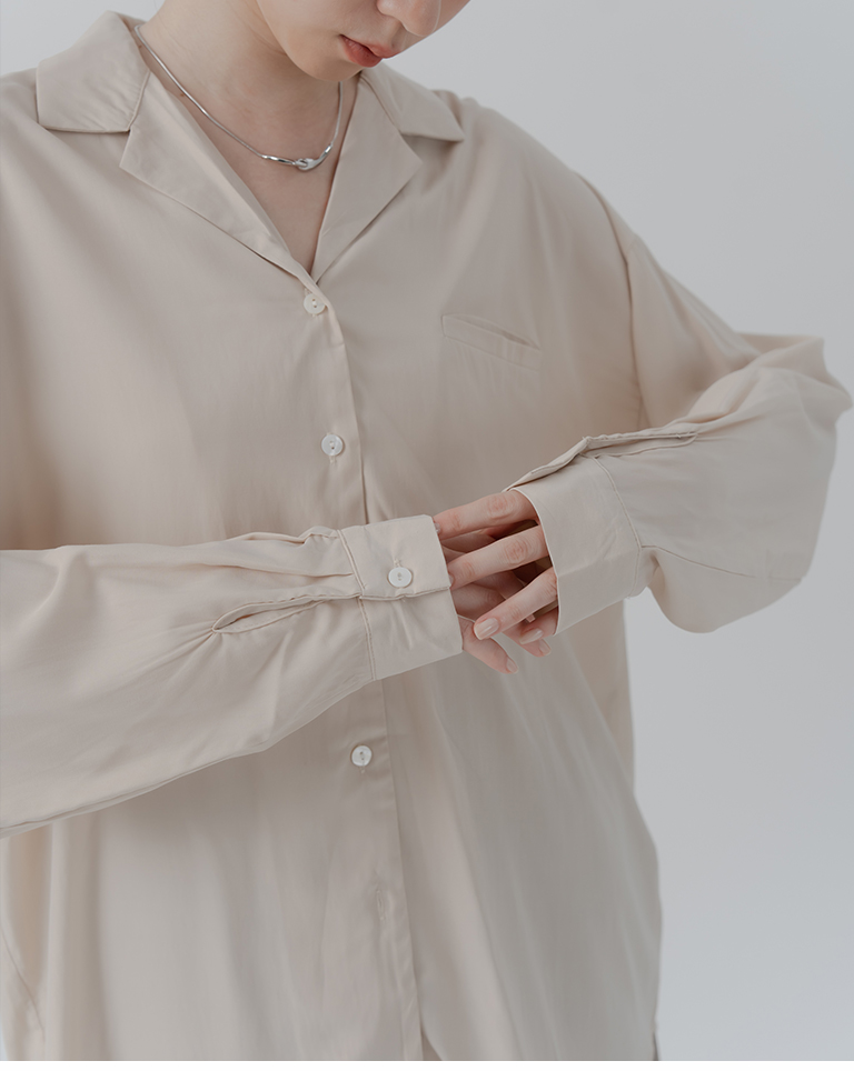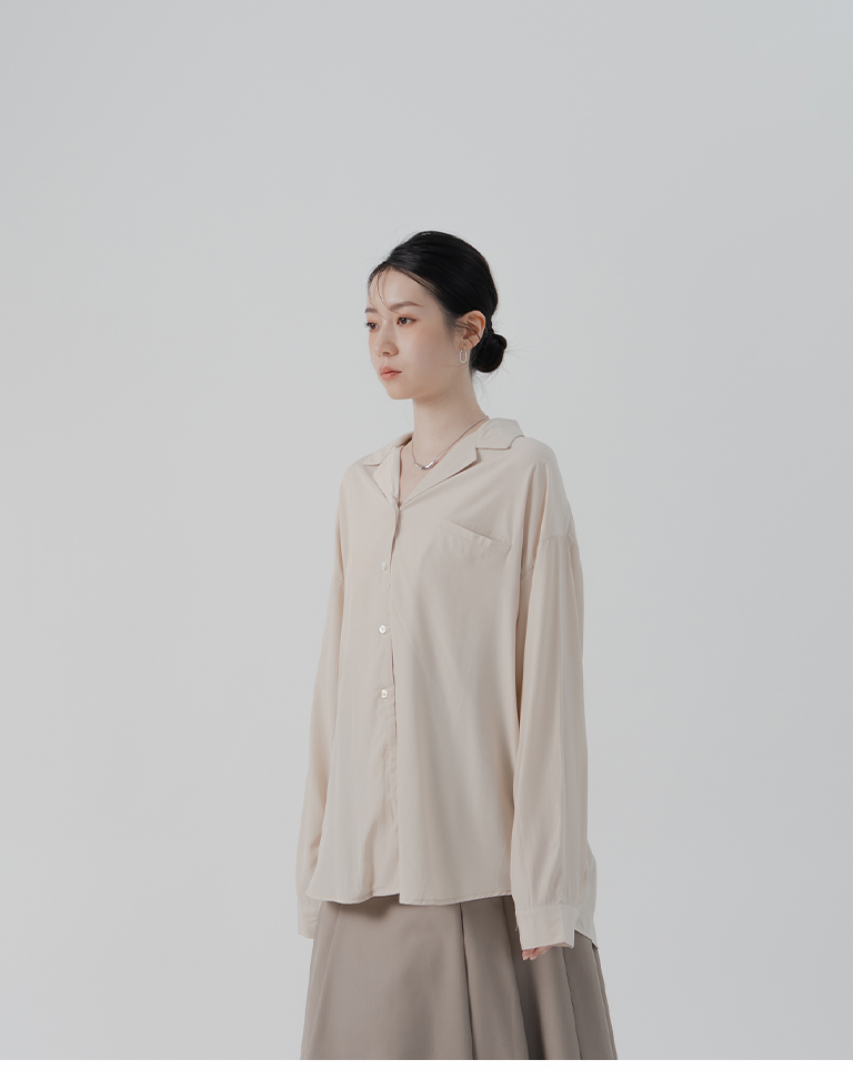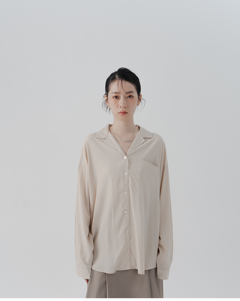 Simple Single Pocket Cuban Collar Shirt - Apricot