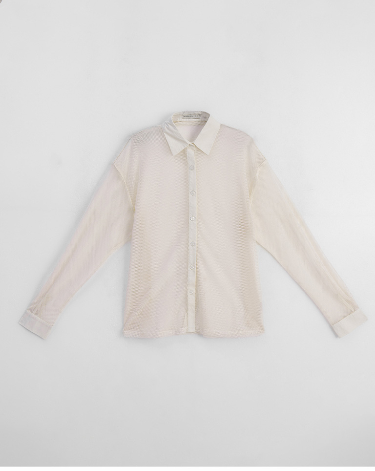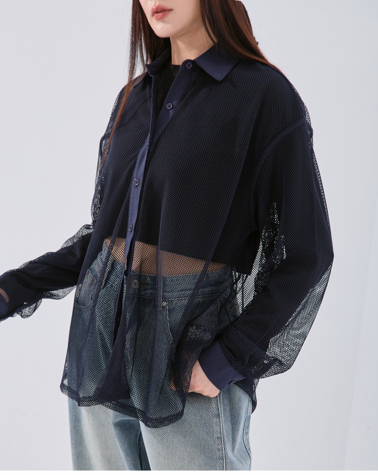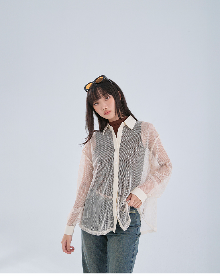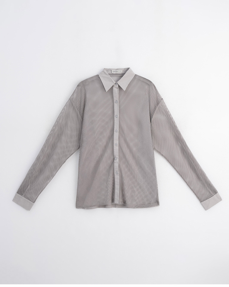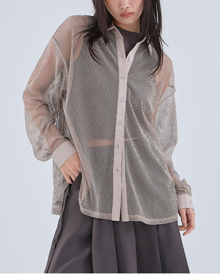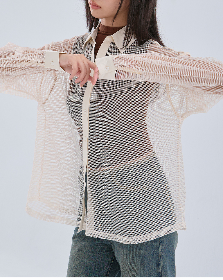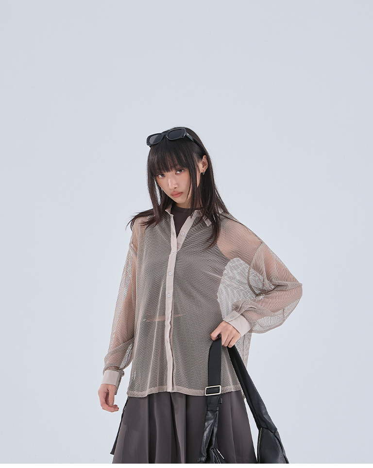 Hollow grid design long-sleeved shirt, three colors available