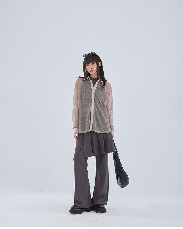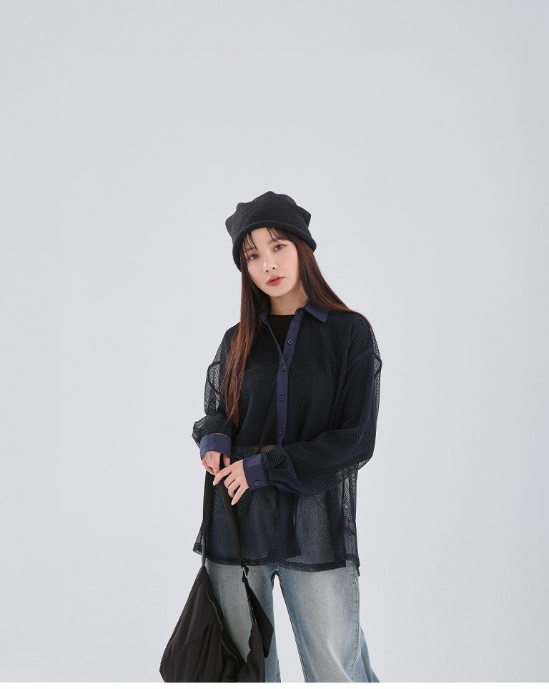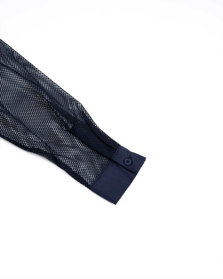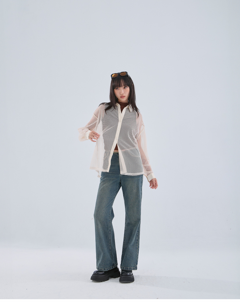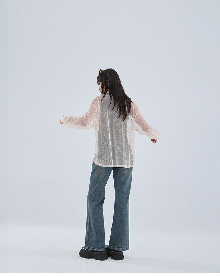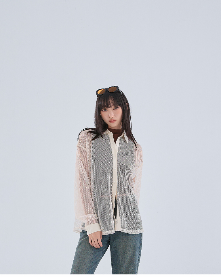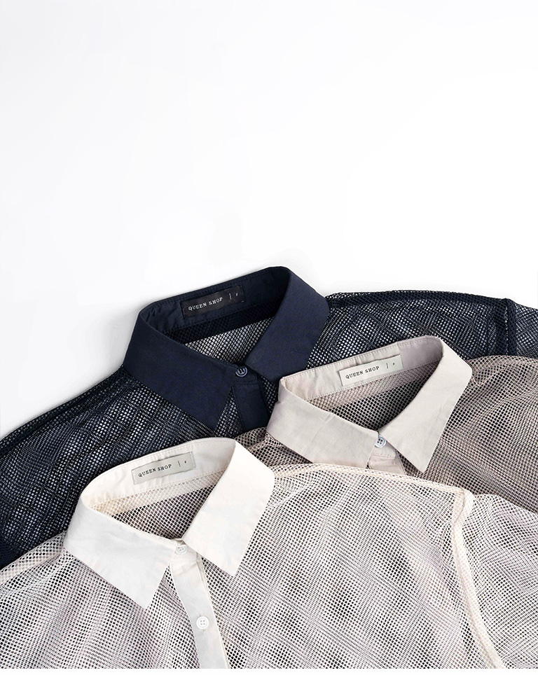 Hollow grid design long-sleeved shirt, three colors available