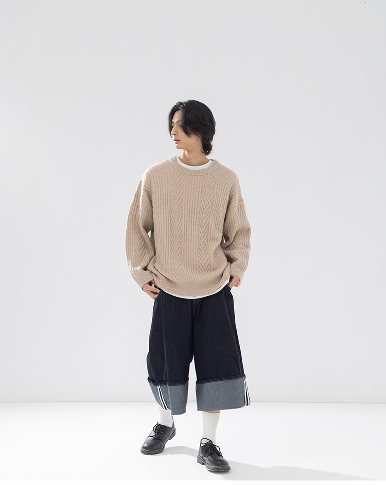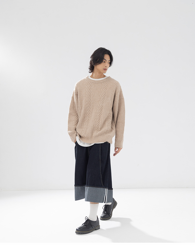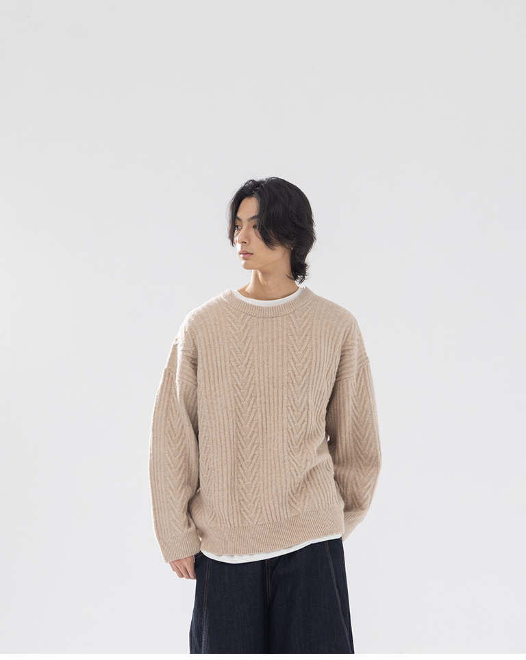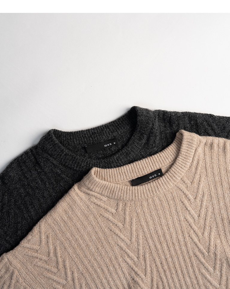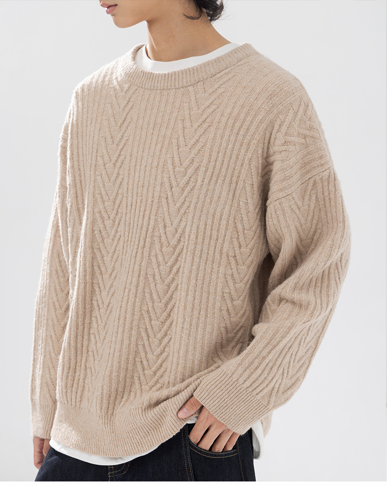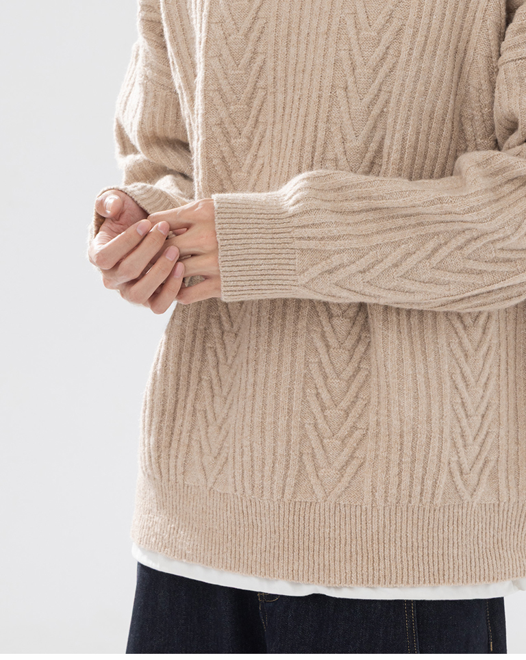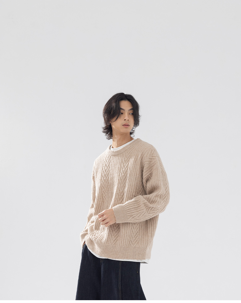 Men's 3D Textured Wide Knit Sweater - Khaki M/L