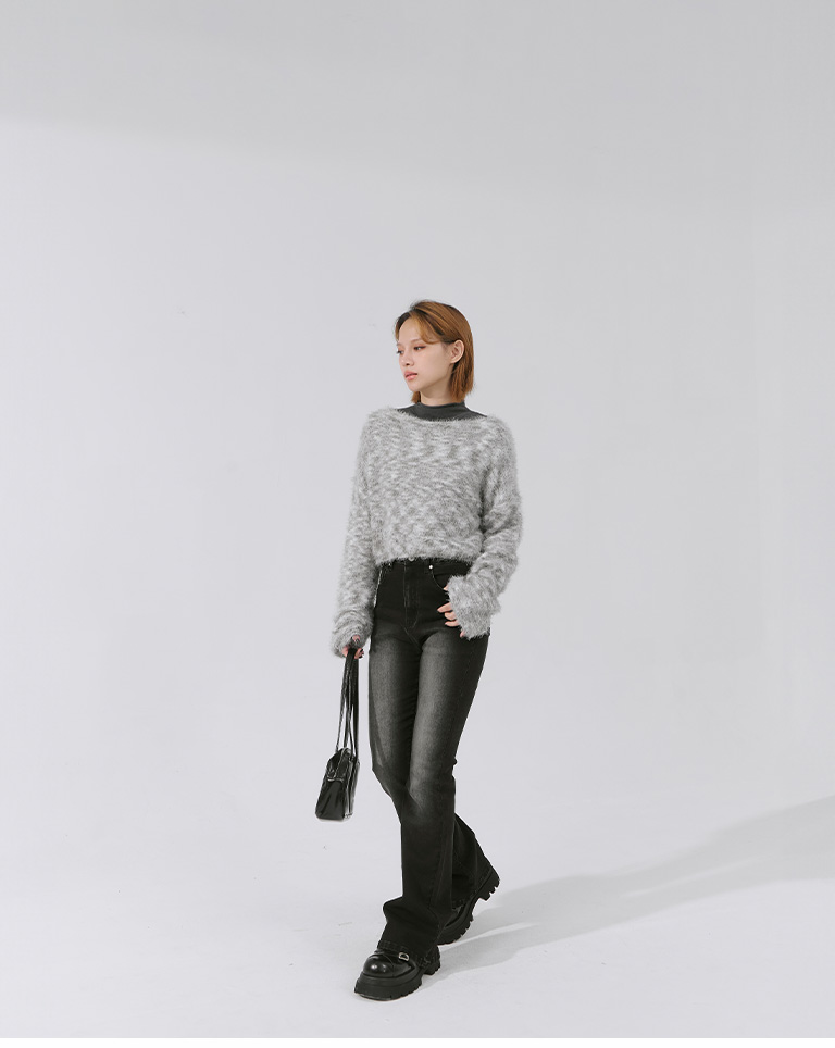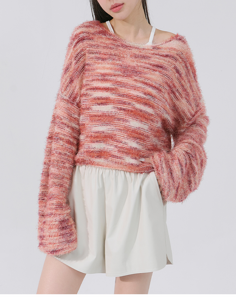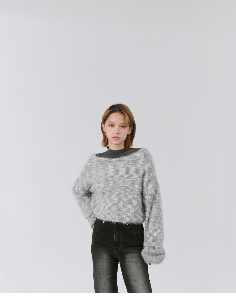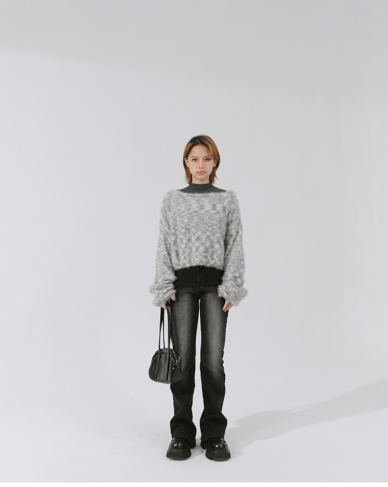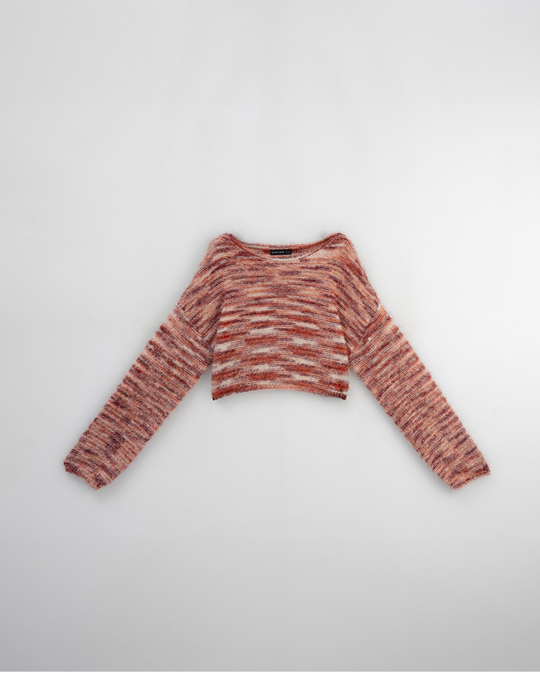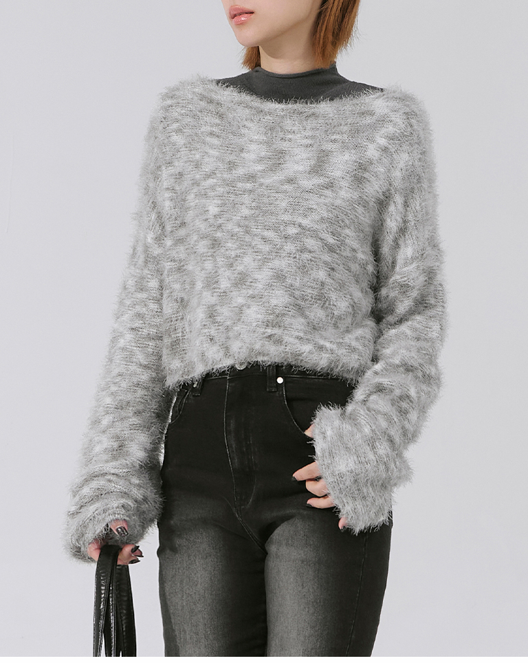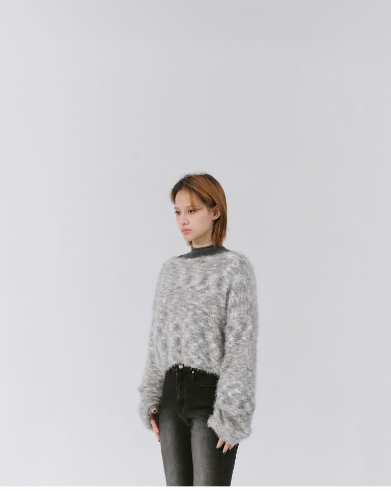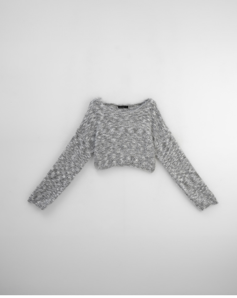 Wool-feel floral yarn blended short knitted sweater (two colors available)