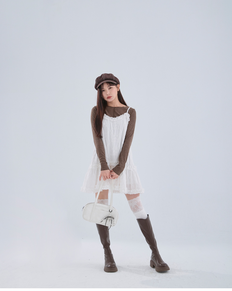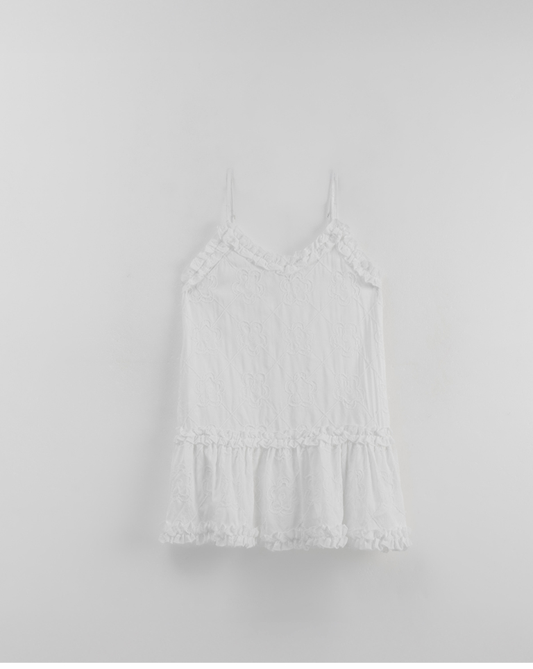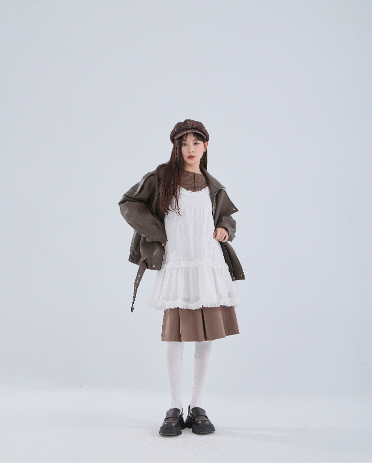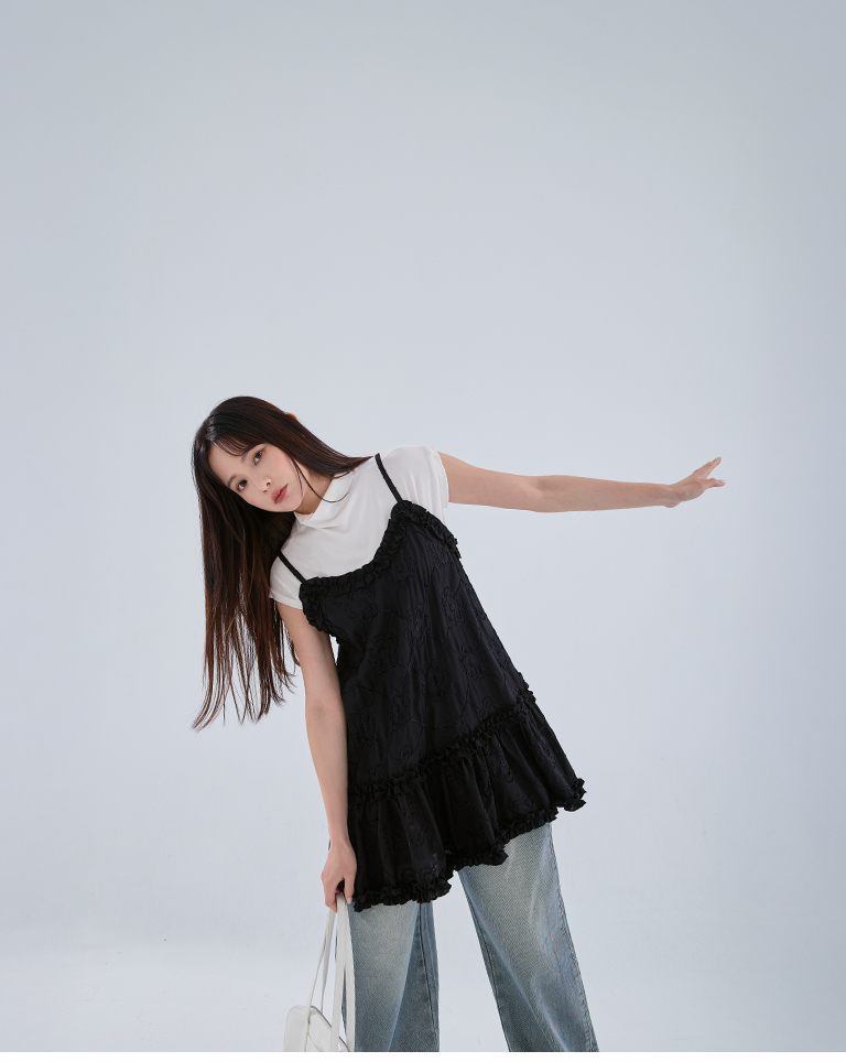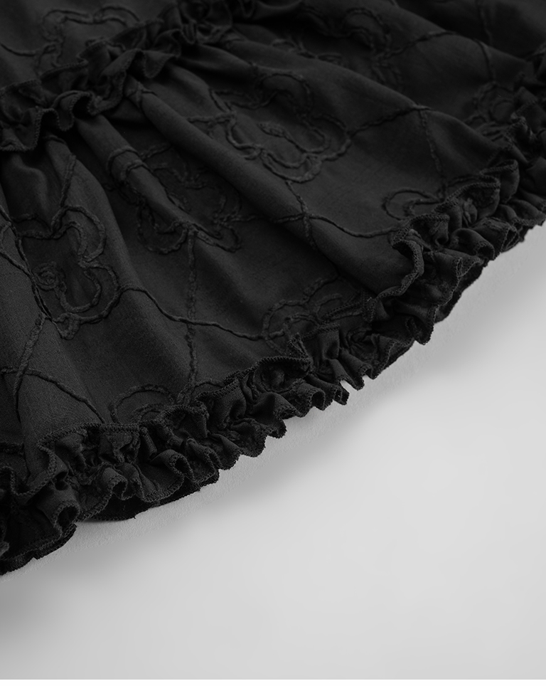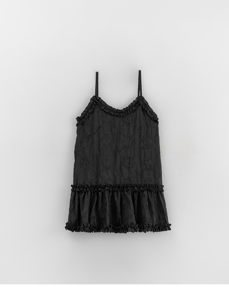 Three-dimensional jacquard lotus leaf spaghetti-shoulder short dress, two colors available