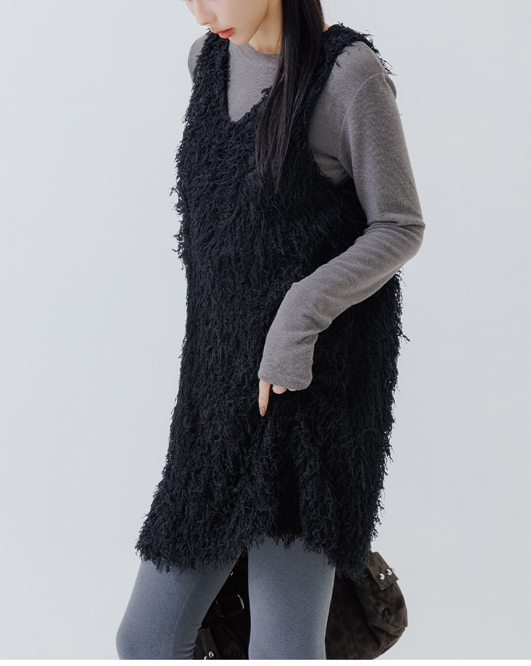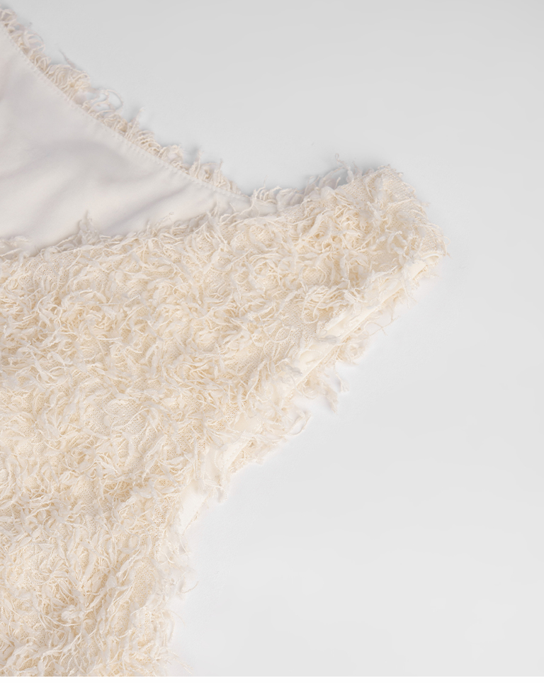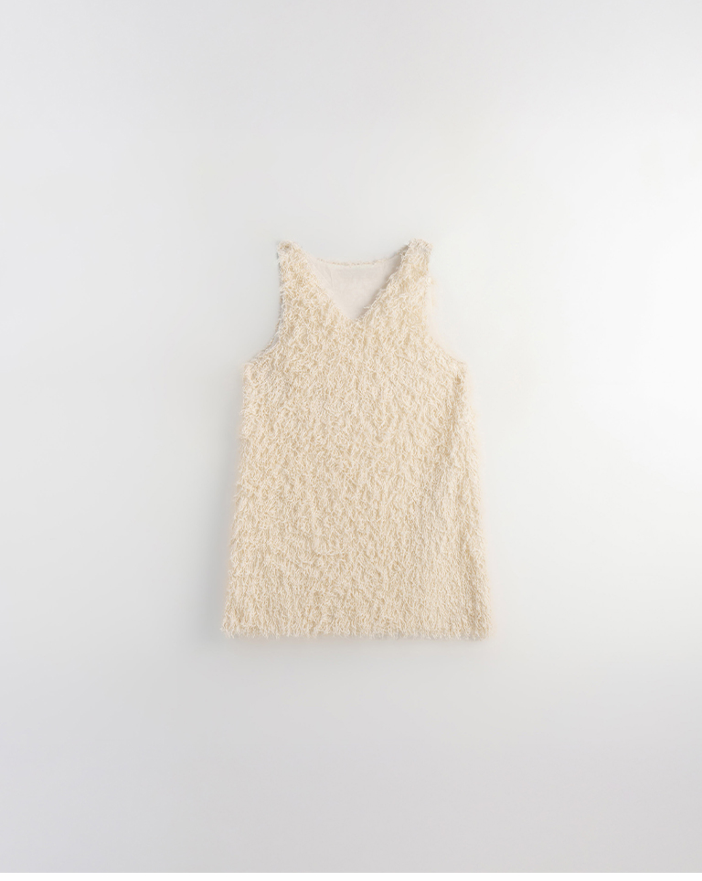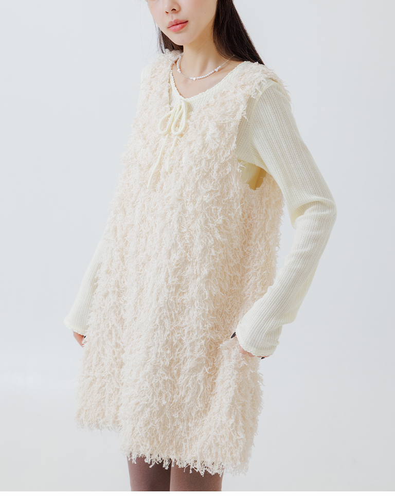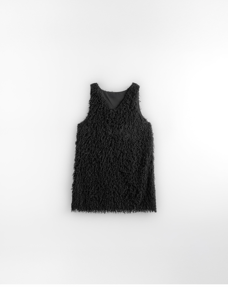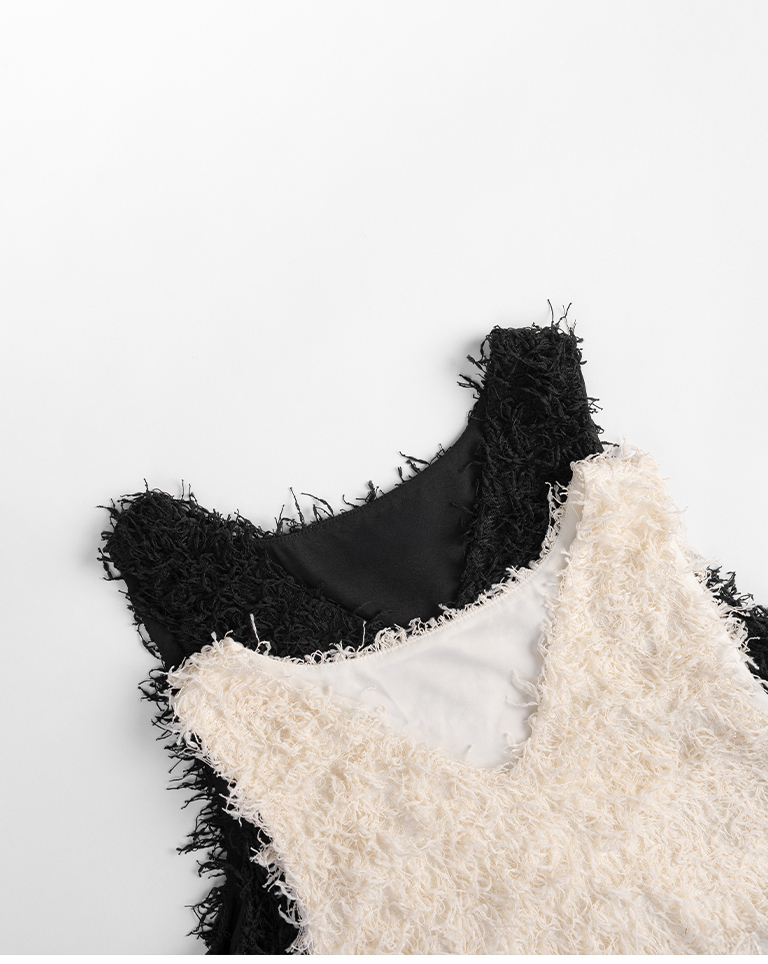Textured feather cutout vest dress, available in two colors.
