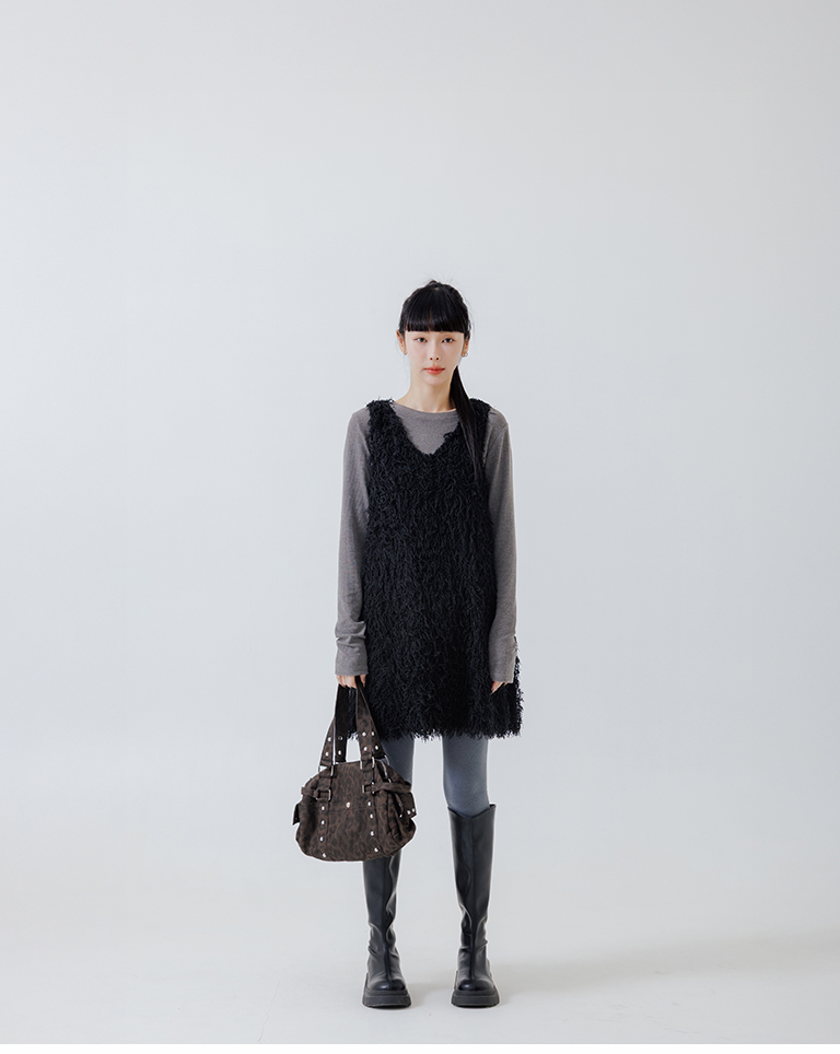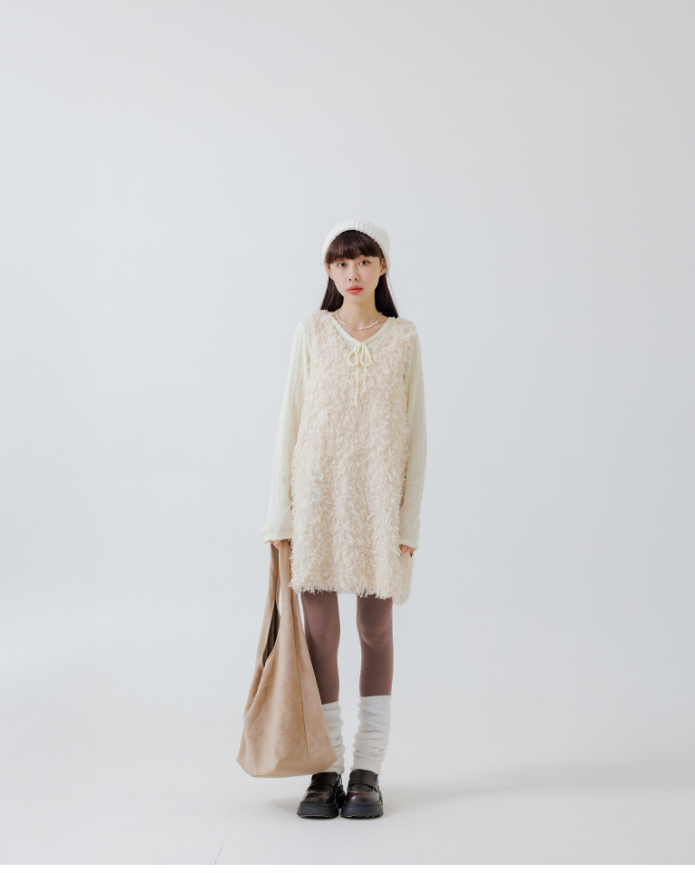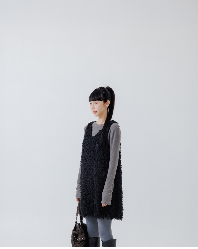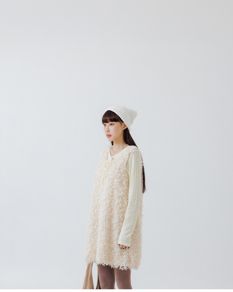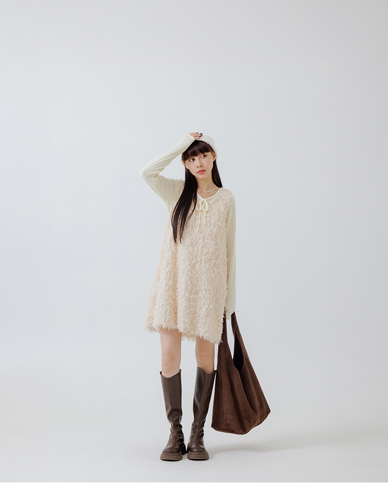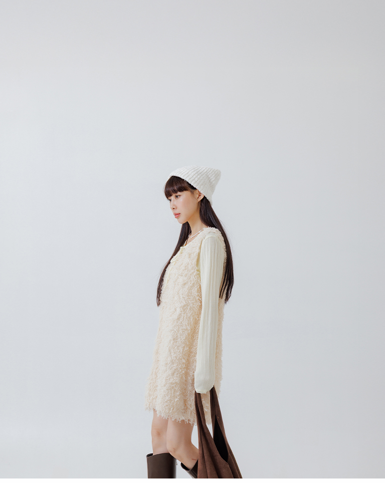 Textured feather cutout vest dress, available in two colors.