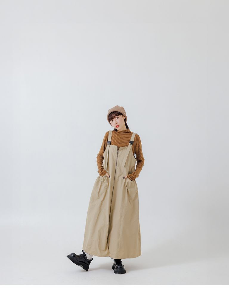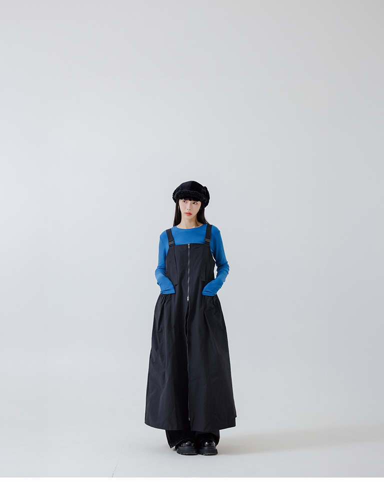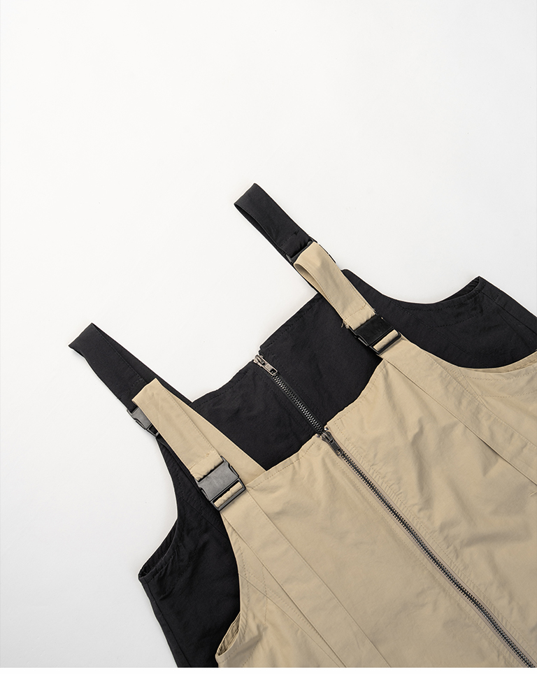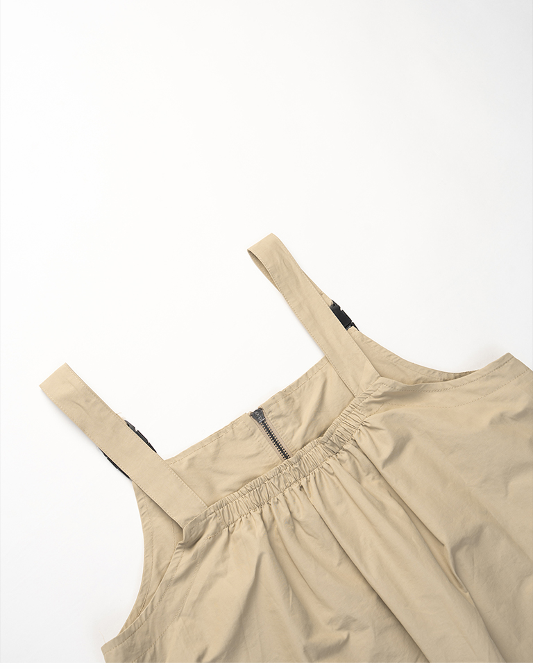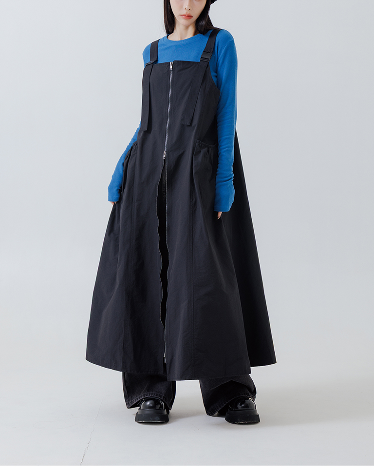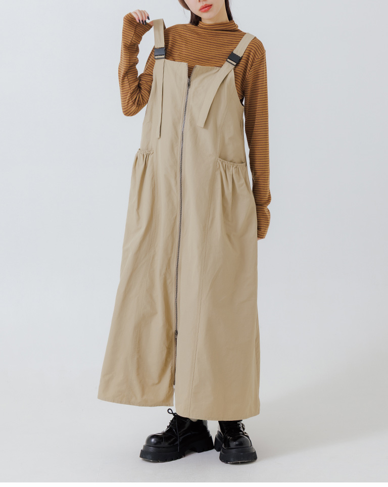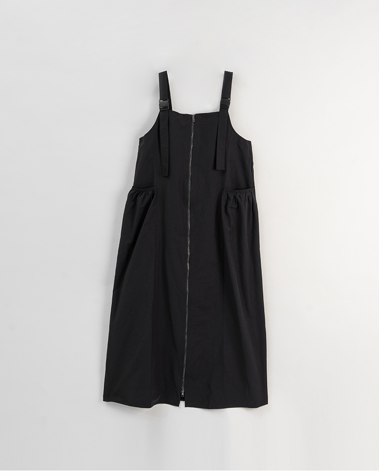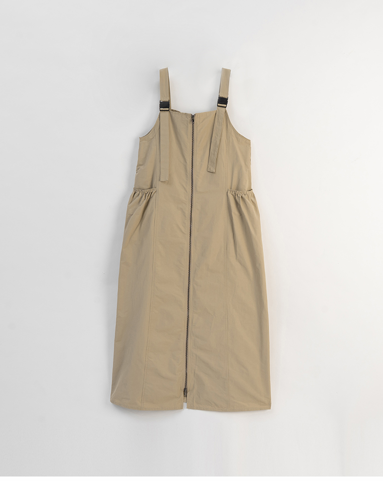 Double-zip workwear camisole dress, available in two colors.