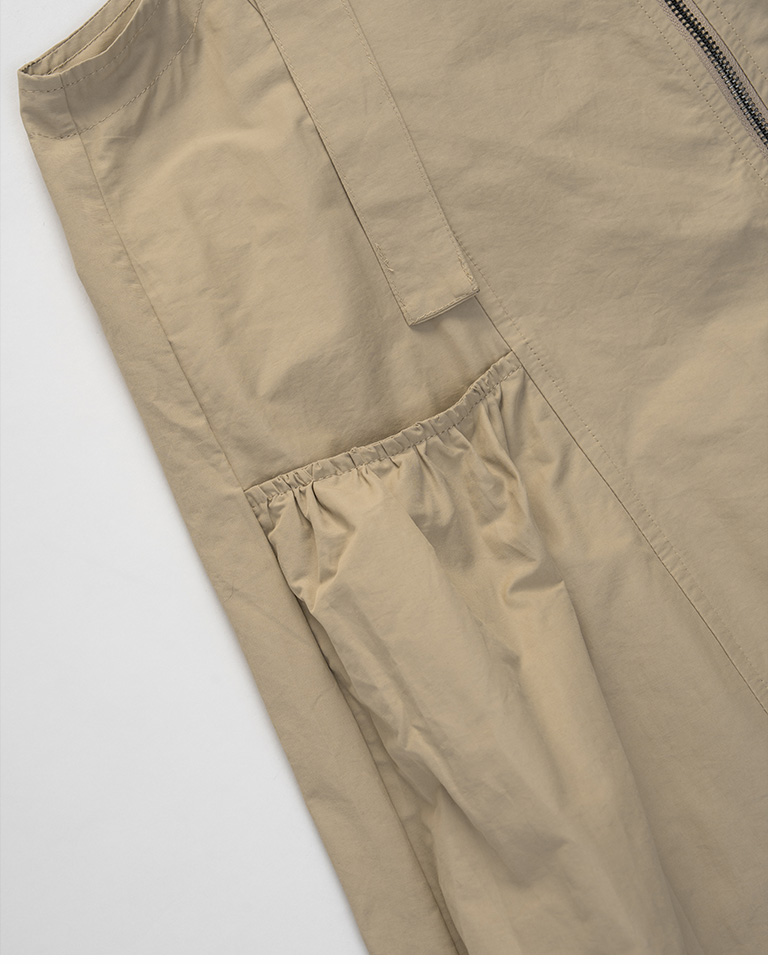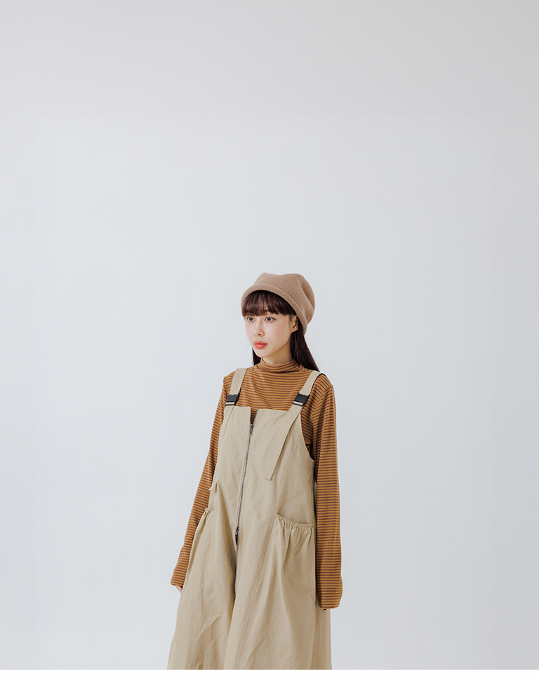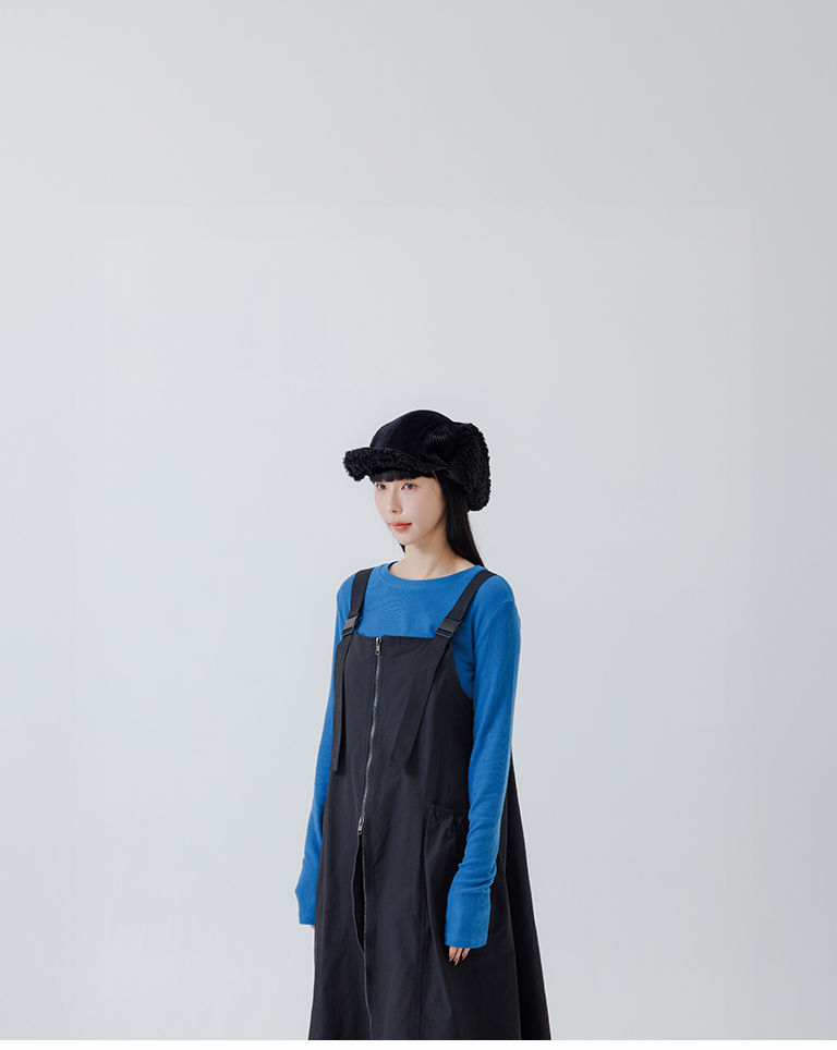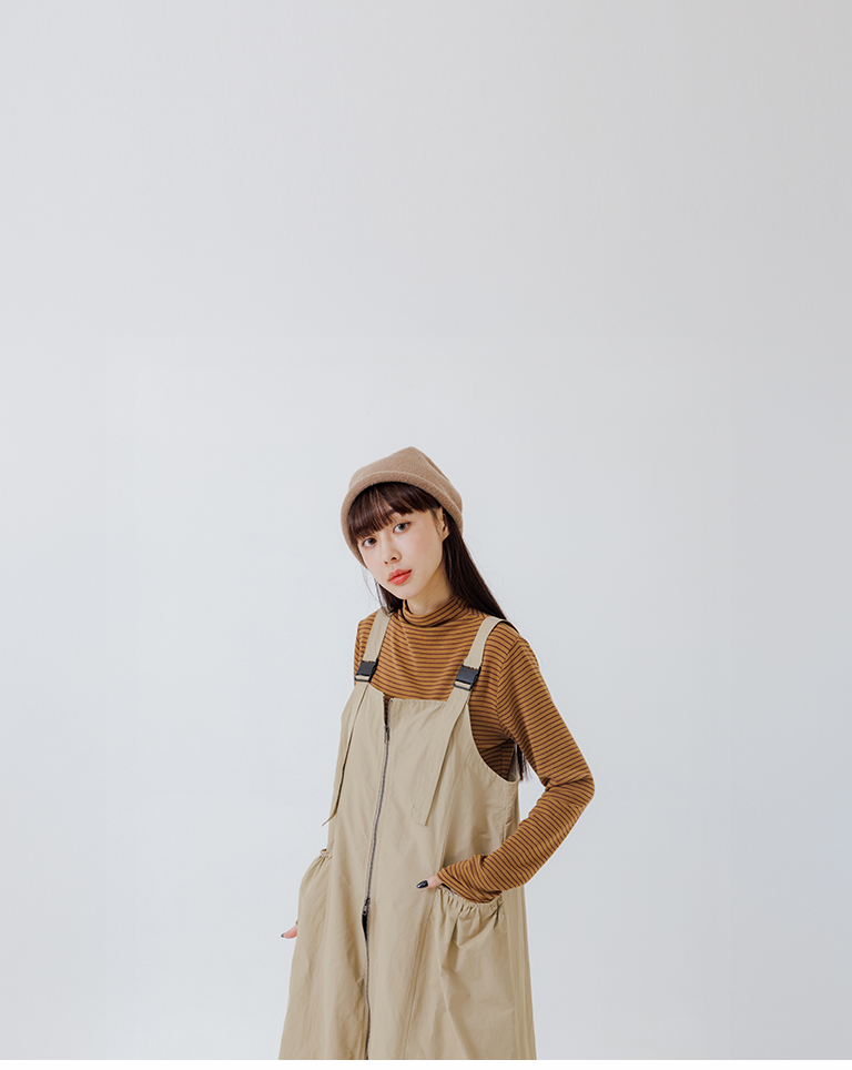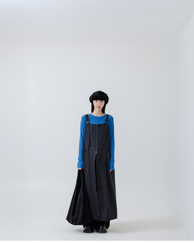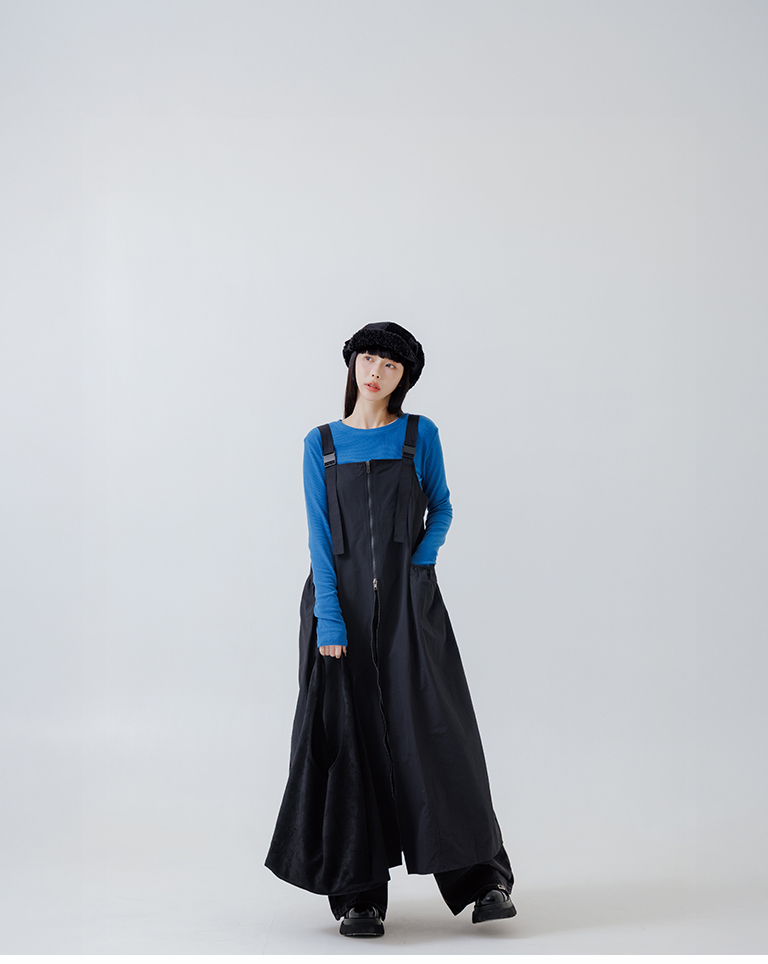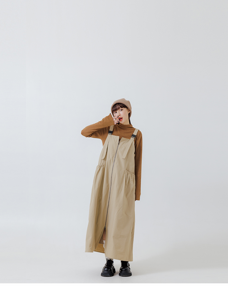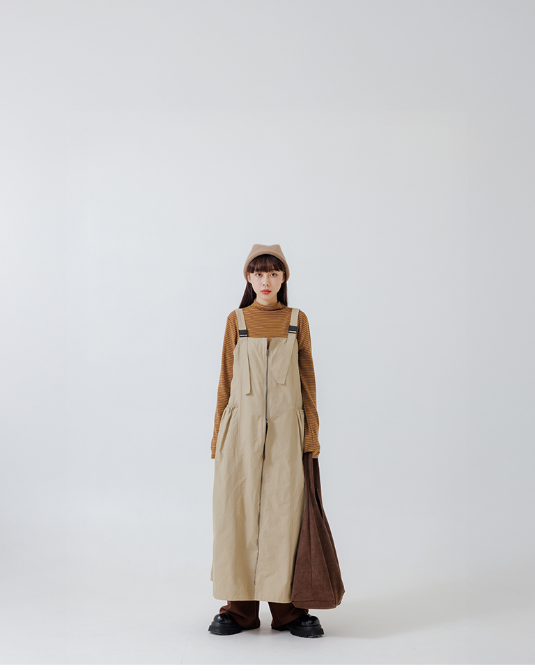 Double-zip workwear camisole dress, available in two colors.