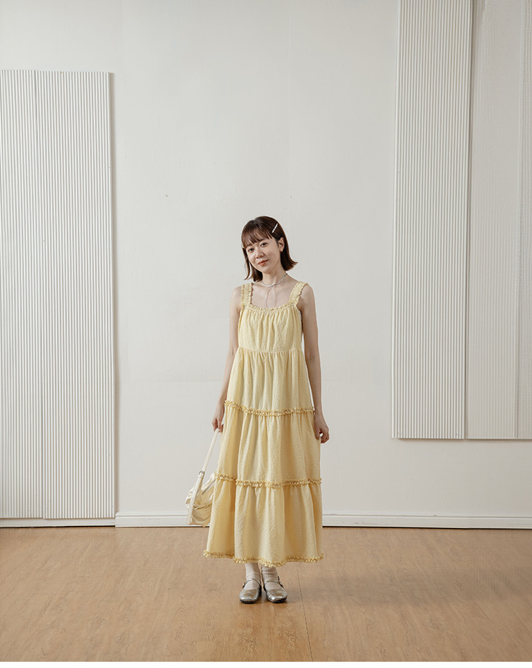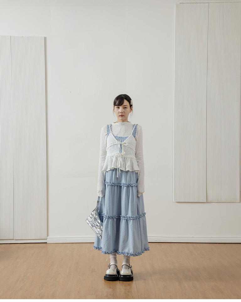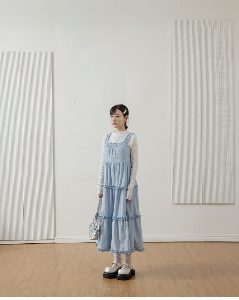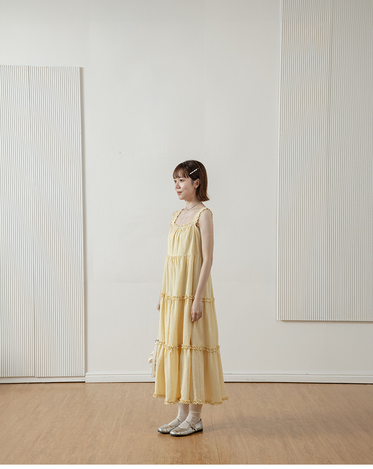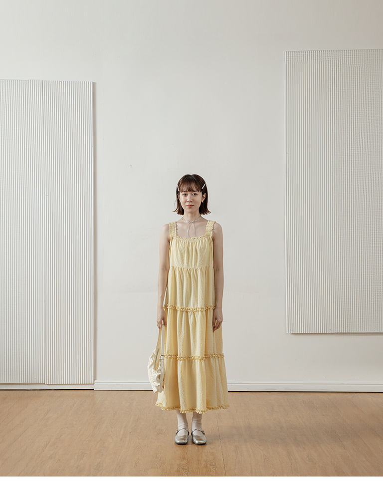Lotus leaf cake-style jacquard long dress, available in two colors.