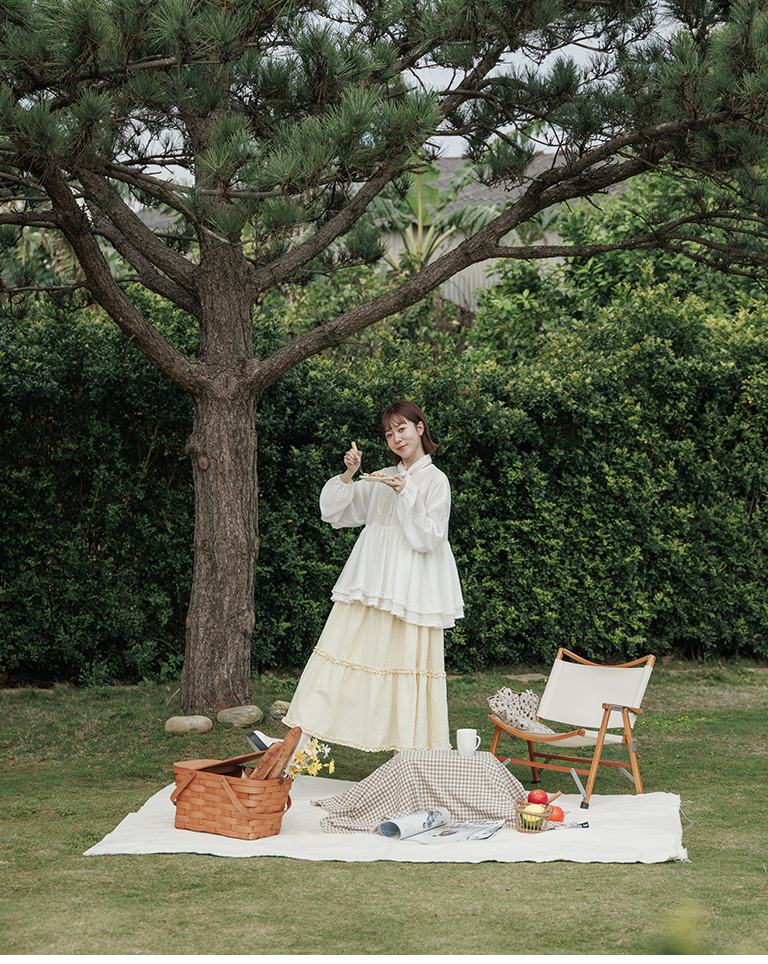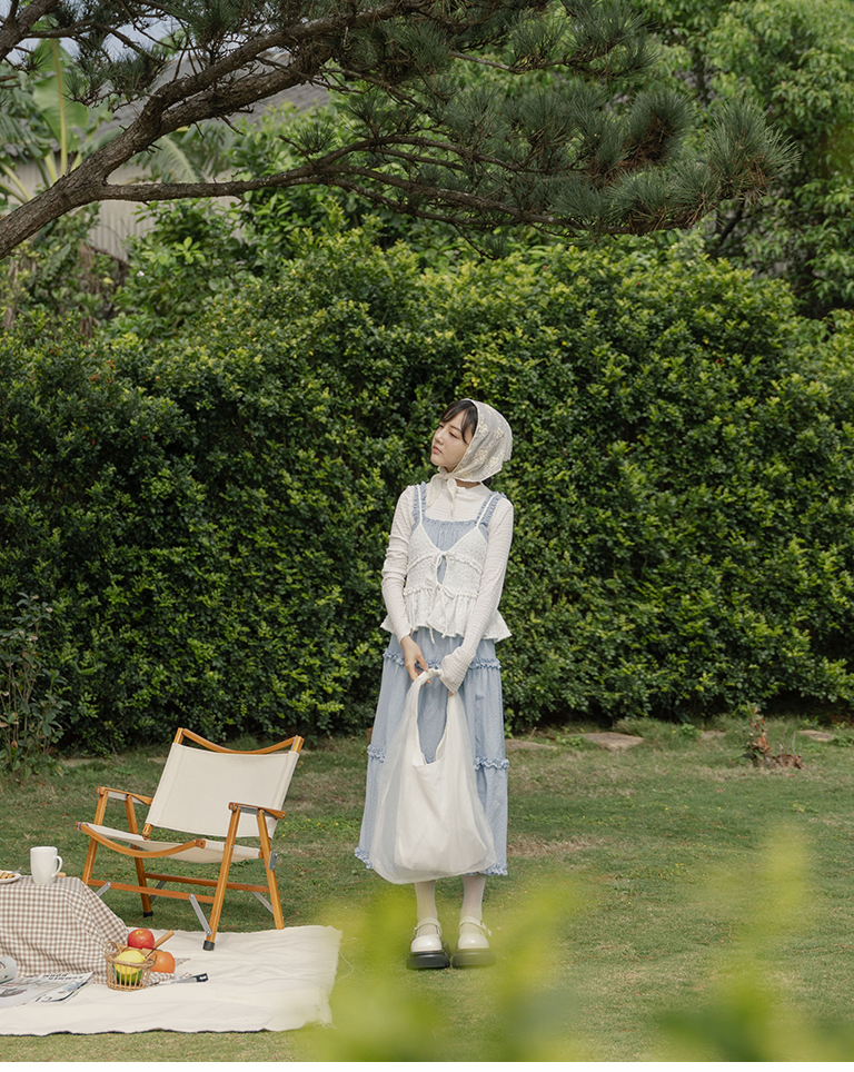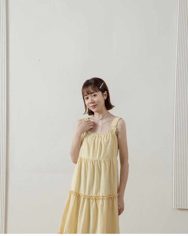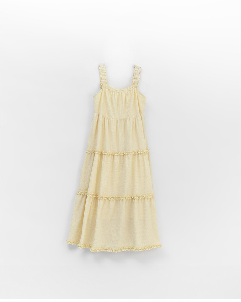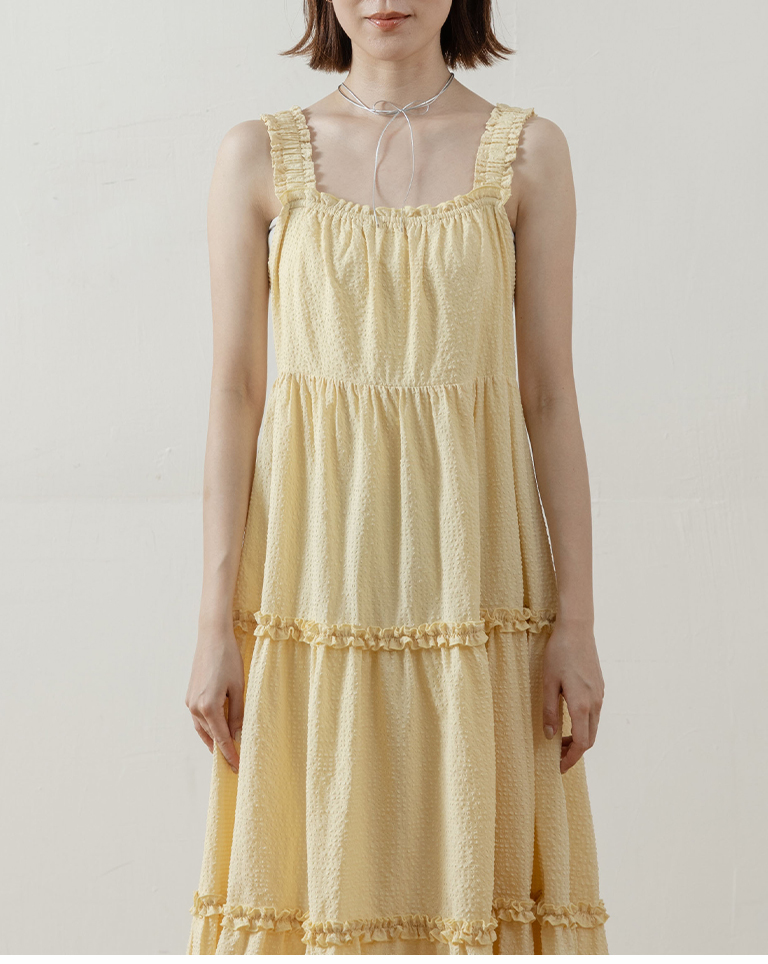 Lotus leaf cake-style jacquard long dress, available in two colors.