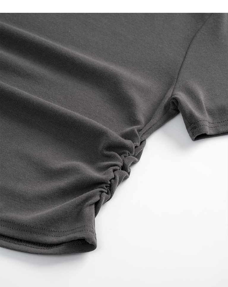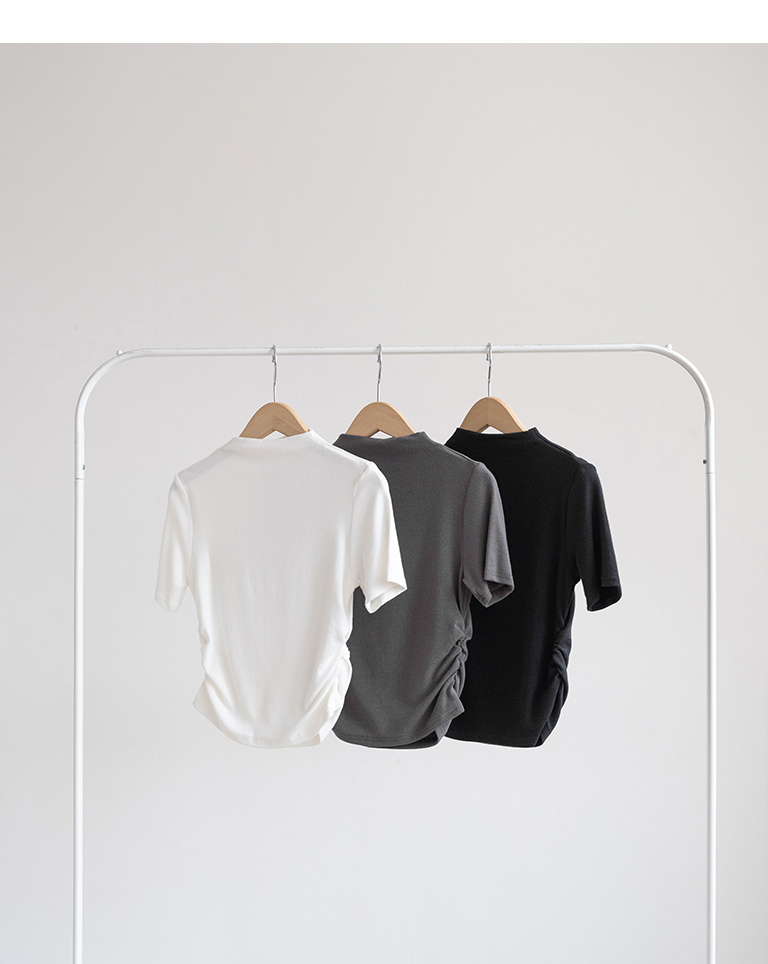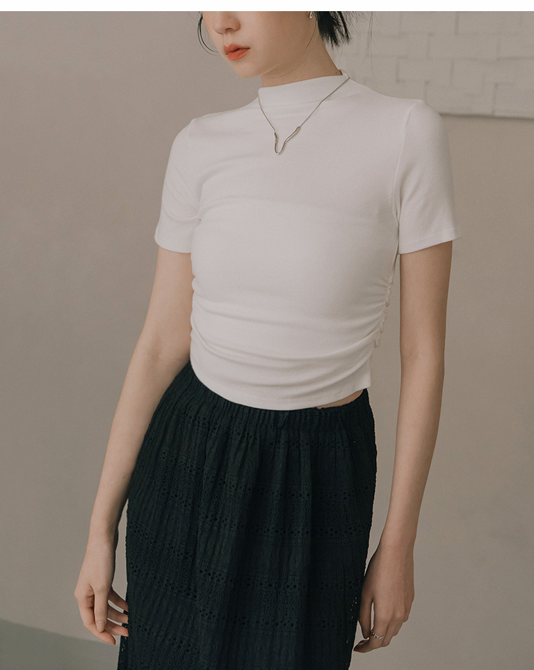 Textured bottle neck side ruched fitted top - white