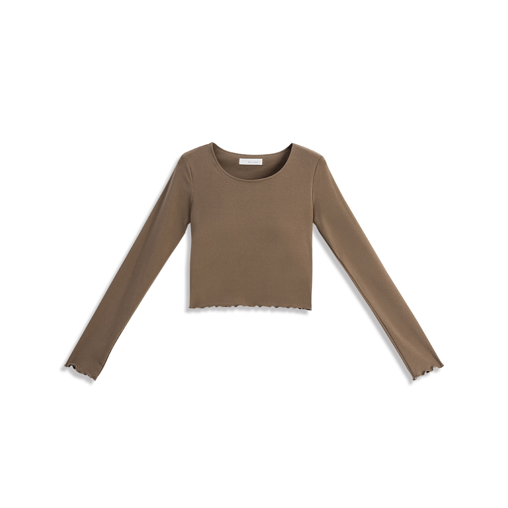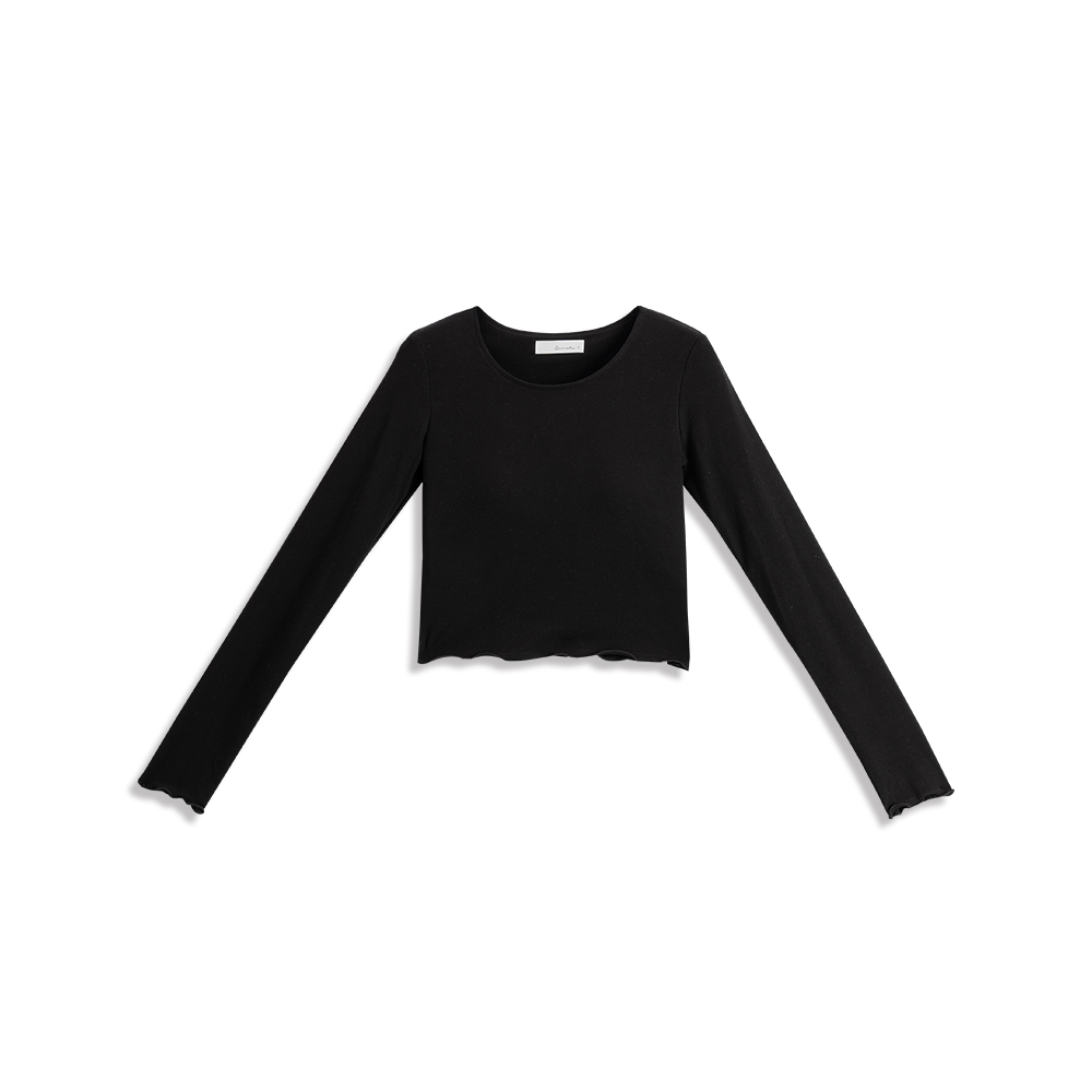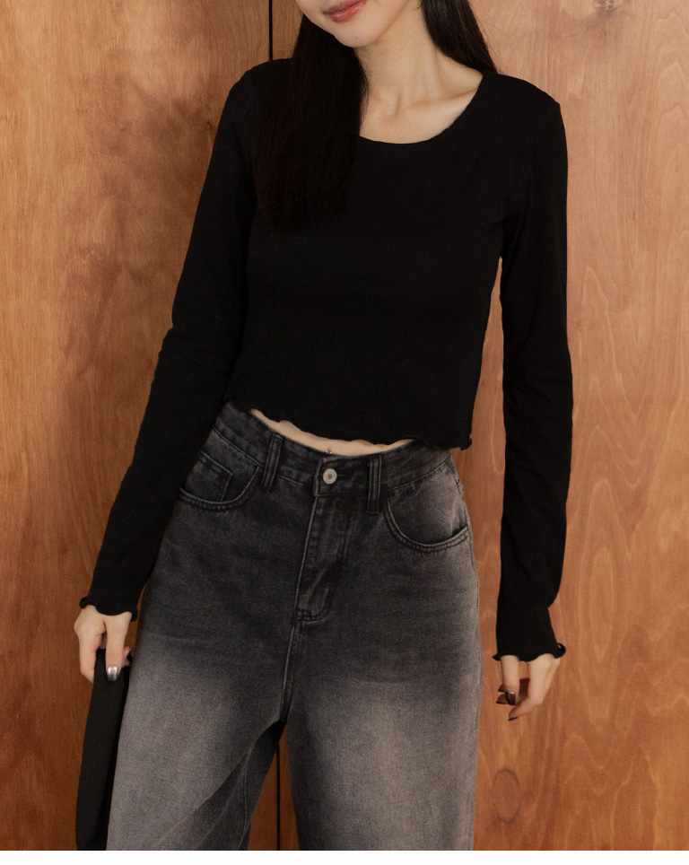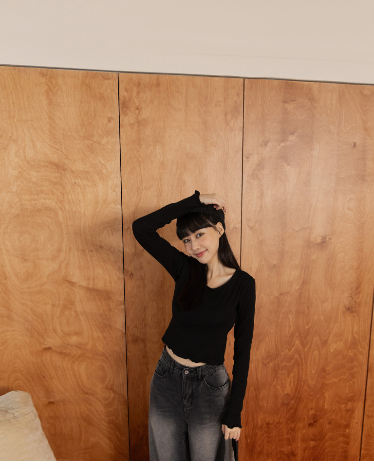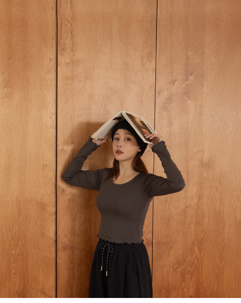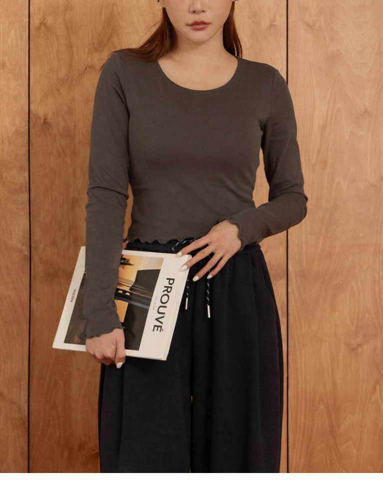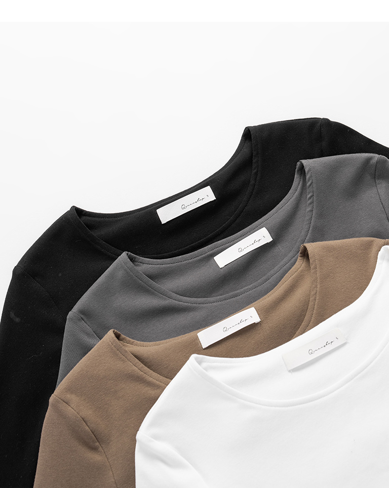 Plain large U-neck design long-sleeved BRA TOP sold in four colors
