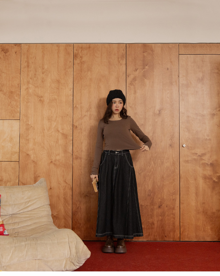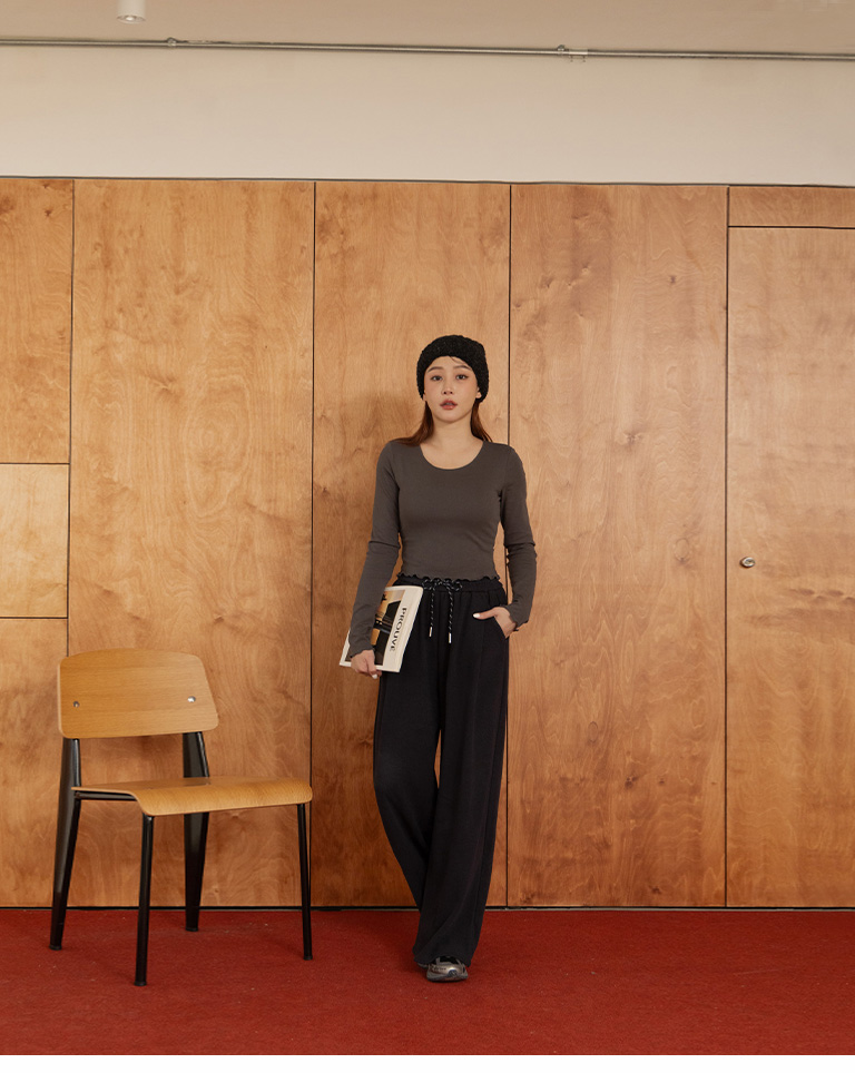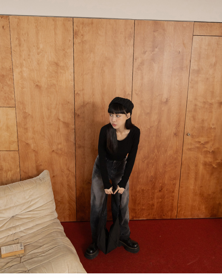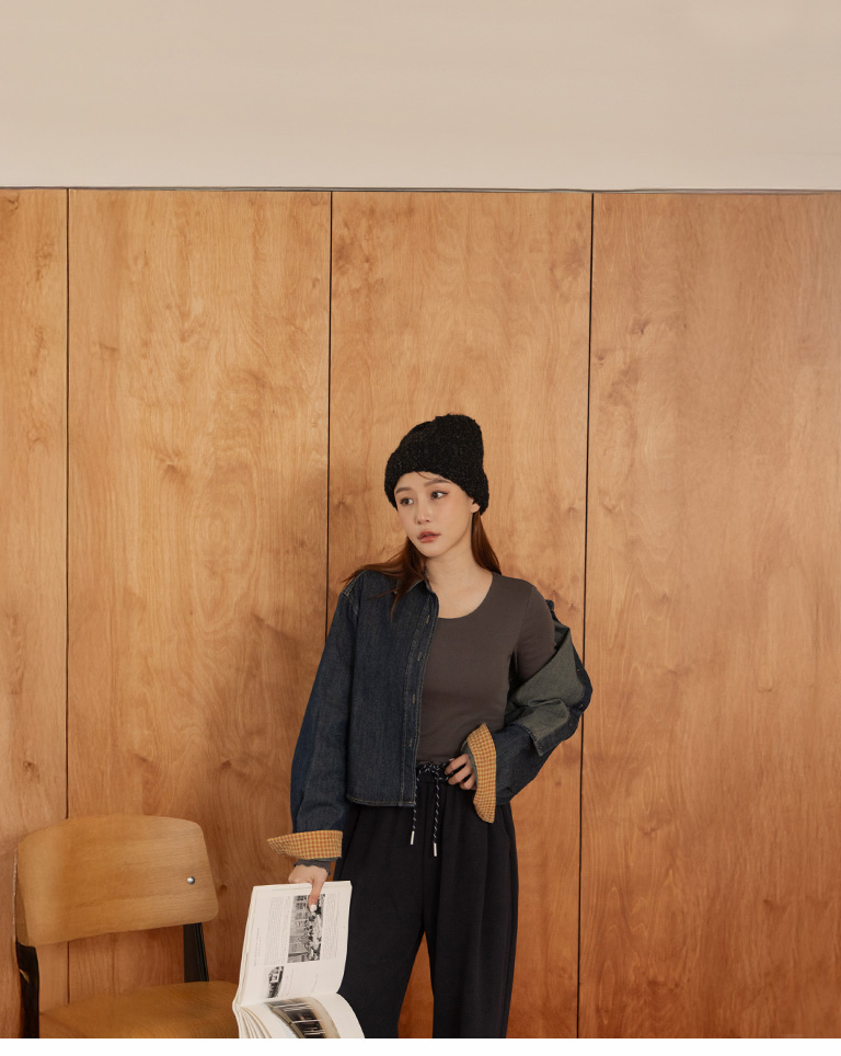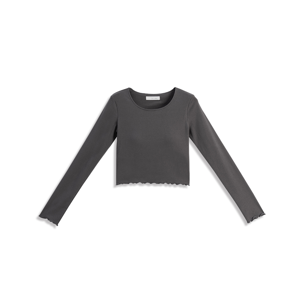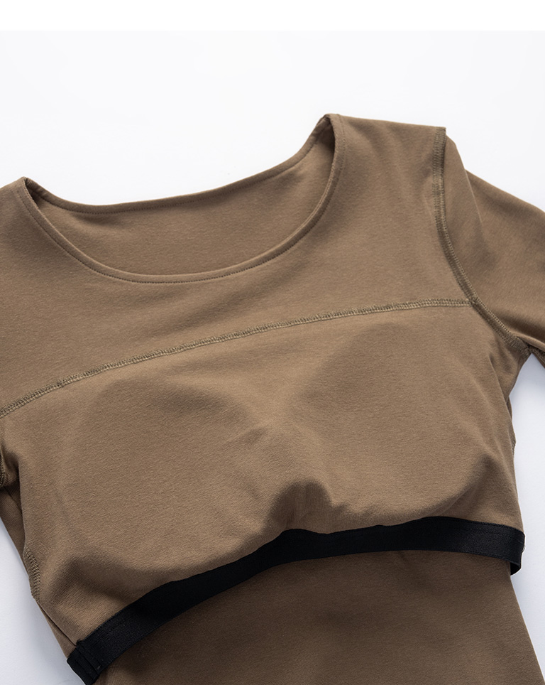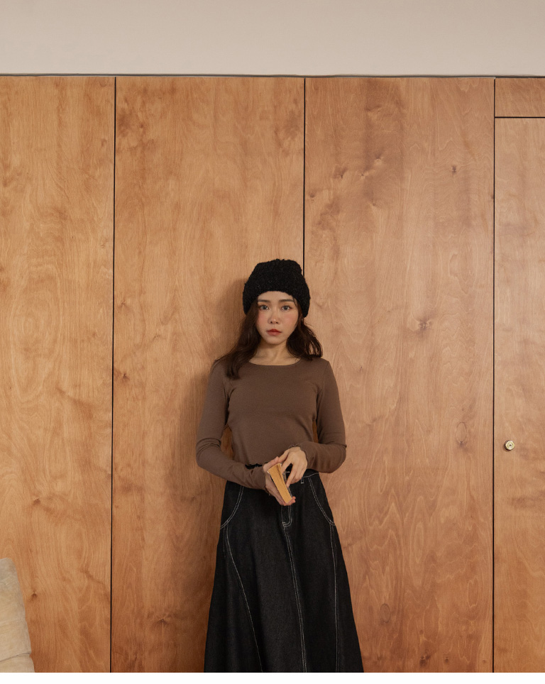 Plain large U-neck design long-sleeved BRA TOP sold in four colors