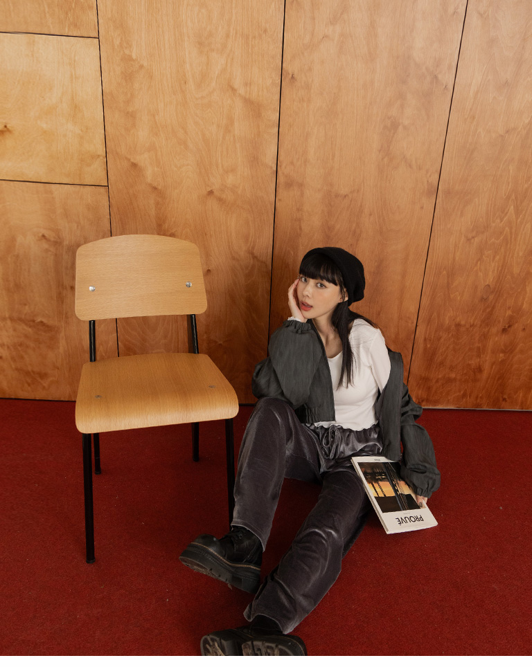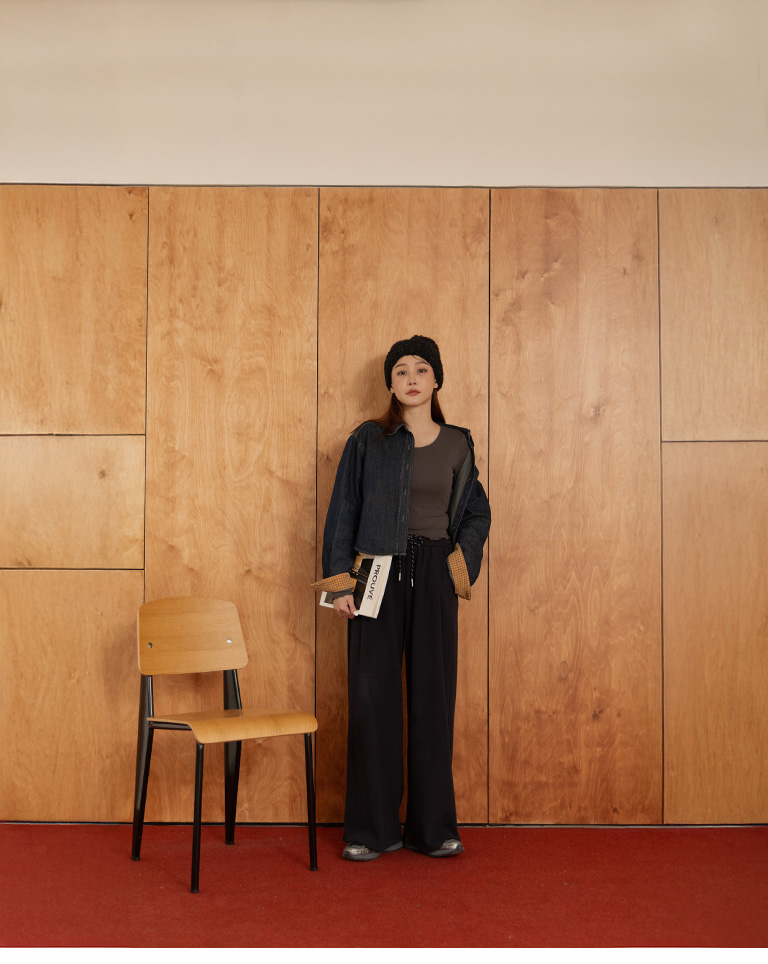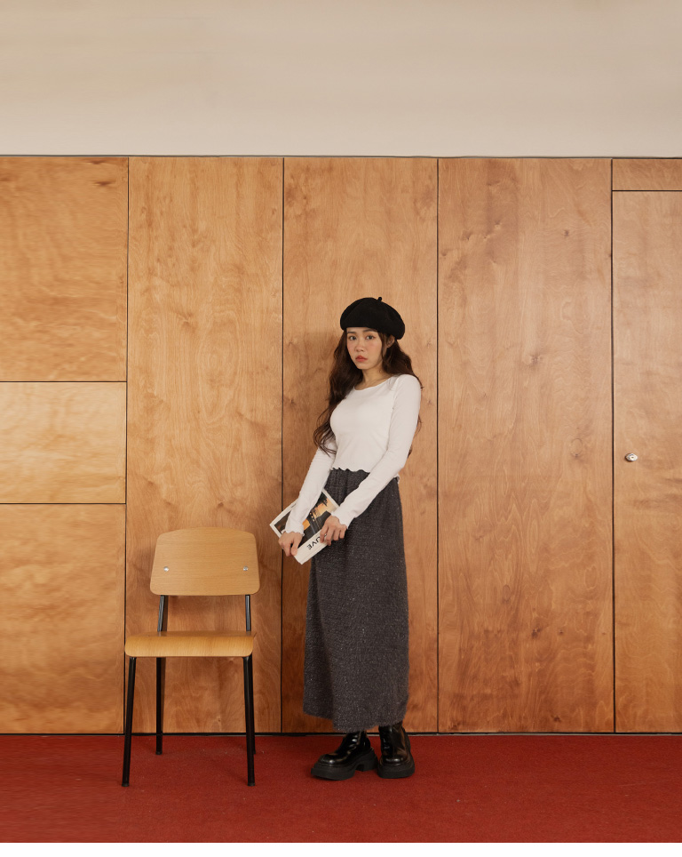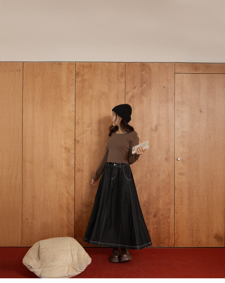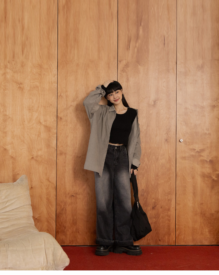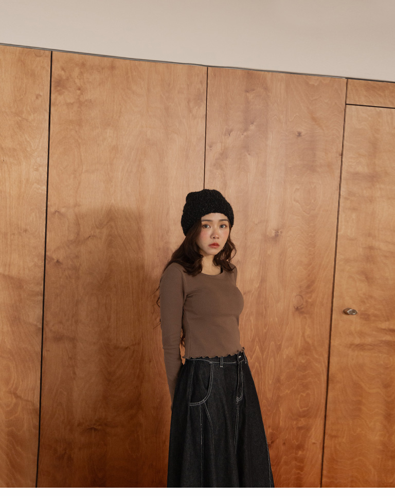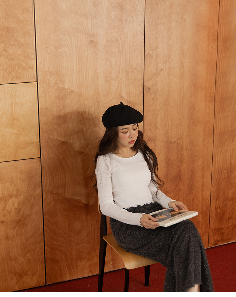 Plain large U-neck design long-sleeved BRA TOP sold in four colors