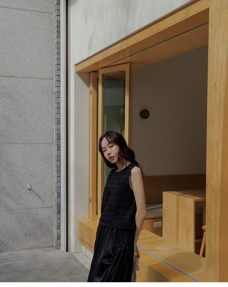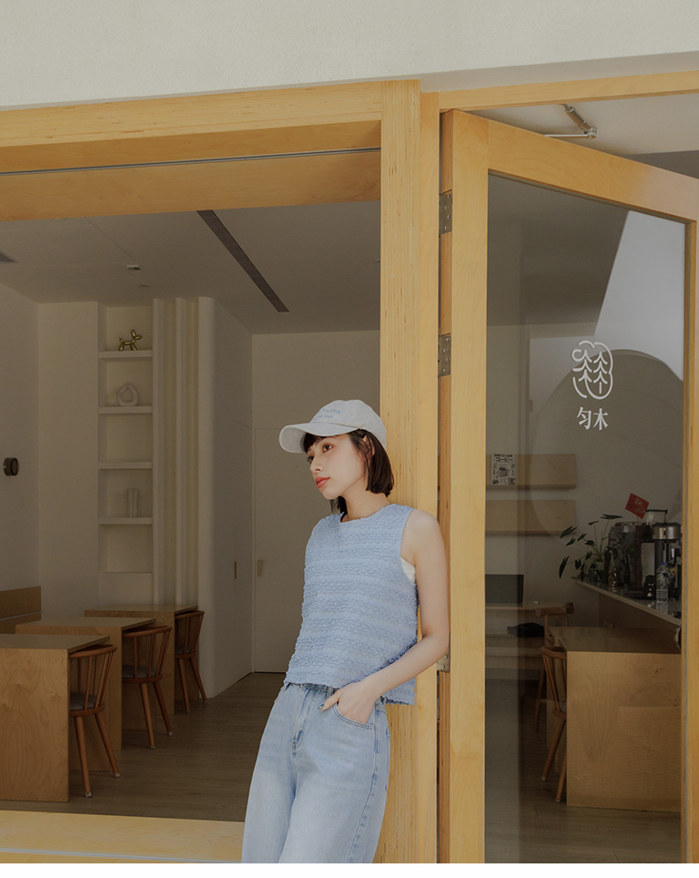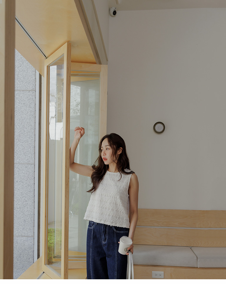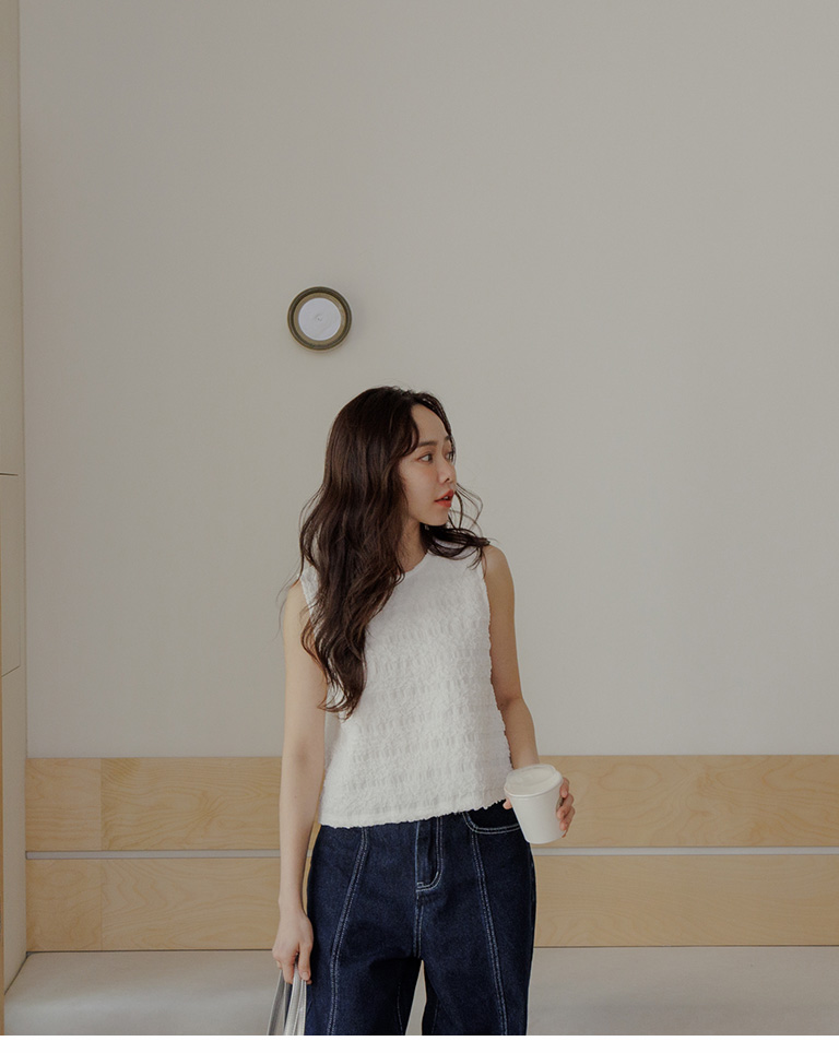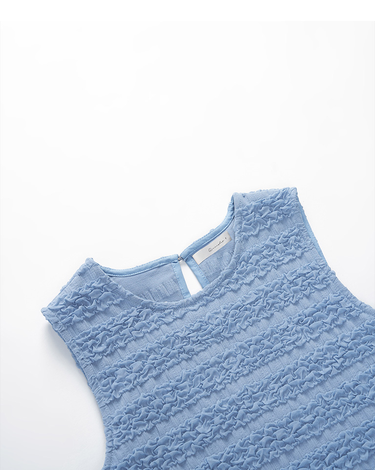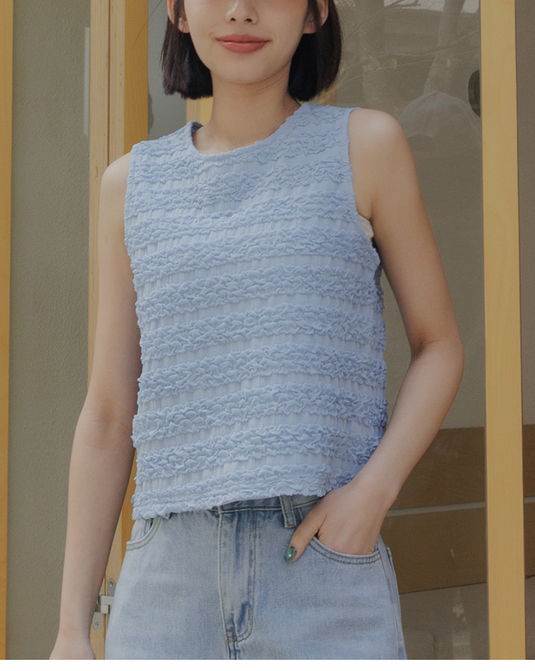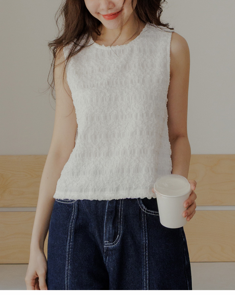 Three-dimensional wavy texture sleeveless wide shoulder vest sold in three colors
