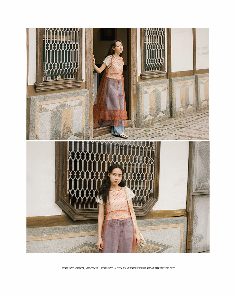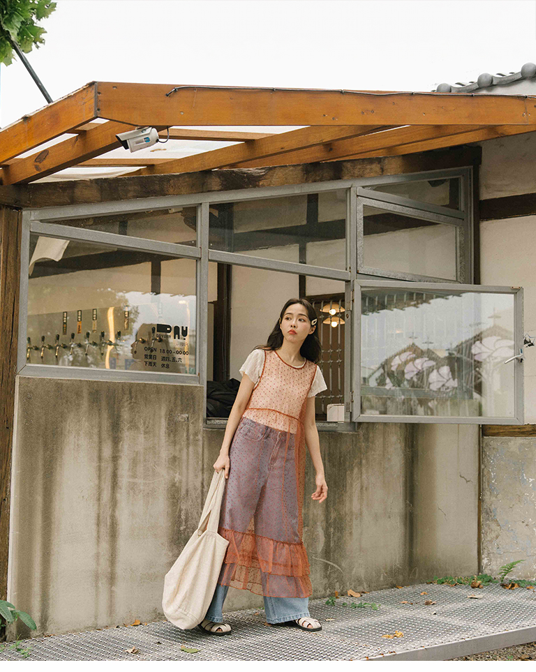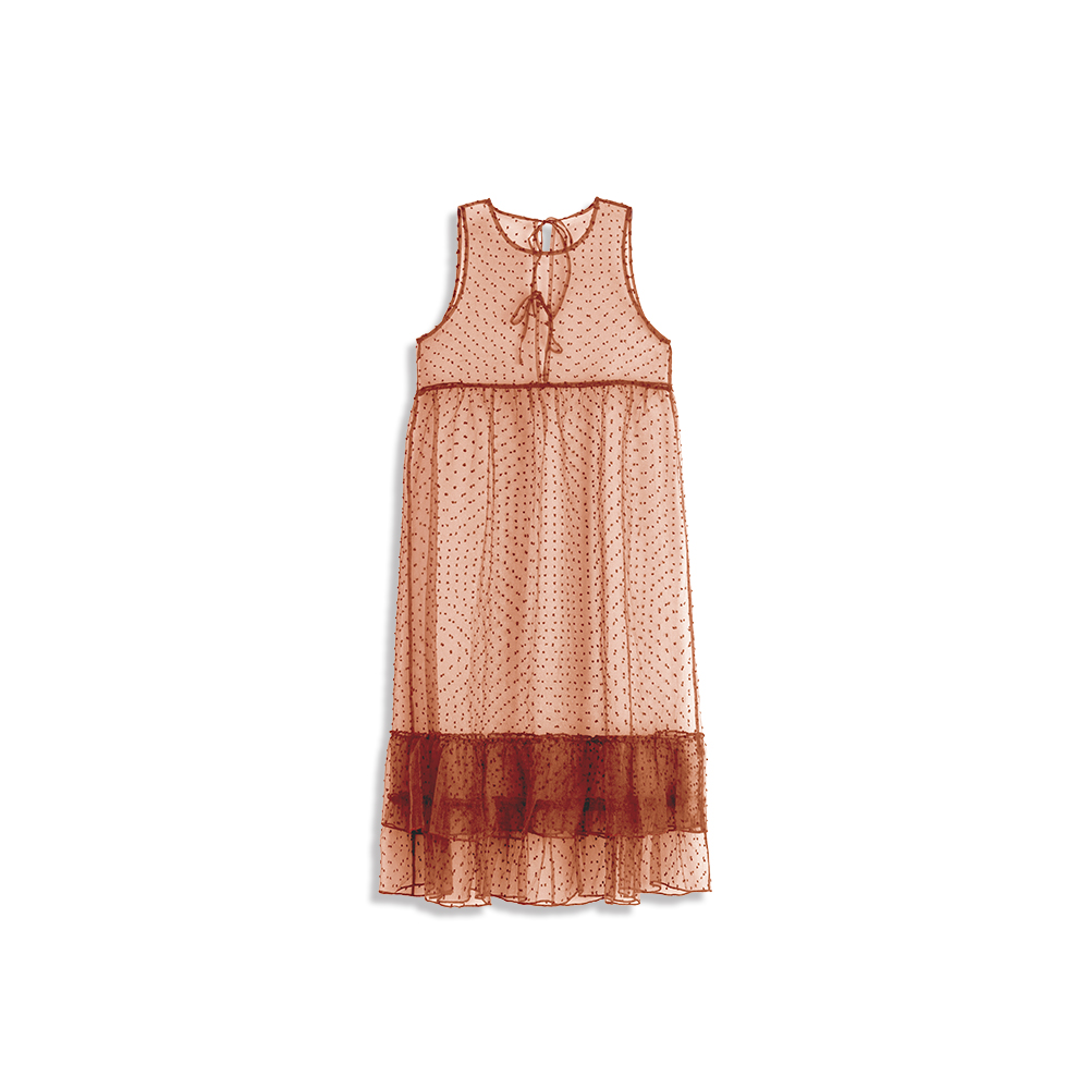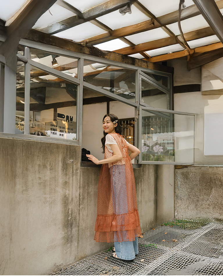 3D Dot Cake Pendant Transparent Tie-Strap Blouse - Dark Orange