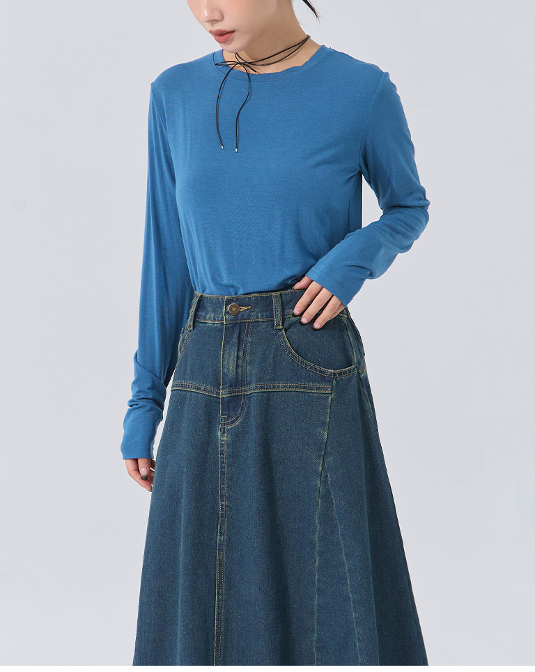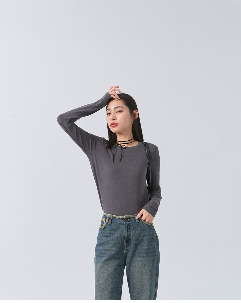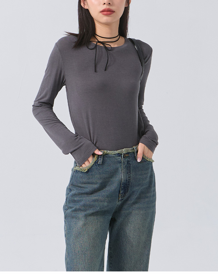 Plain round neck elastic design top five colors for sale