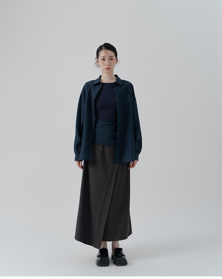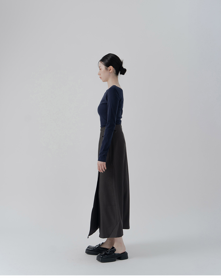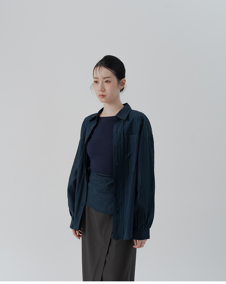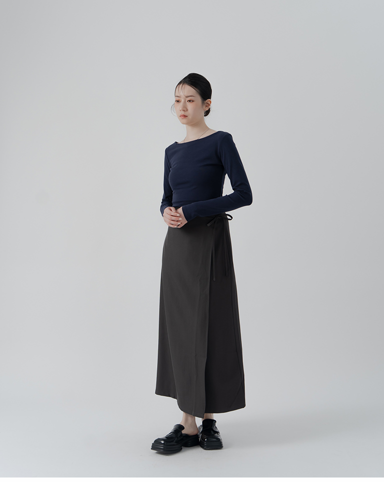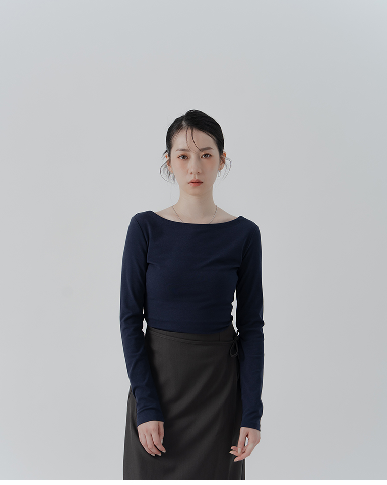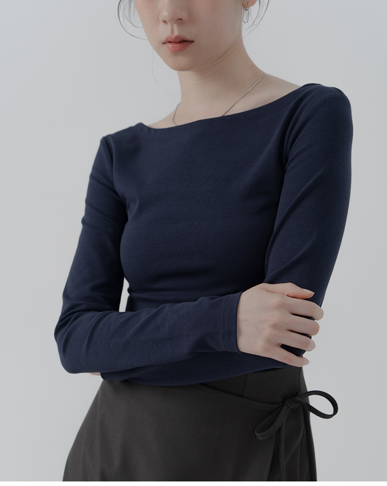 Solid Flat Collar Elastic Design Long Sleeve Top - Blue S/M/L