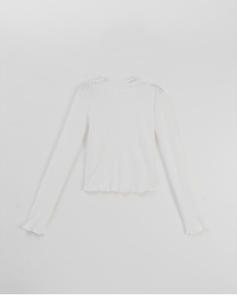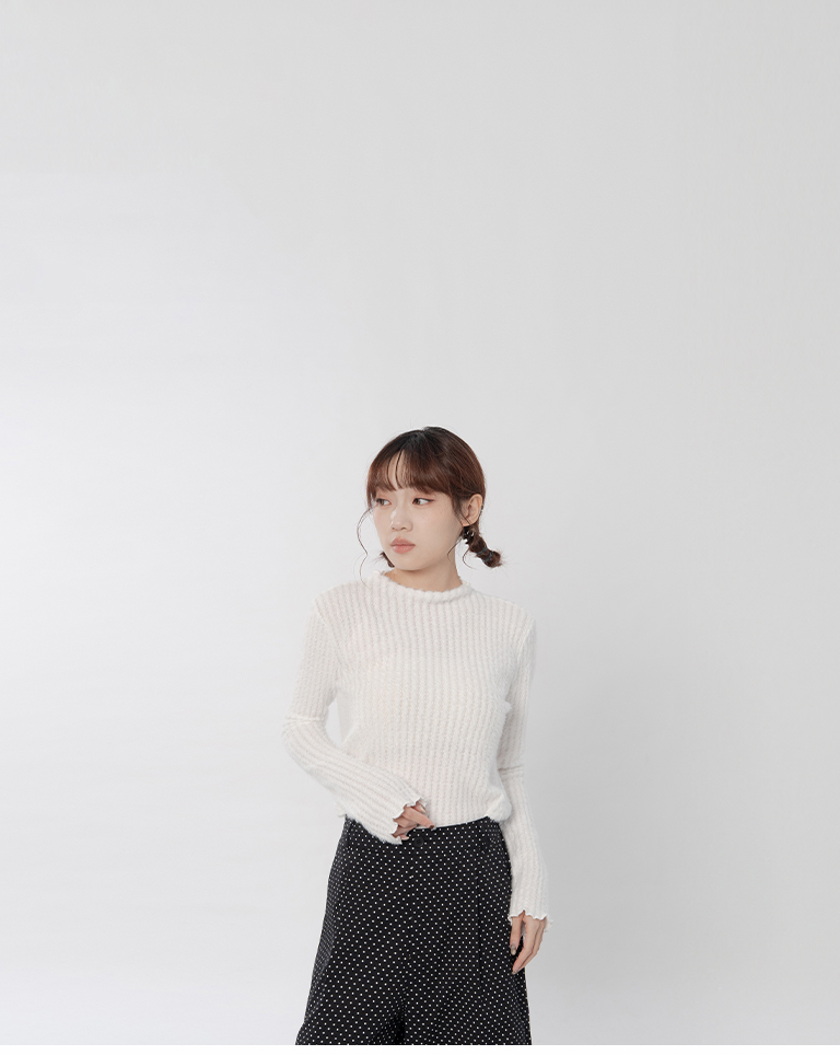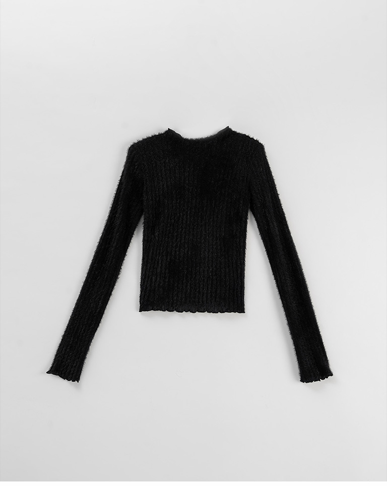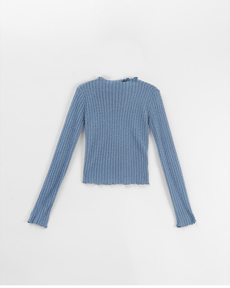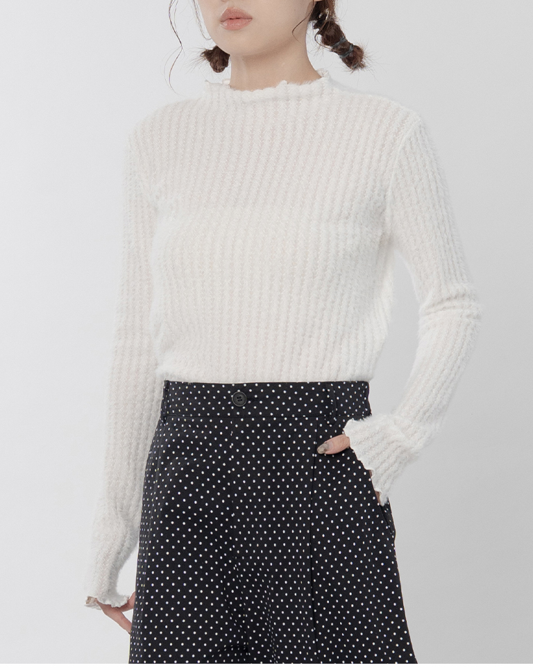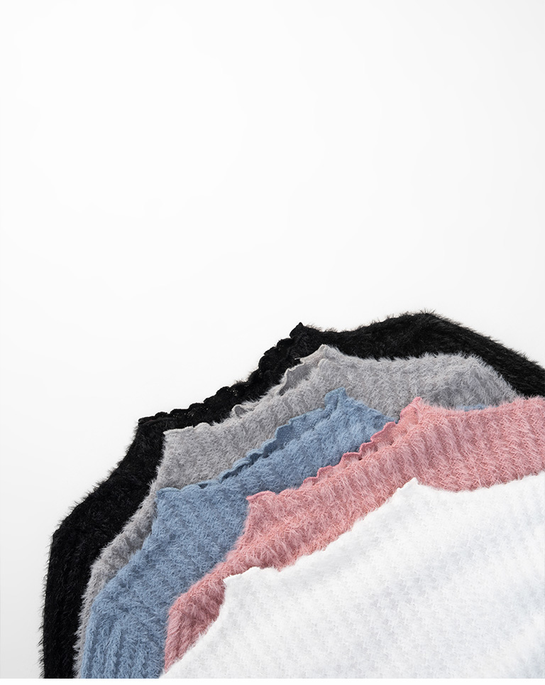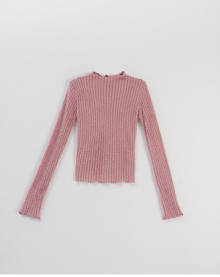 3D fleece textured knit turtleneck top, available in five colors, sizes S/M.