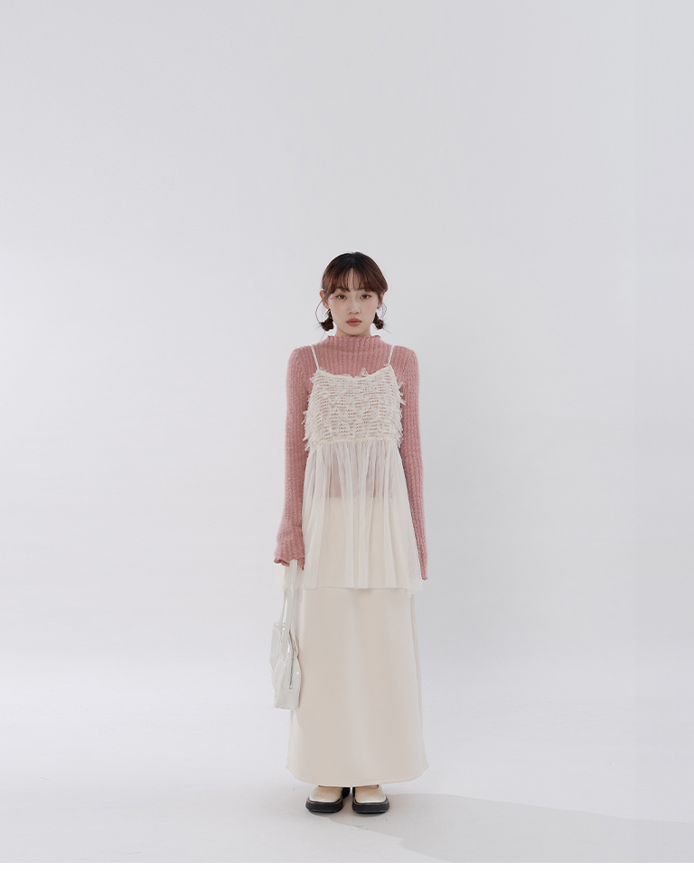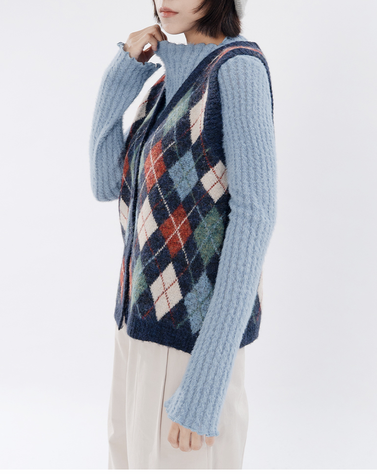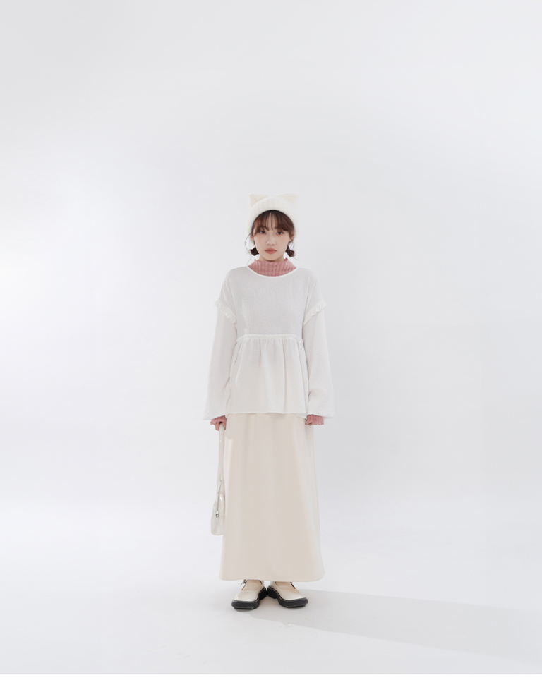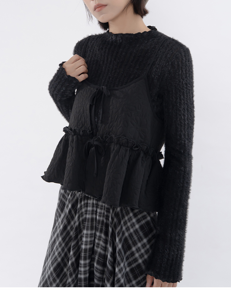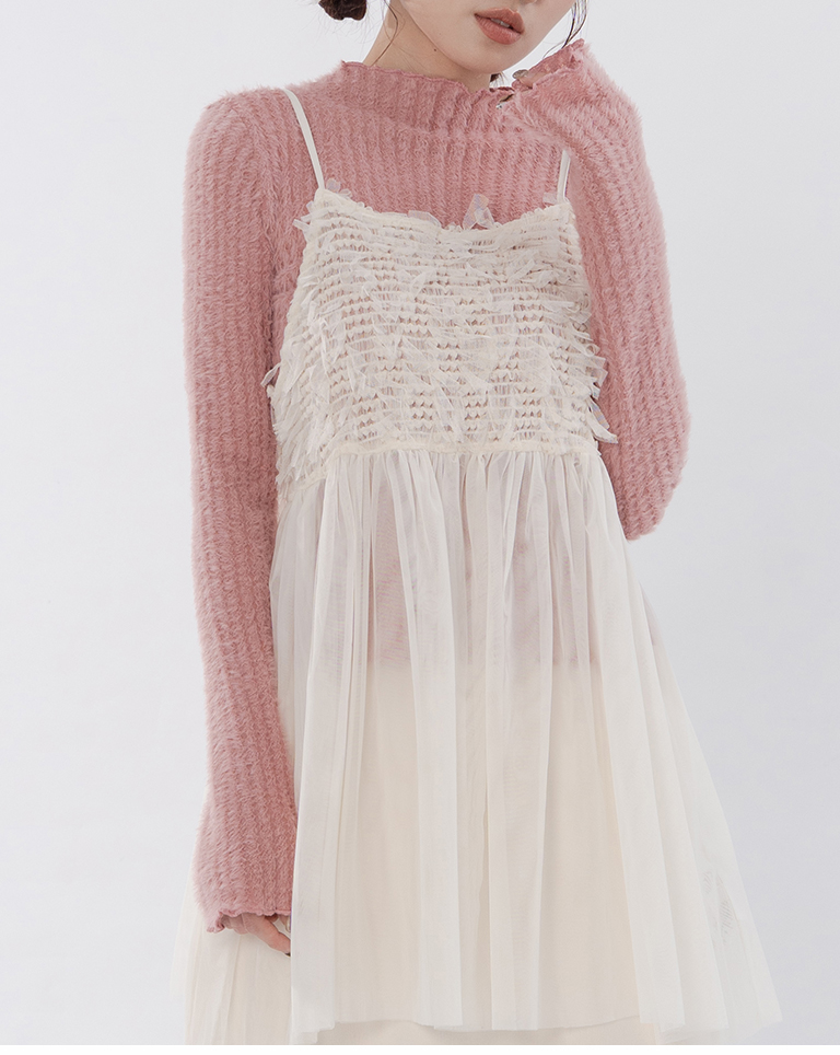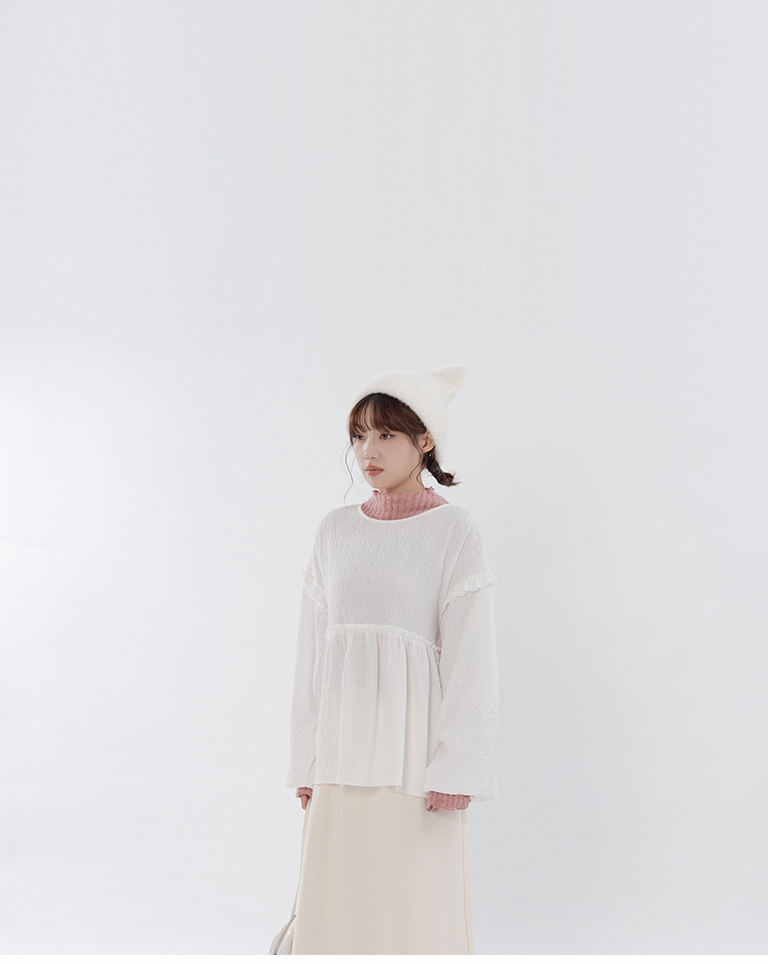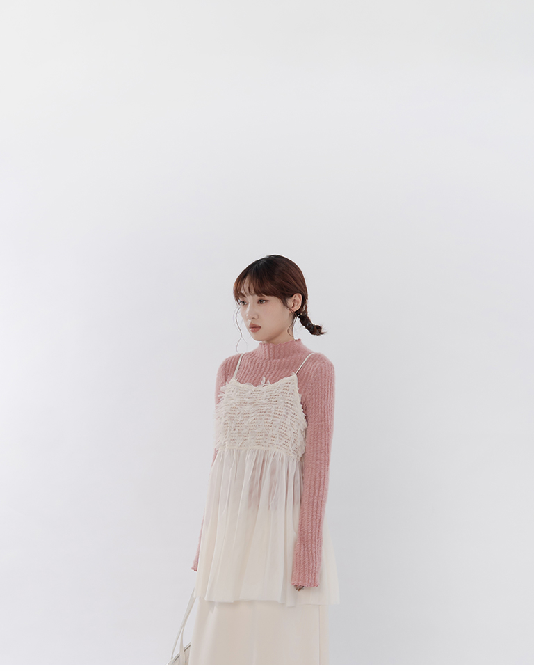 3D fleece textured knit turtleneck top, available in five colors, sizes S/M.