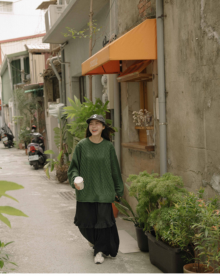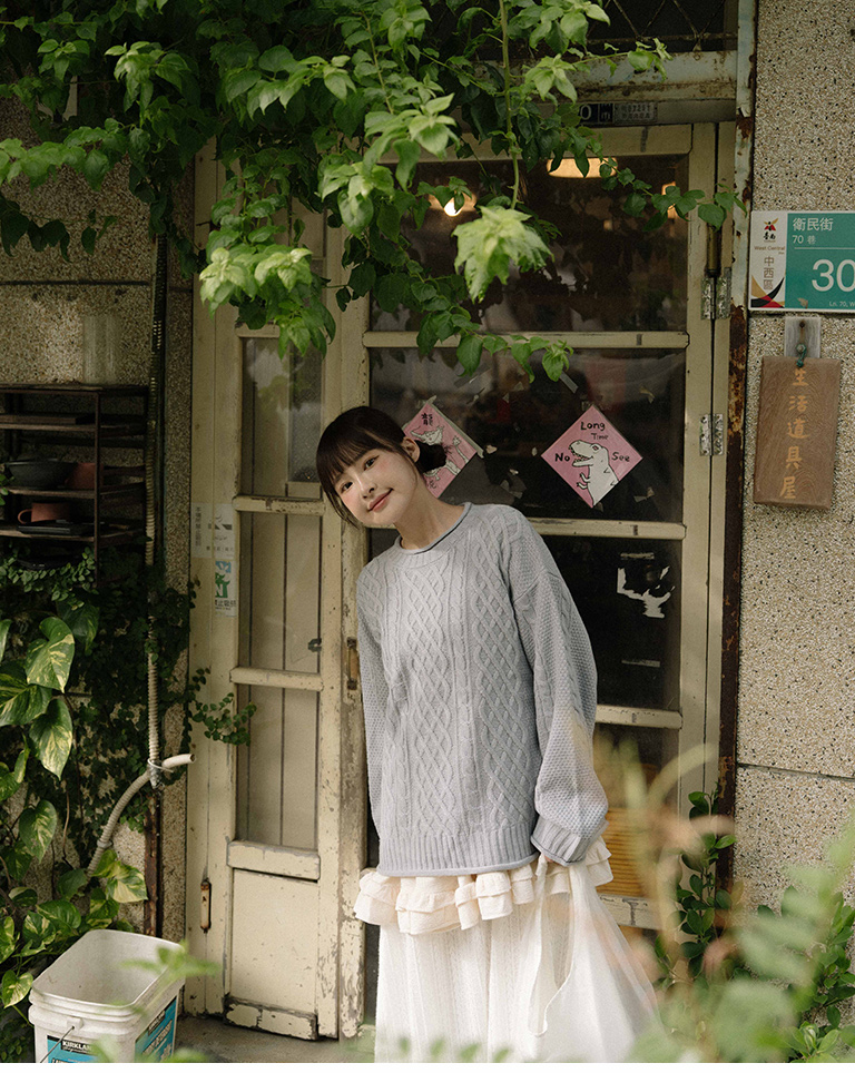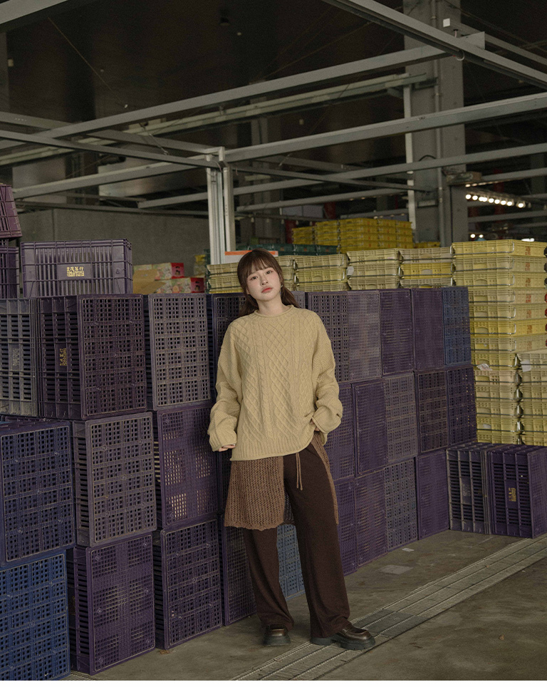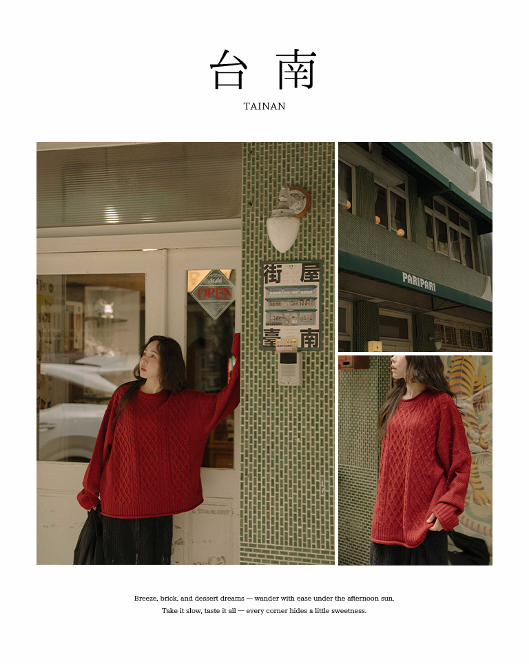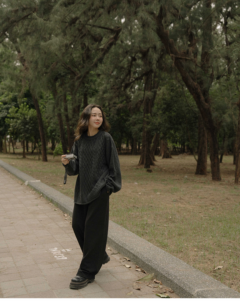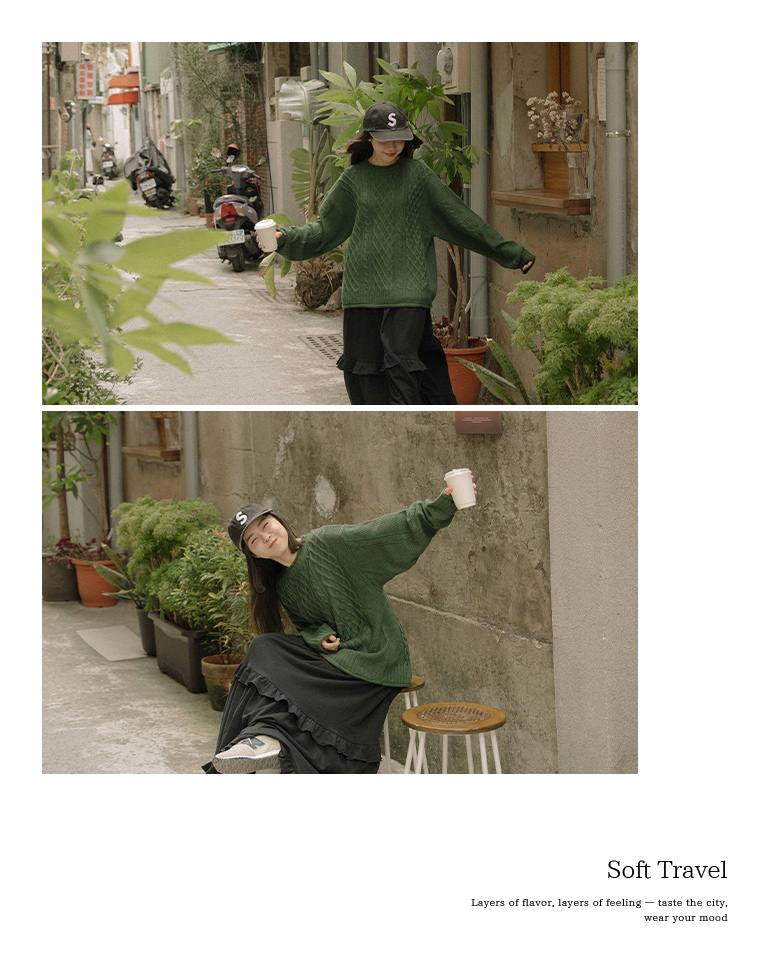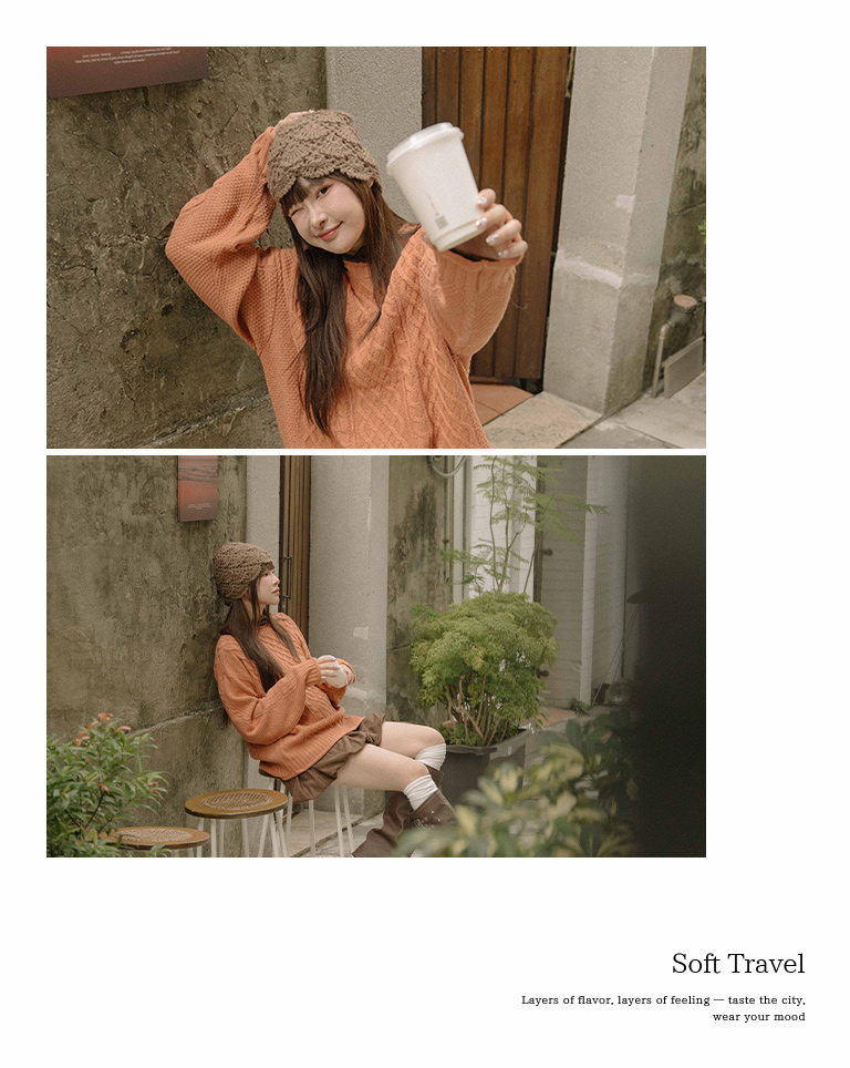 Rolled-hem cable knit wide-cut sweater, available in seven colors.