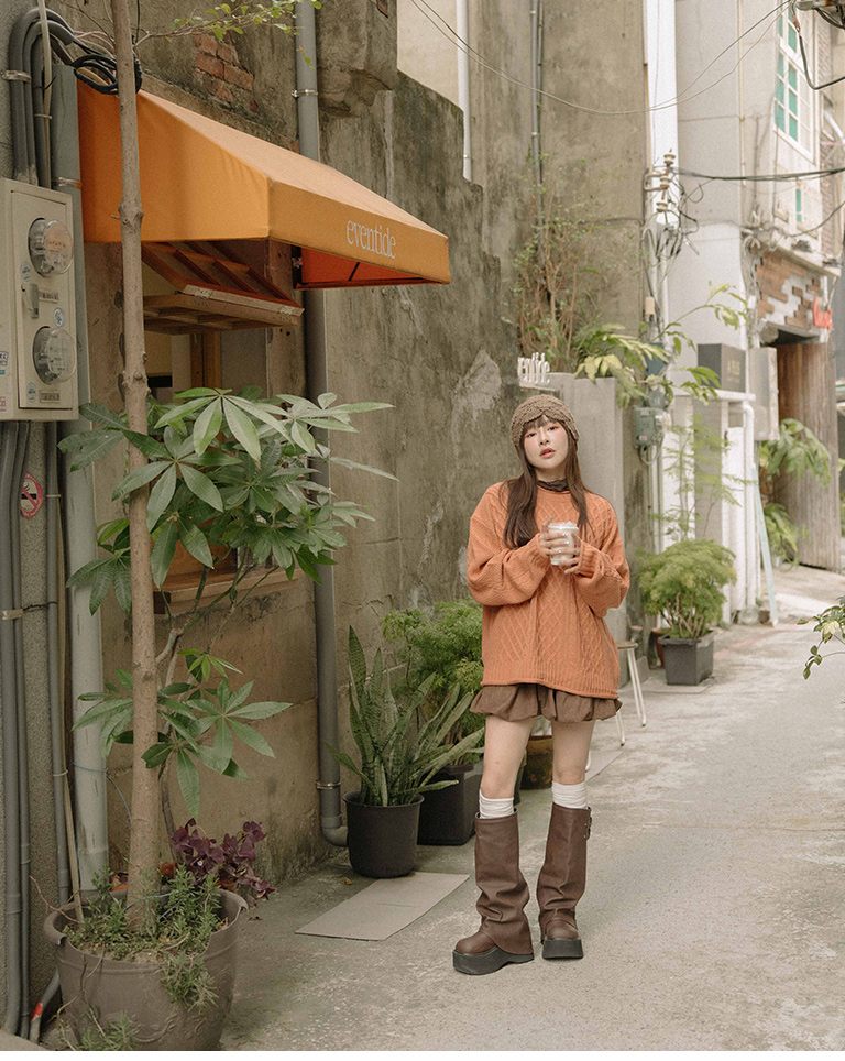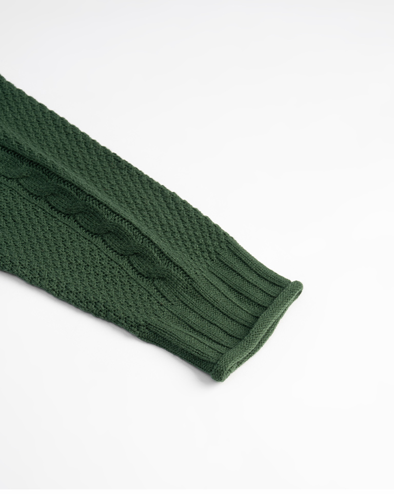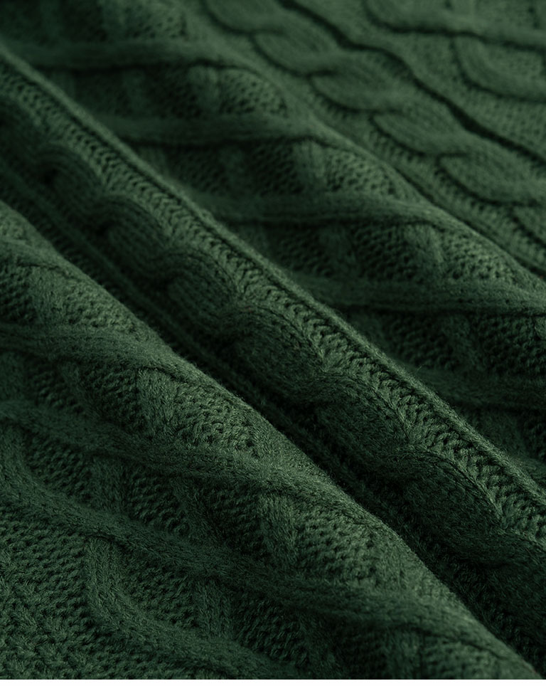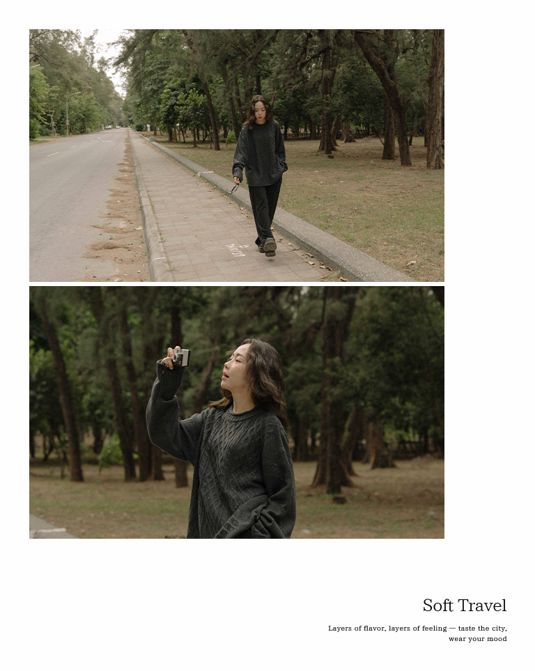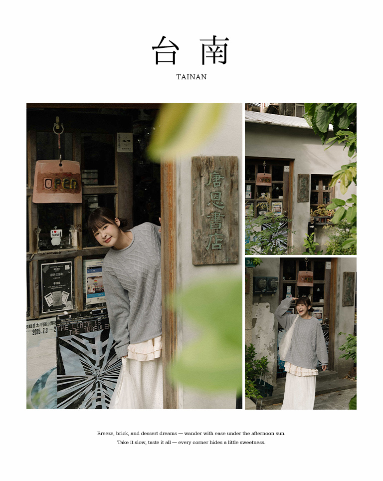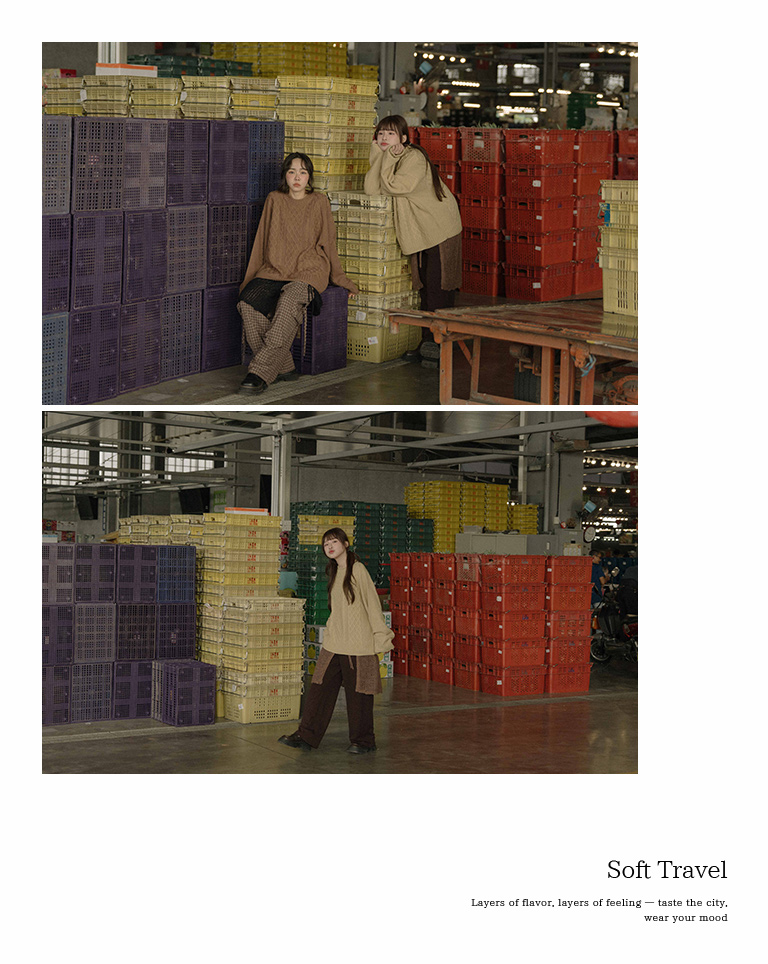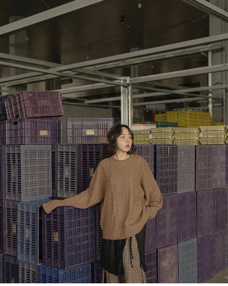 Rolled-hem cable knit wide-cut sweater, available in seven colors.