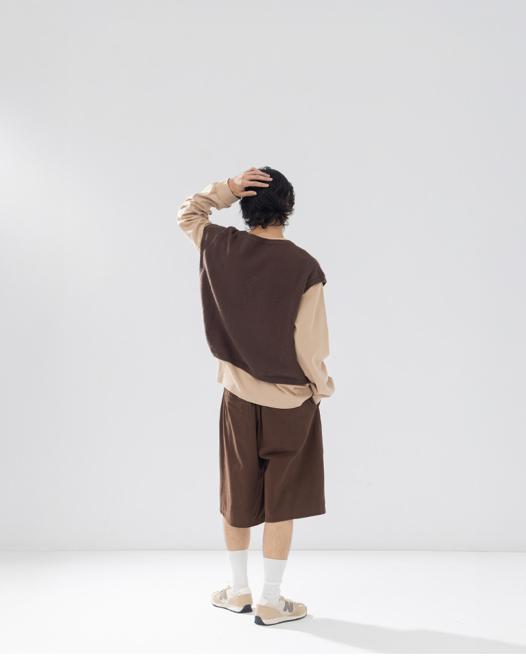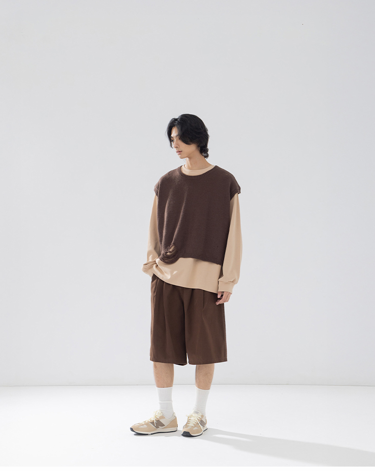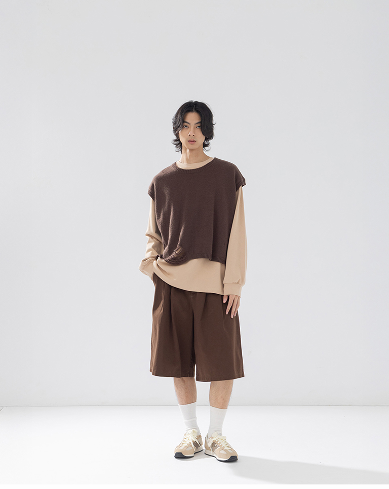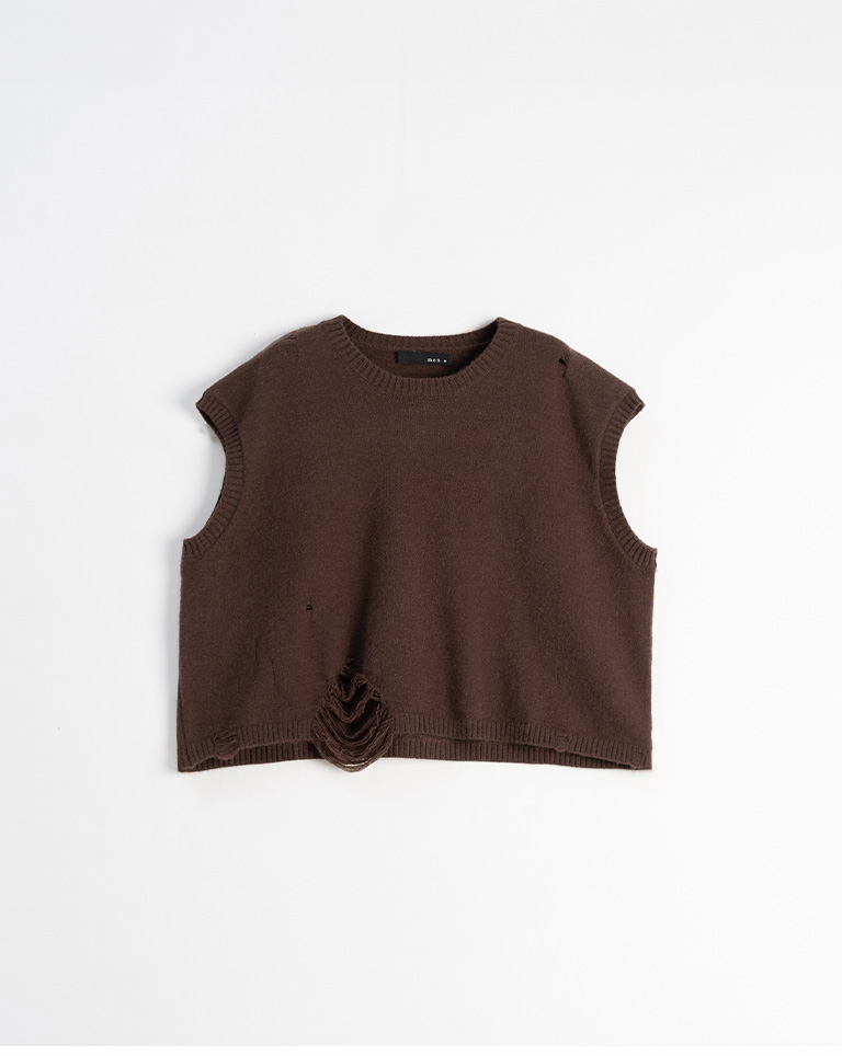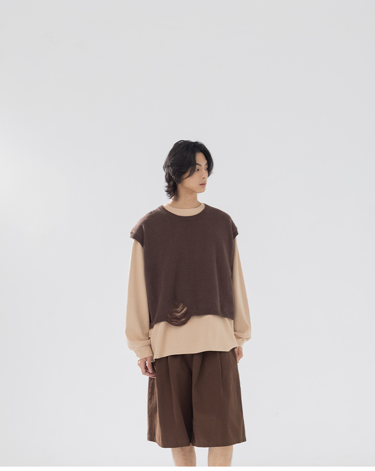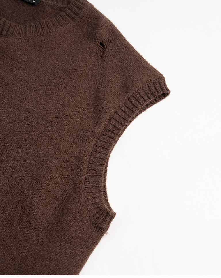 Men's Ripped Design Cropped Knit Vest - Brown M/L