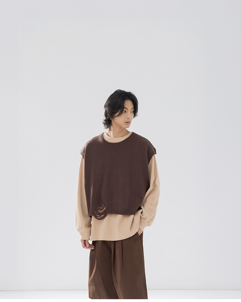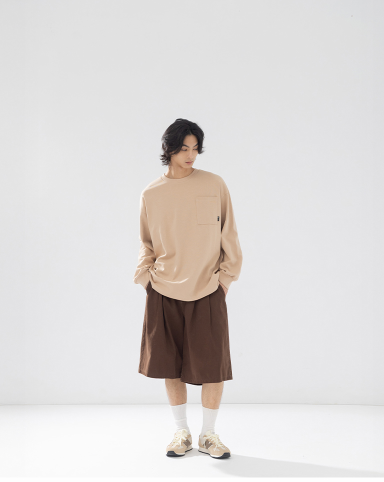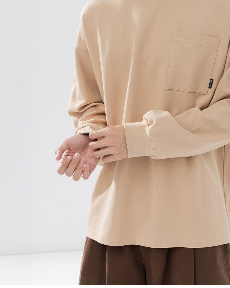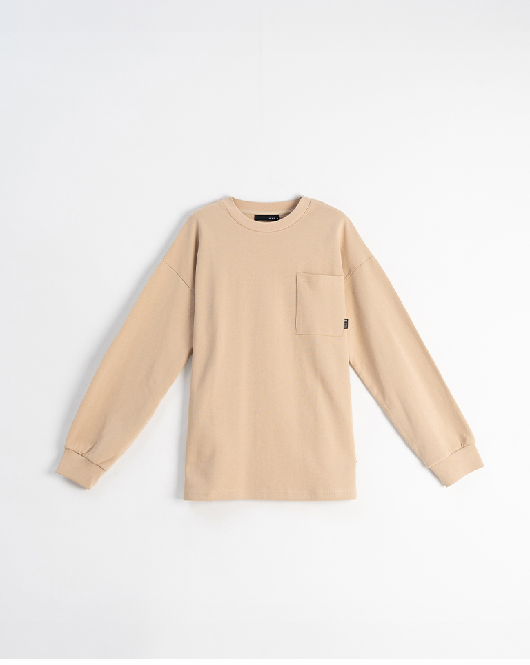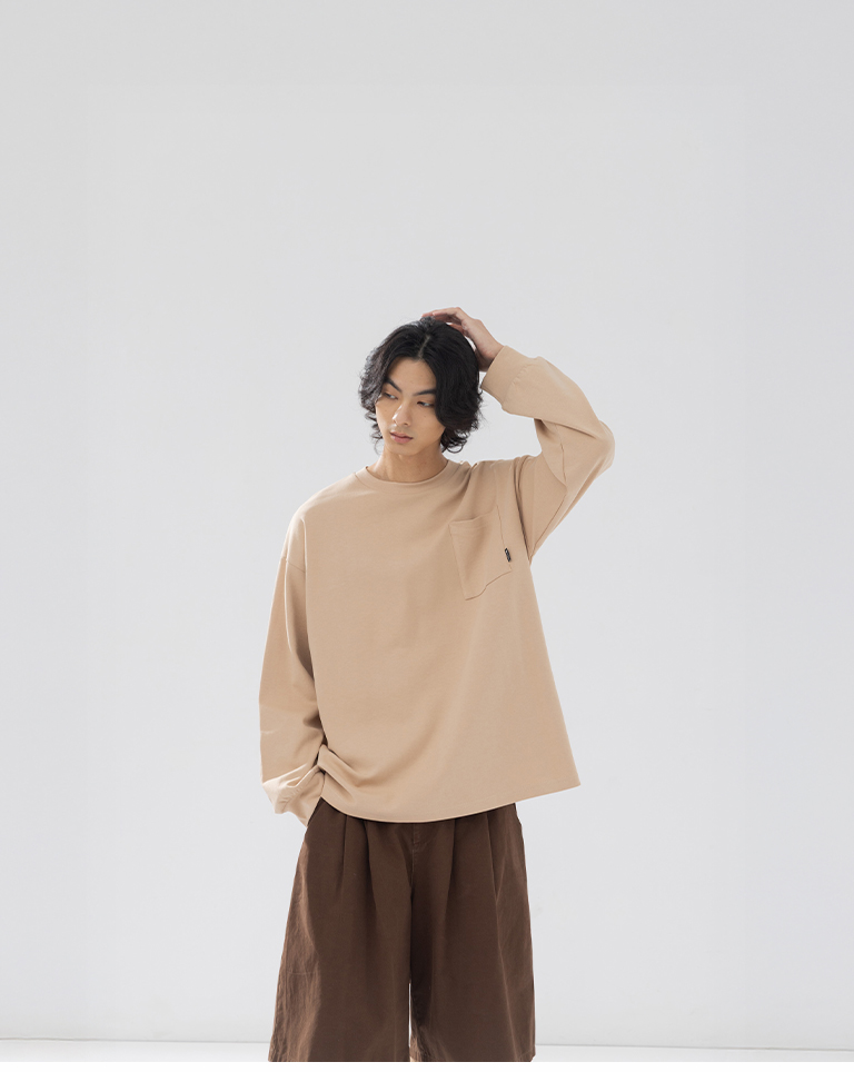 Men's Plain Single Pocket Crew Neck Long Sleeve Top - Khaki S/M/L/XL