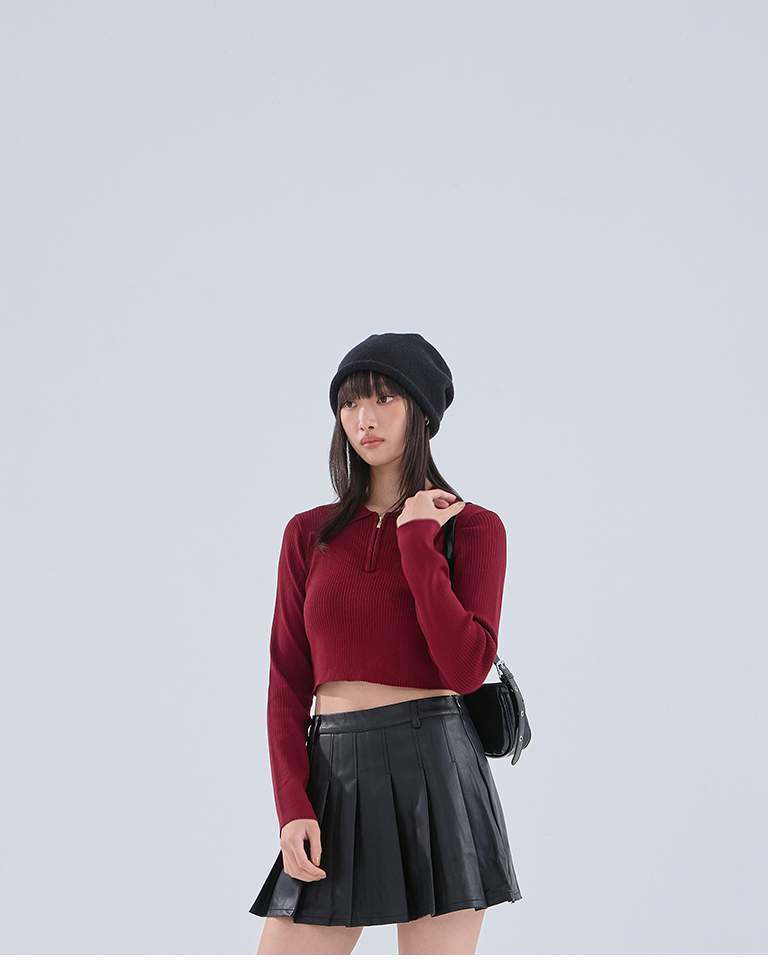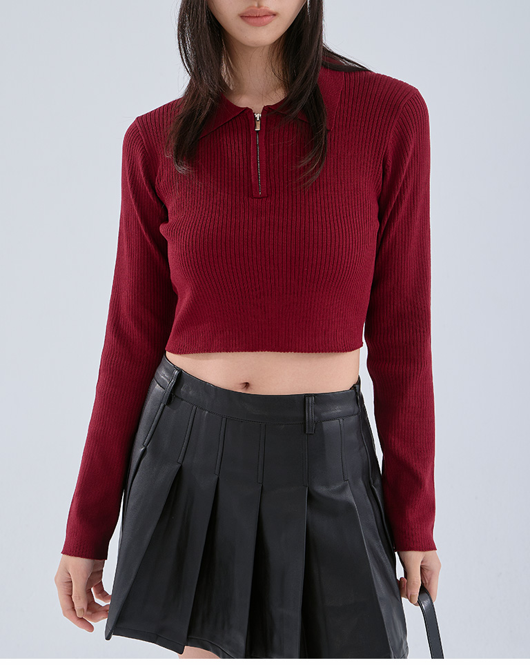 Half-placket fitted knit top - red S/M