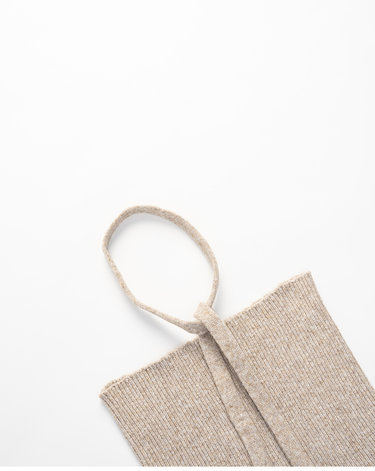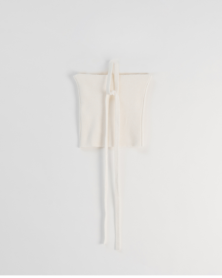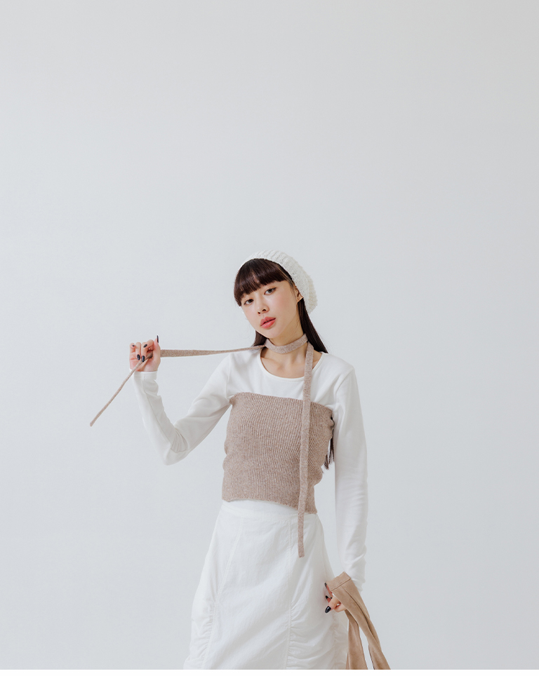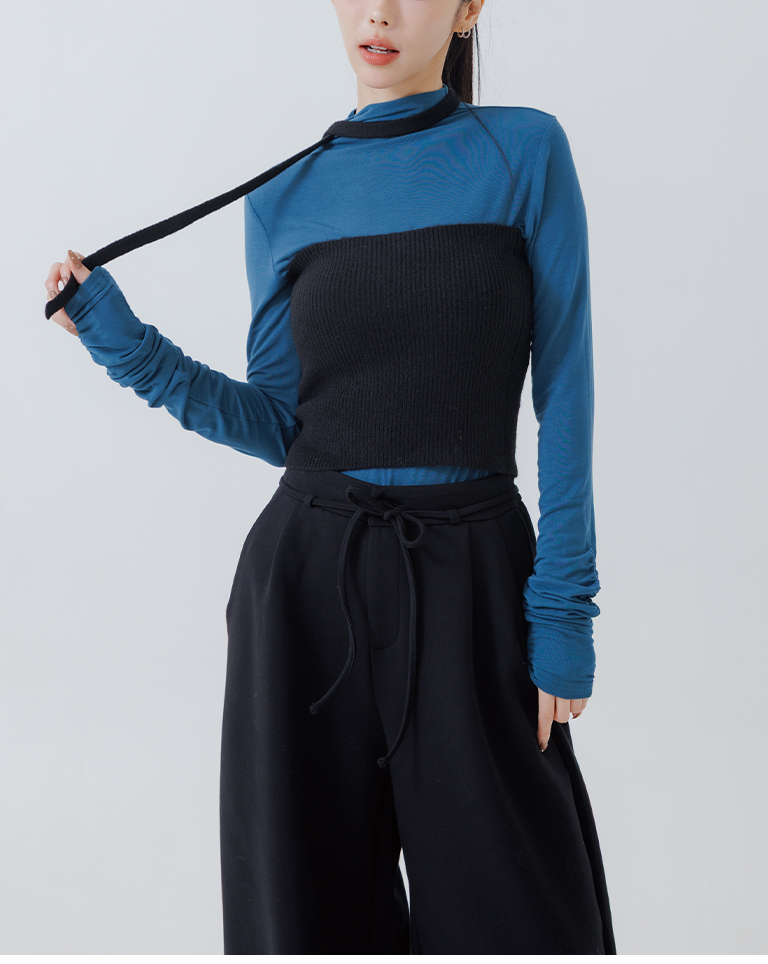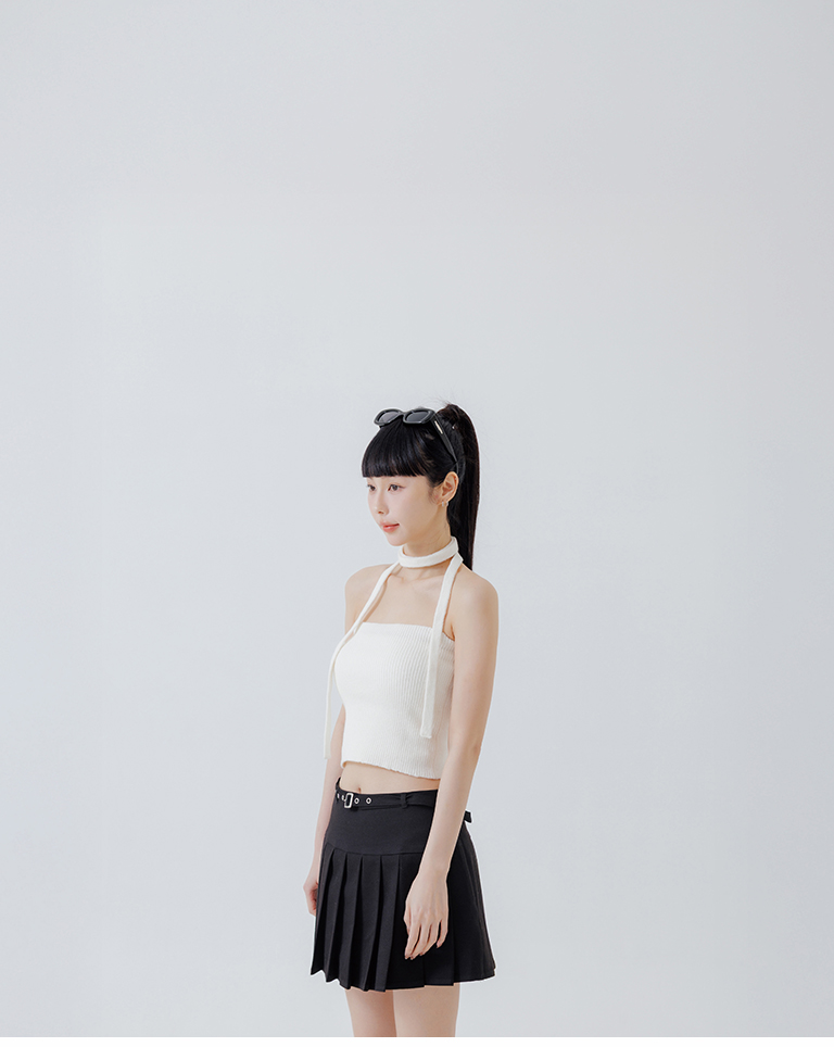 Ribbed fabric, straight hem, with tie detail, available in three colors.