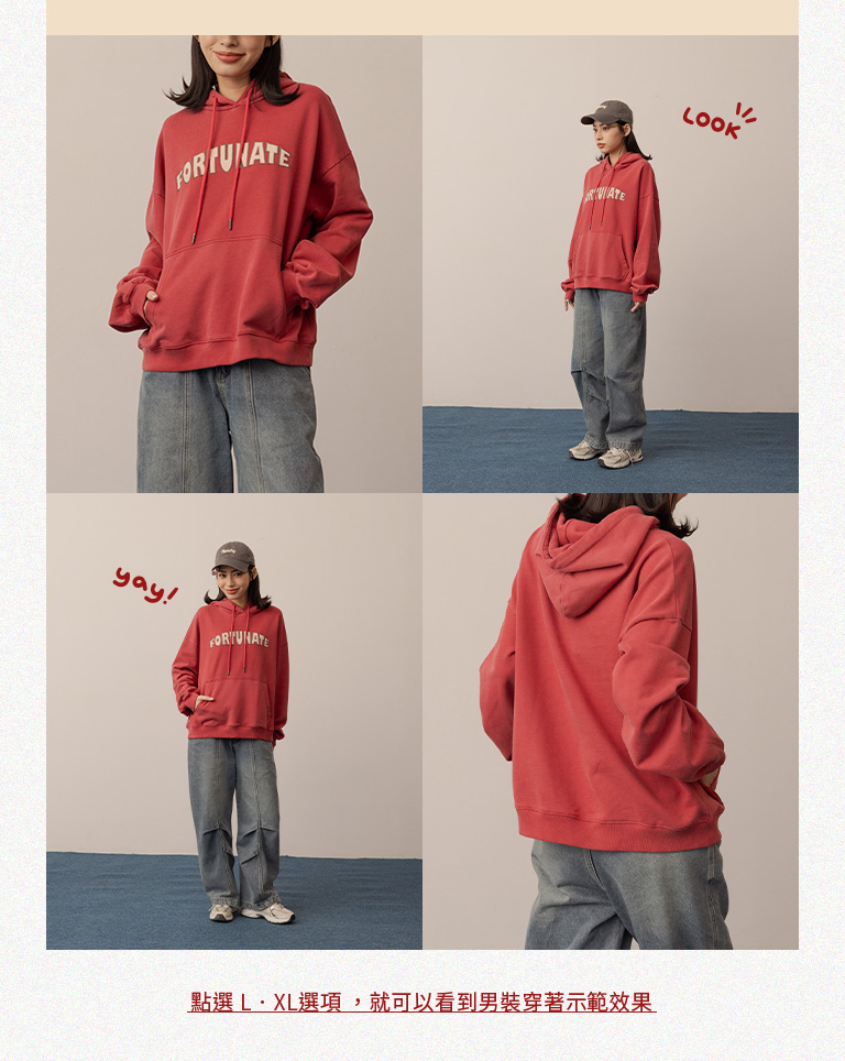 Peixuan Joint Washed Embroidered Pocket Hooded Sweatshirt - Red S/M/L/XL