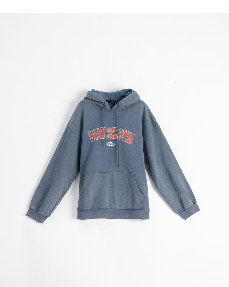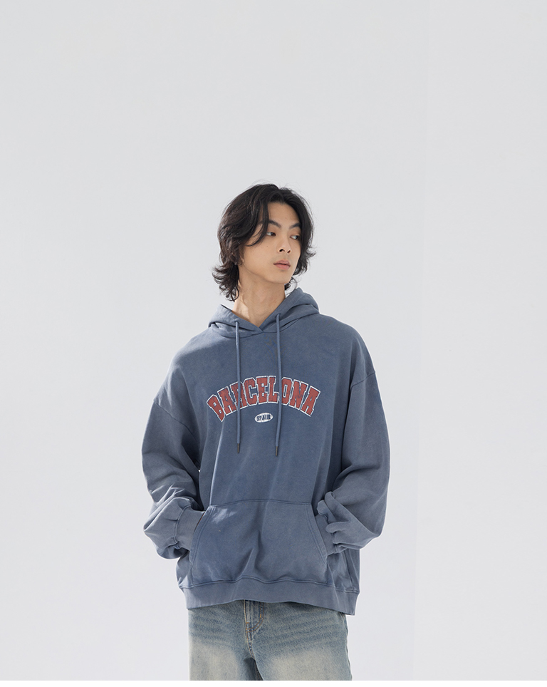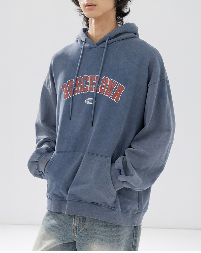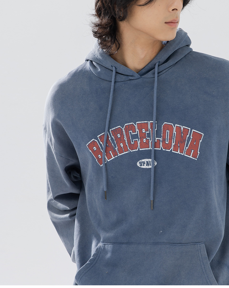 Men's BARCELONA Washed Printed Hoodie - Blue M/L/XL