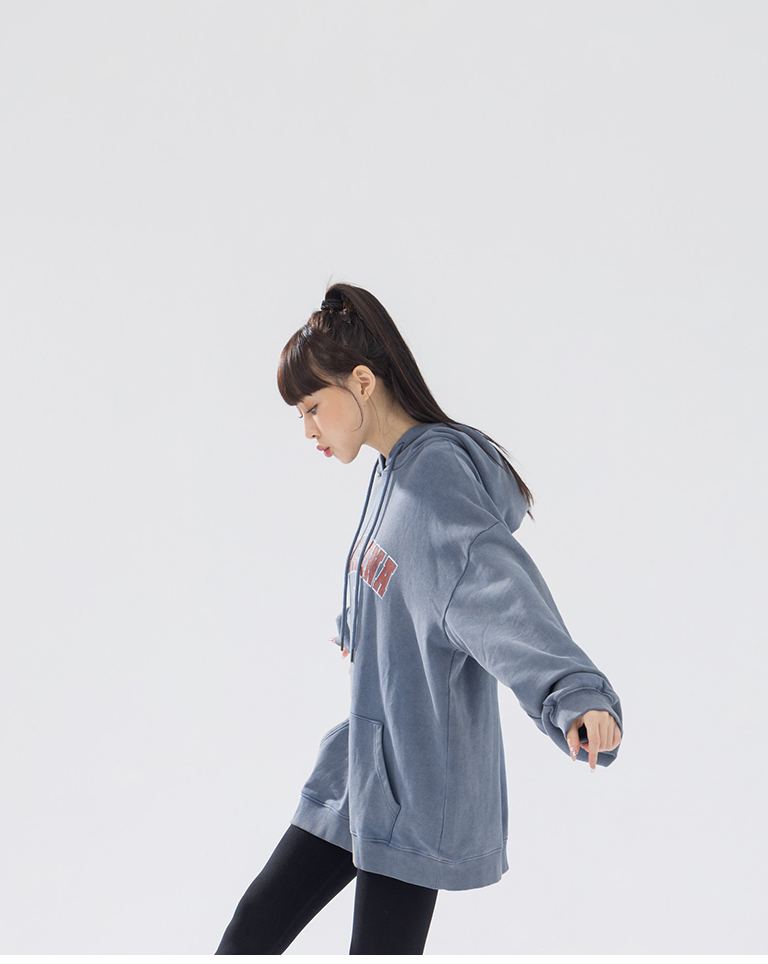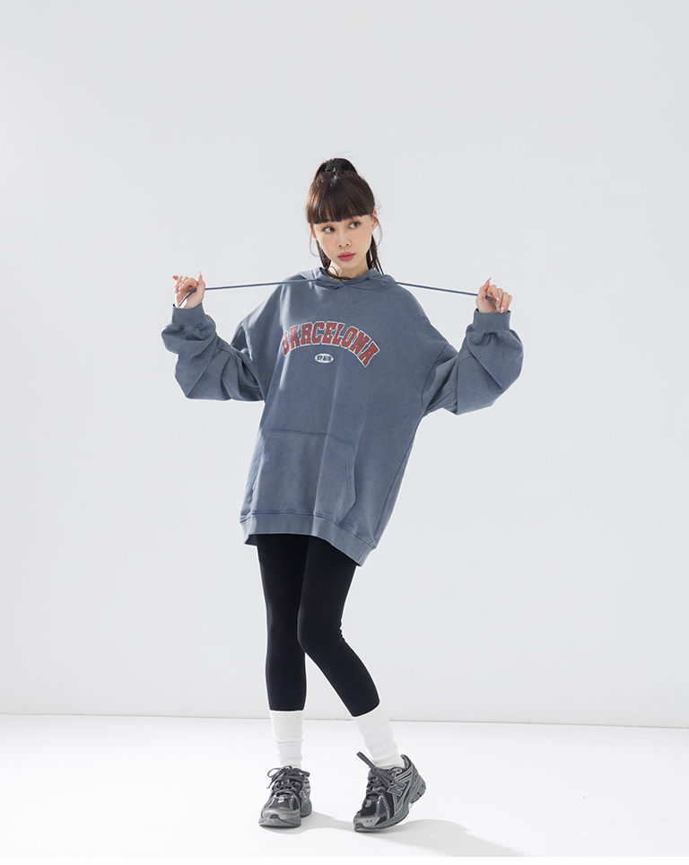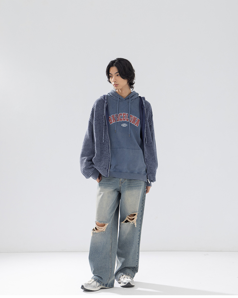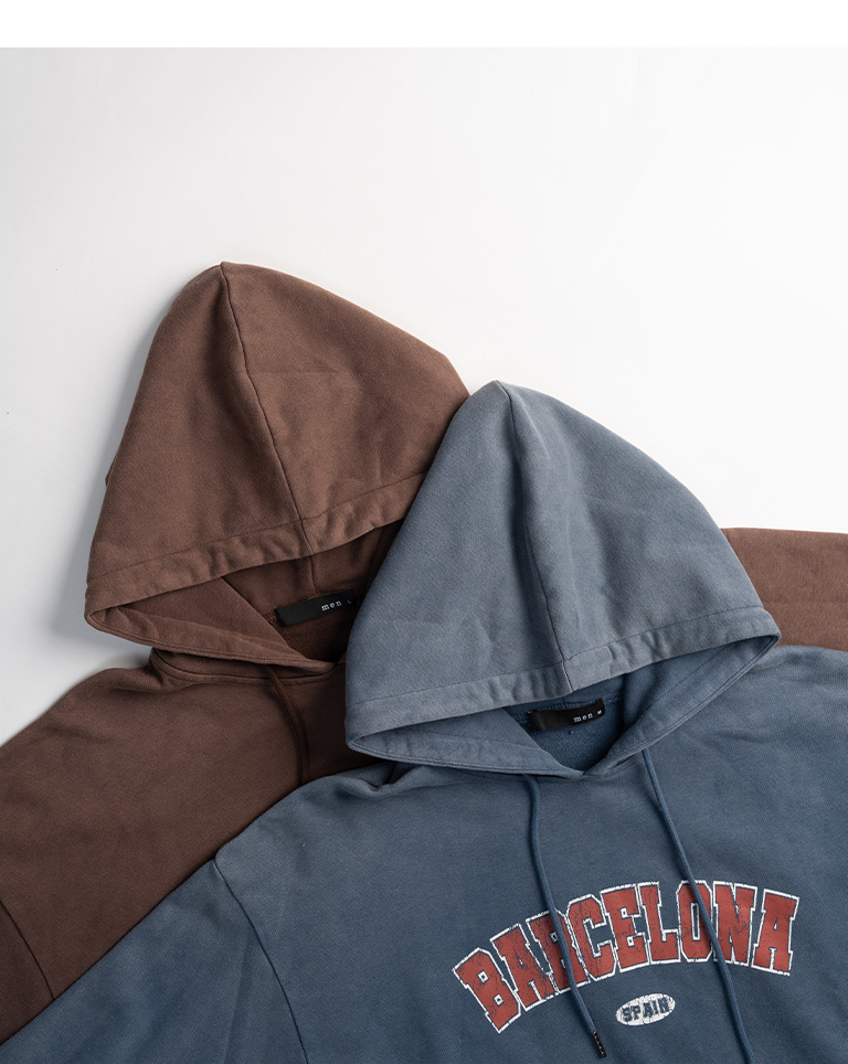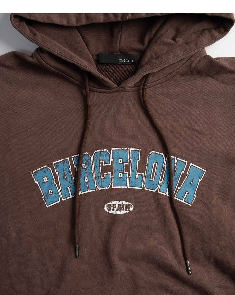 Men's BARCELONA Washed Printed Hoodie - Blue M/L/XL