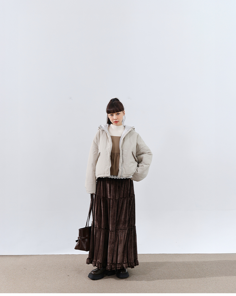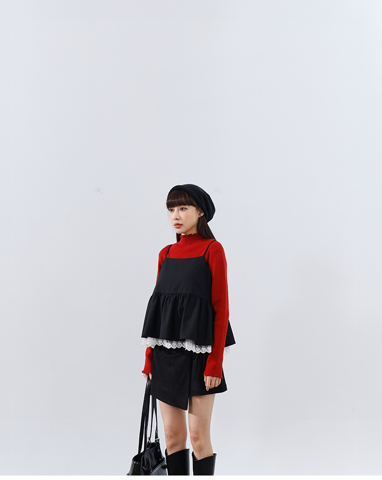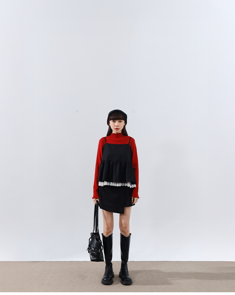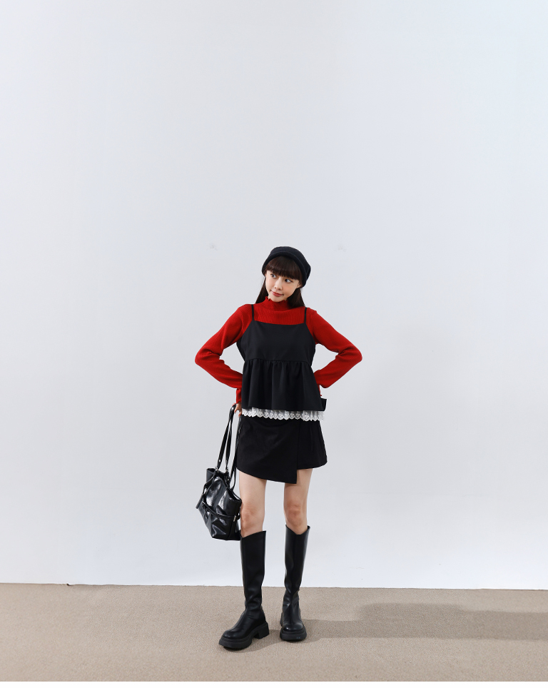 您所詢問的搭配商品,這邊提供【01099234 -基礎素面坑條針織高領上衣 五色售】給您參考看看喔,謝謝您。