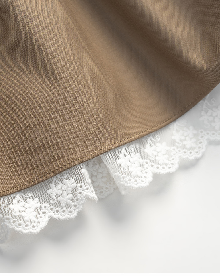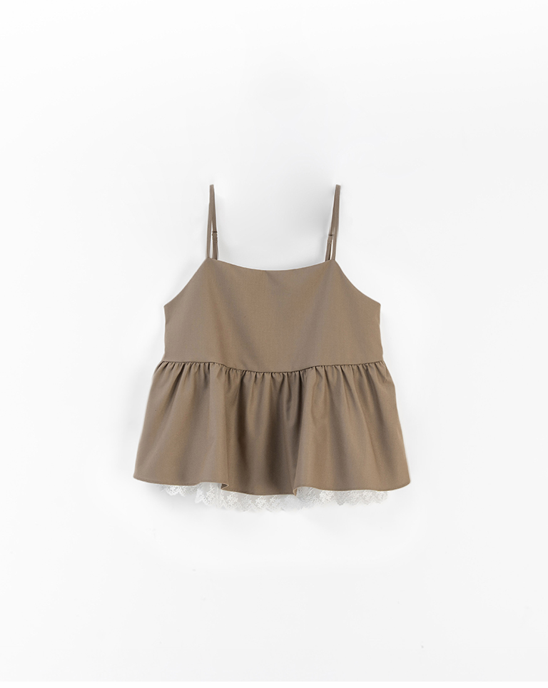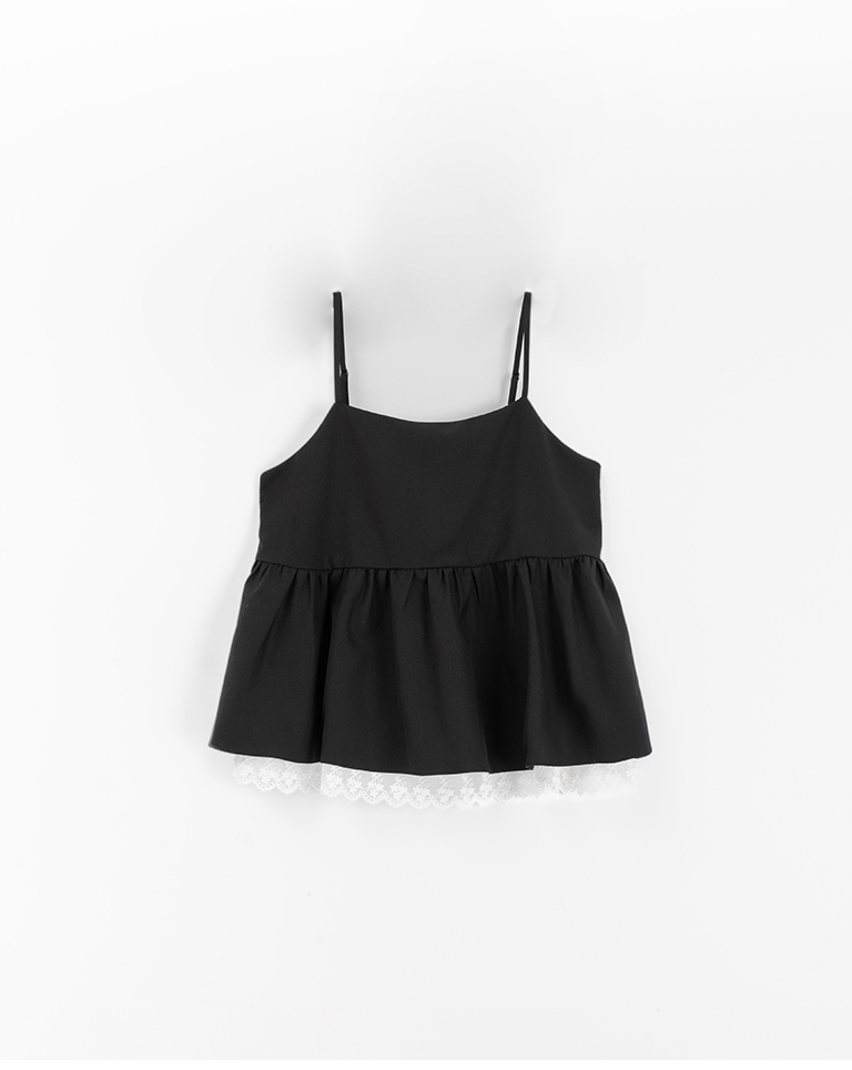 Lace-trimmed, umbrella-hemmed, spaghetti strap cover-up vest, available in two colors. S/M
