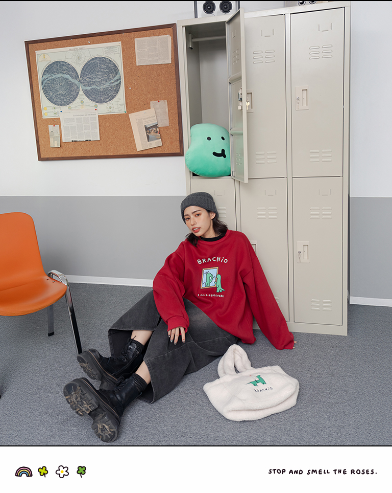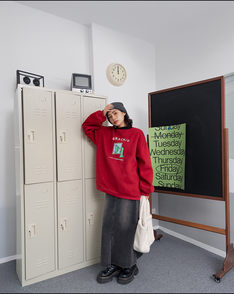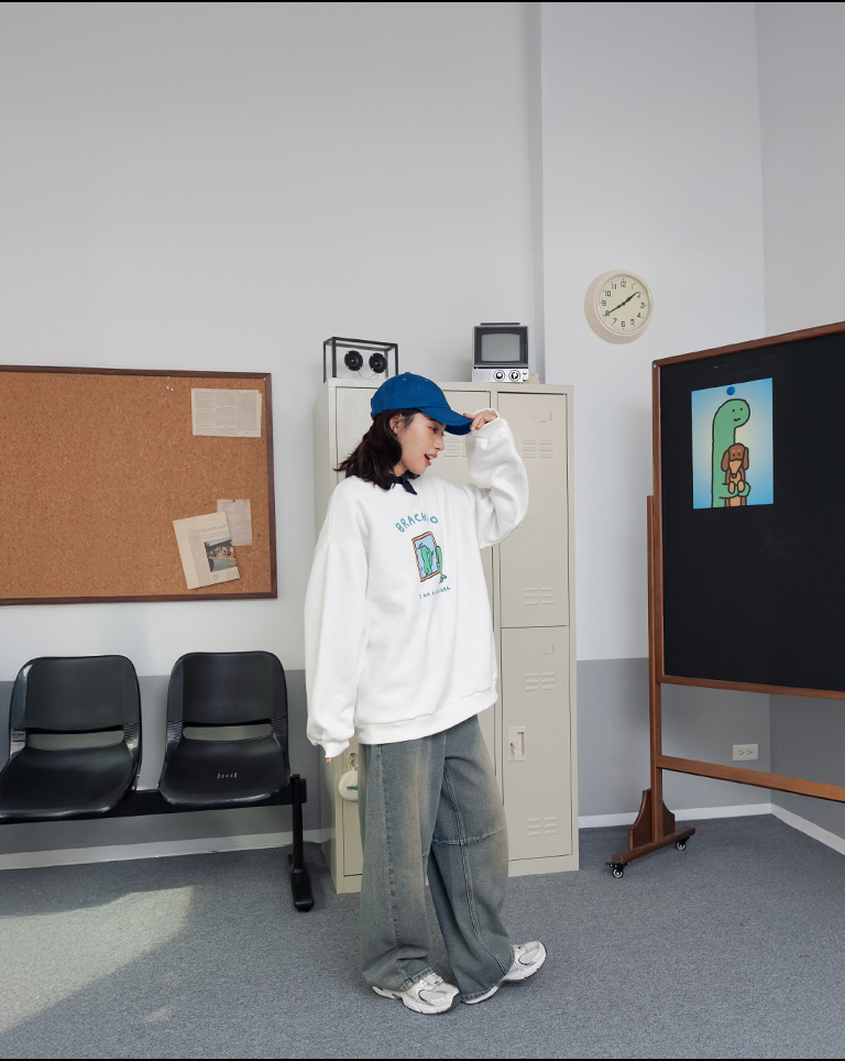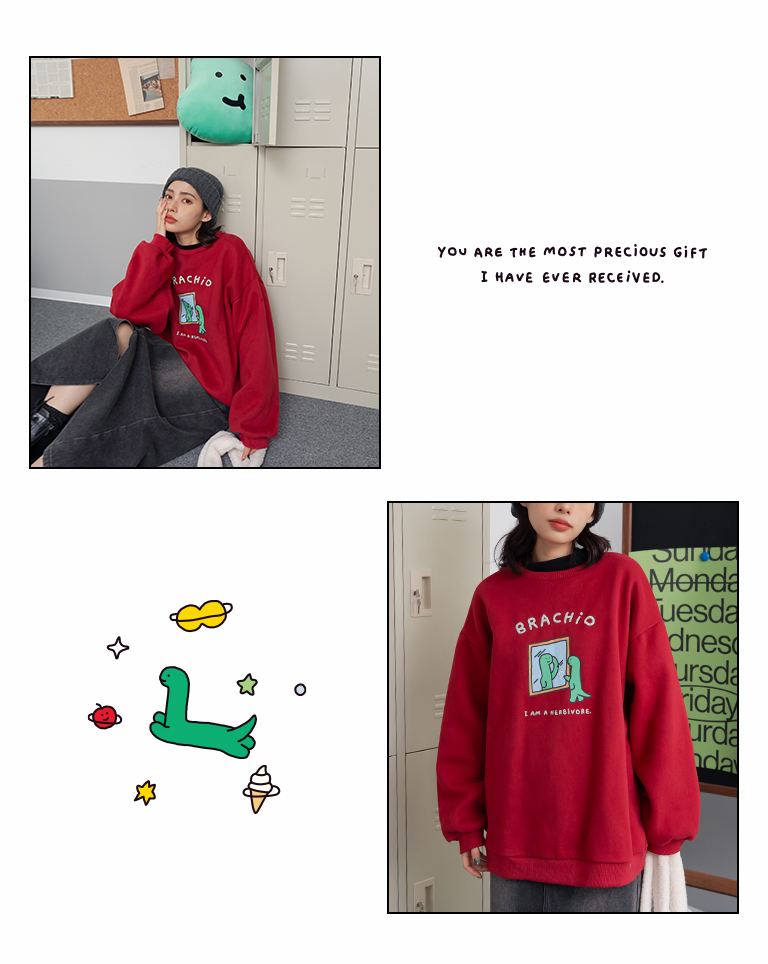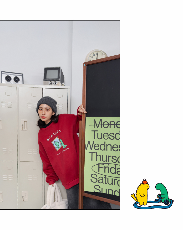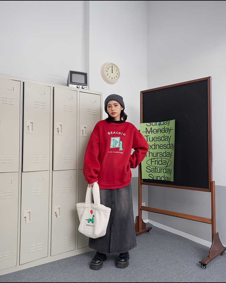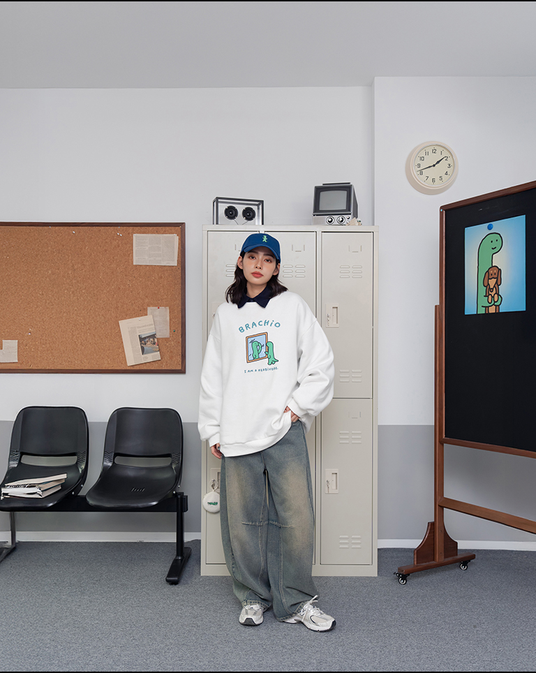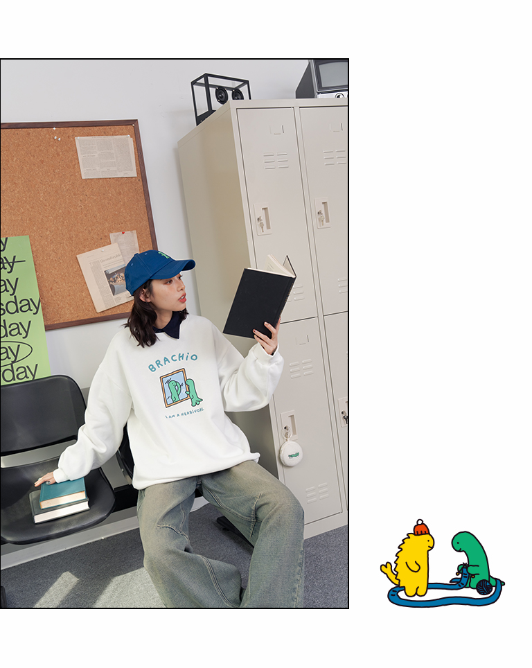 JOGUMAN Mirror-Style BRACHIO Fleece Long-Sleeve T-Shirt, Available in Two Colors