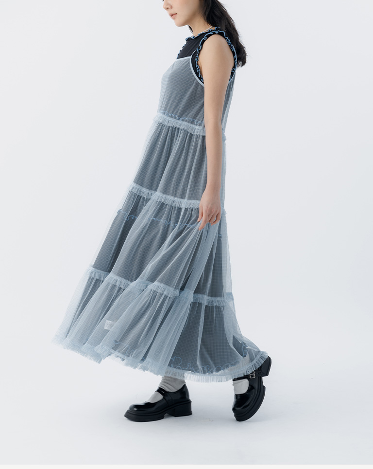 Marshmallow-patterned sheer mesh blouse, available in three colors, sizes S/M/L.