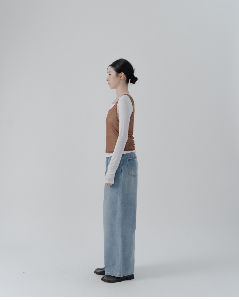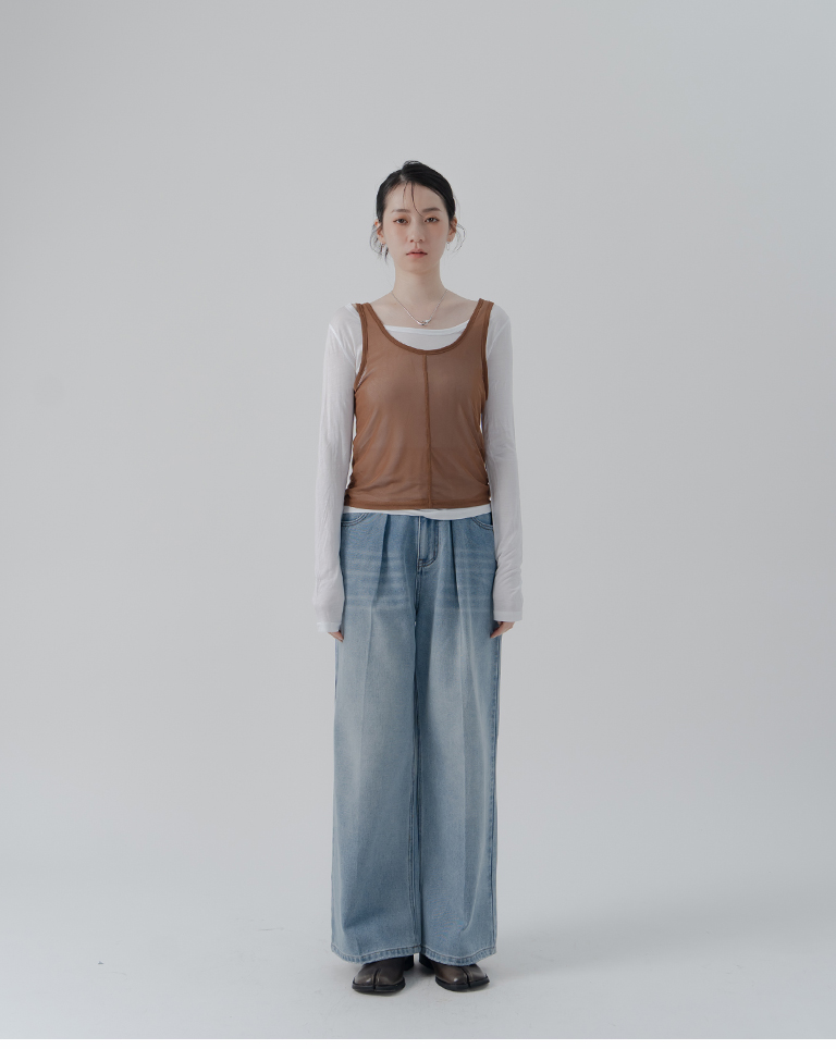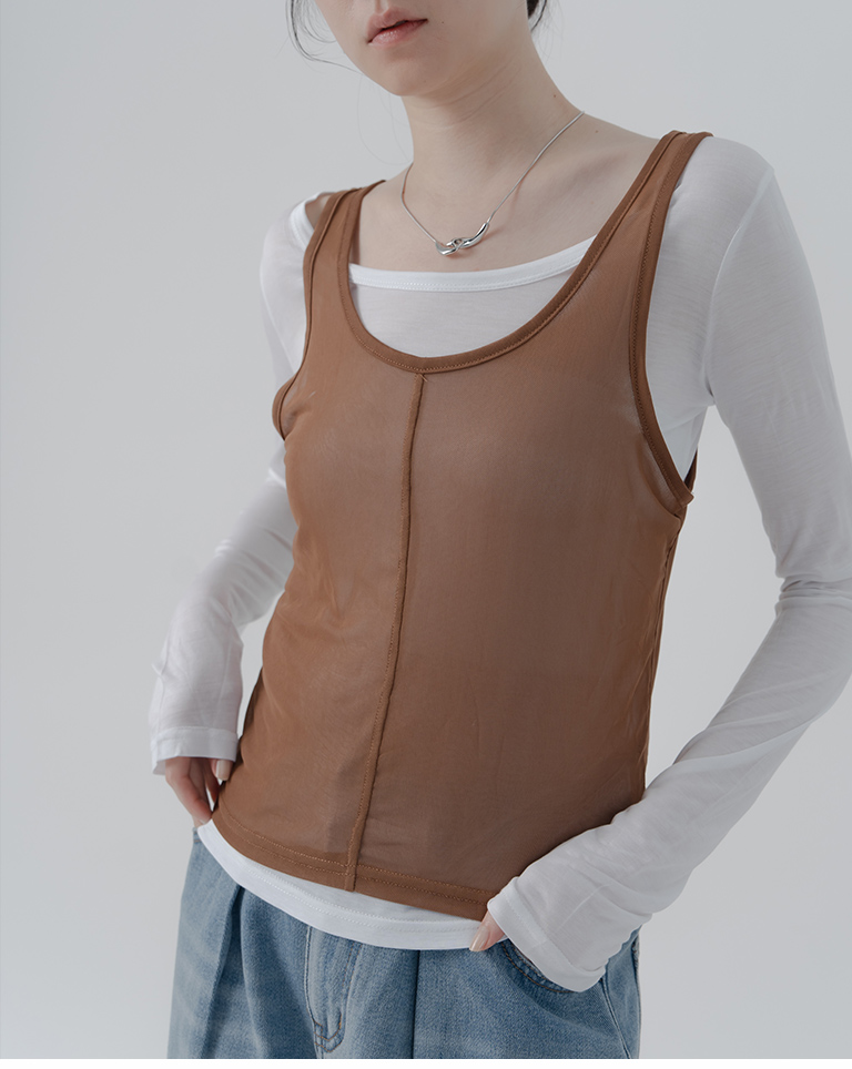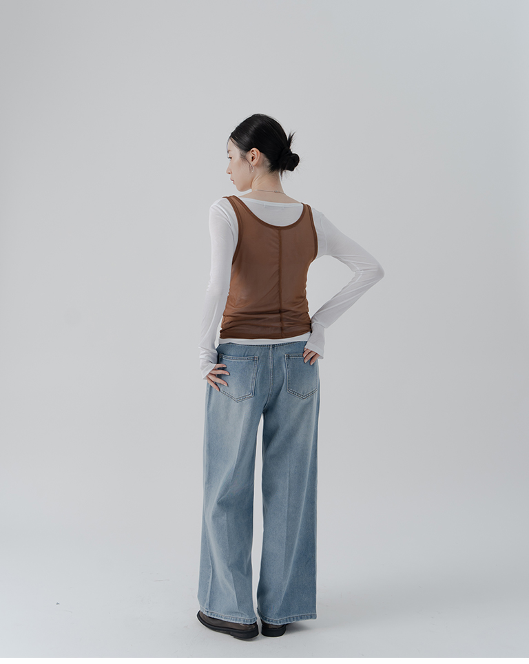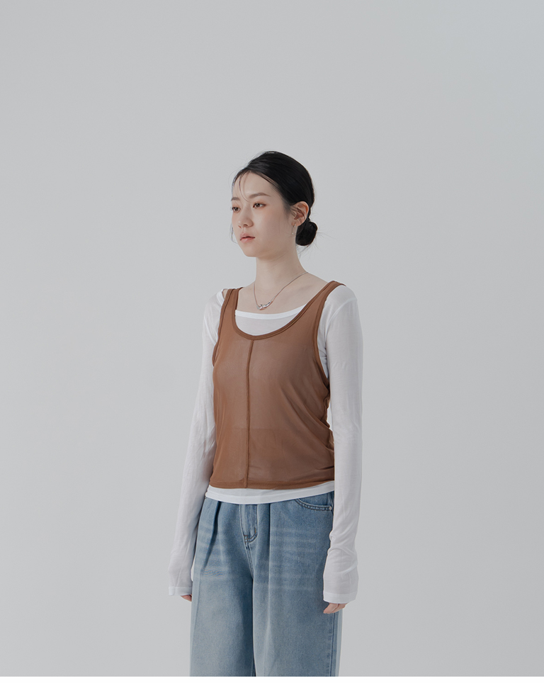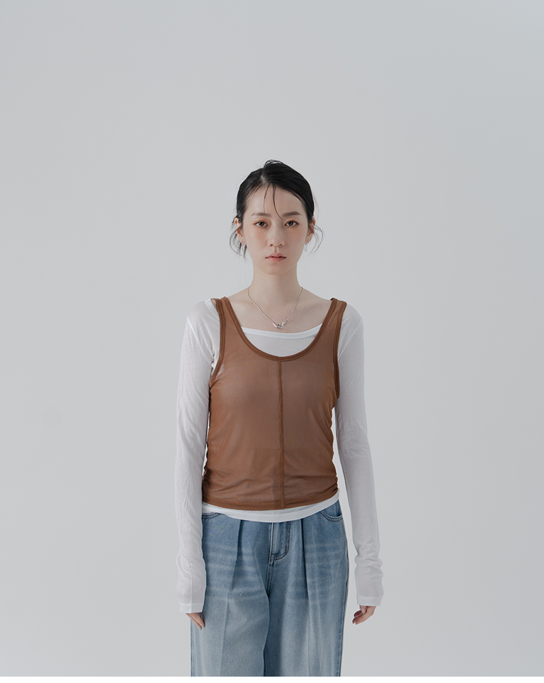 Simple Sheer Vest Two-Piece Long Sleeve Top - White