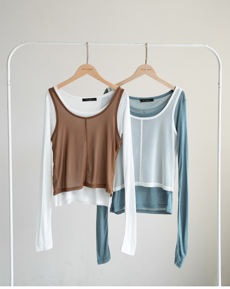您詢問的藍色打底上衣為【01140081簡約透膚背心兩件式長袖上衣-藍】,此商品為兩件式販售,無單賣藍色上衣,謝謝您。