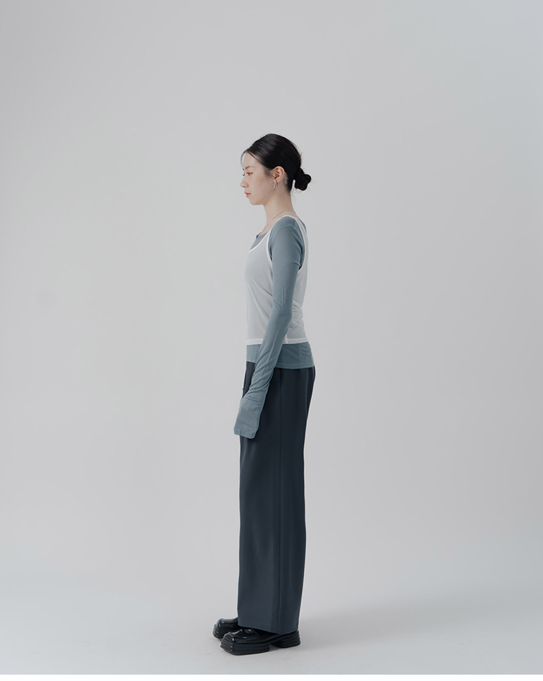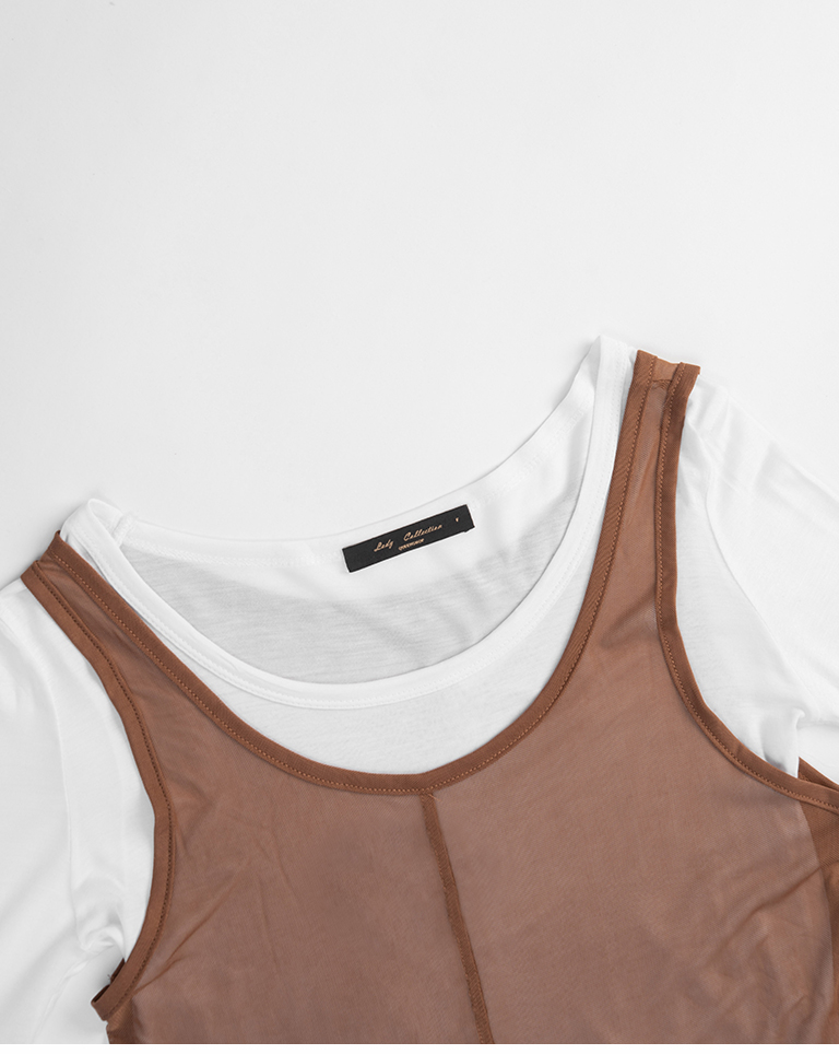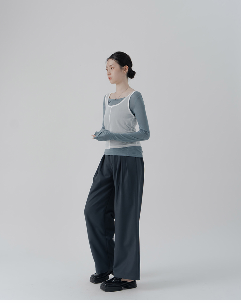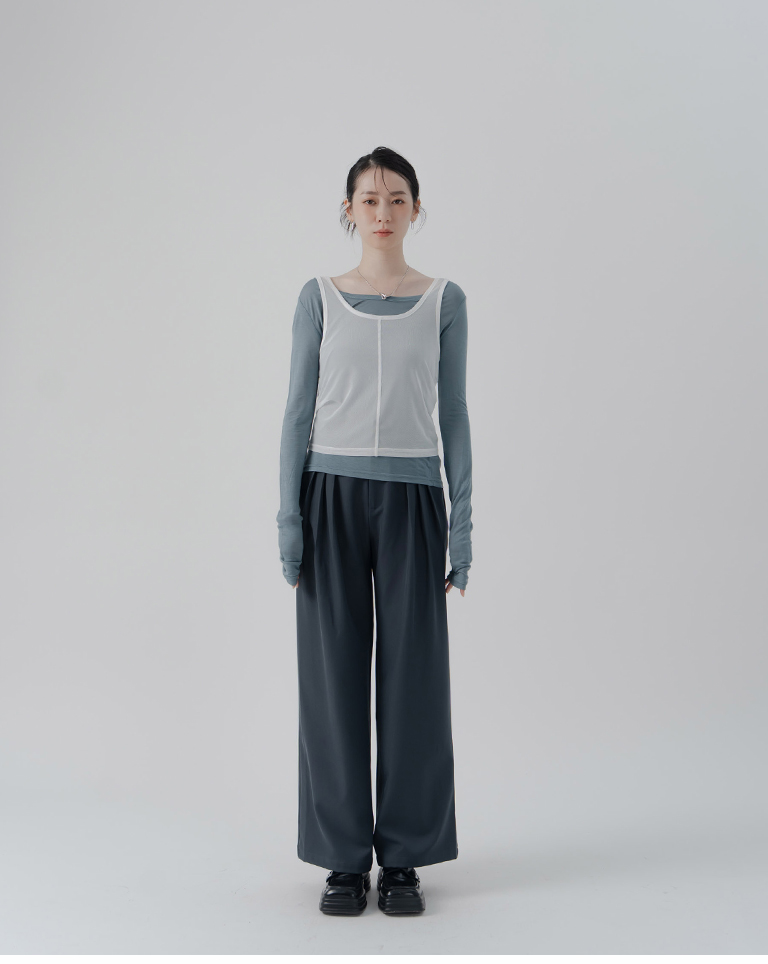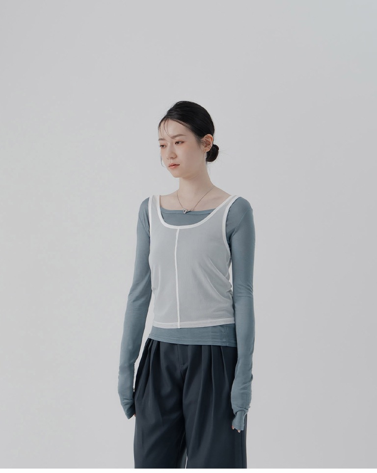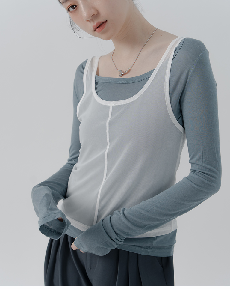 Simple Sheer Vest Two-Piece Long-Sleeved Top - Blue