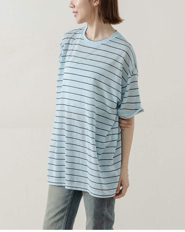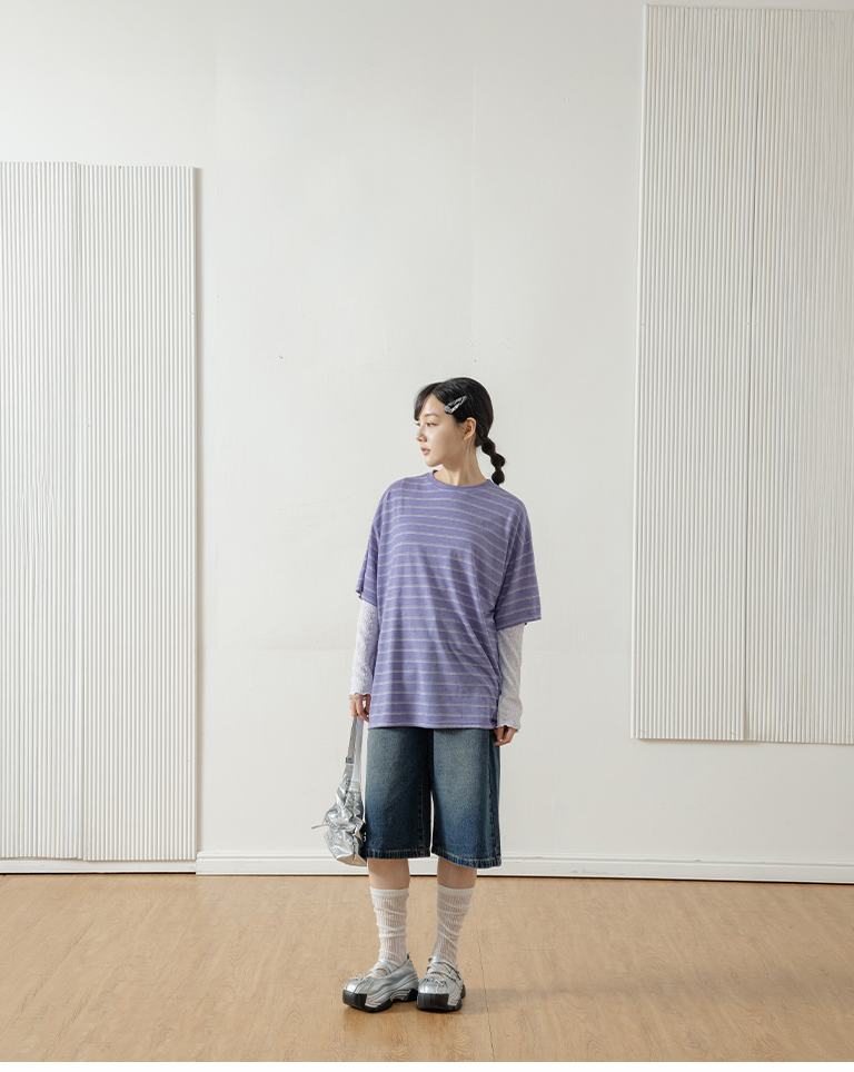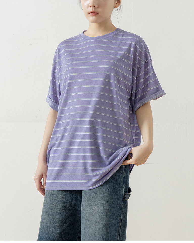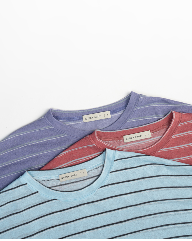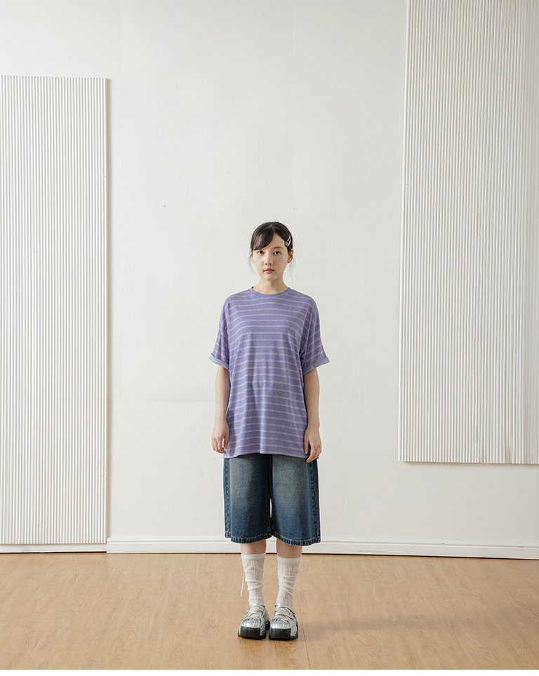 Striped wide-leg short-sleeved top in three colors
