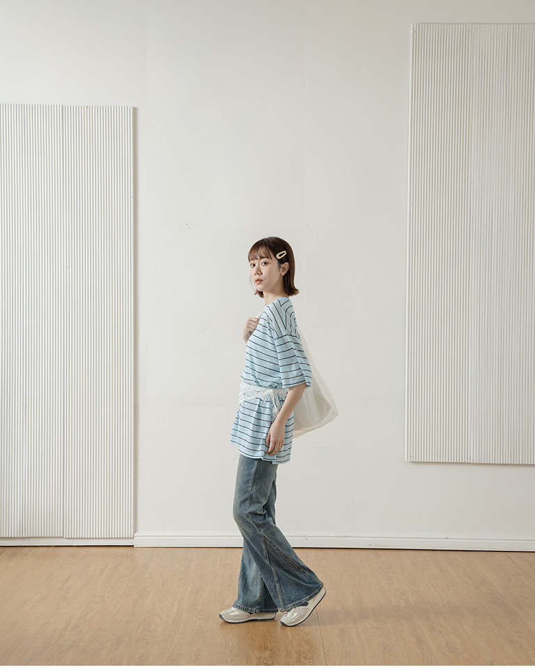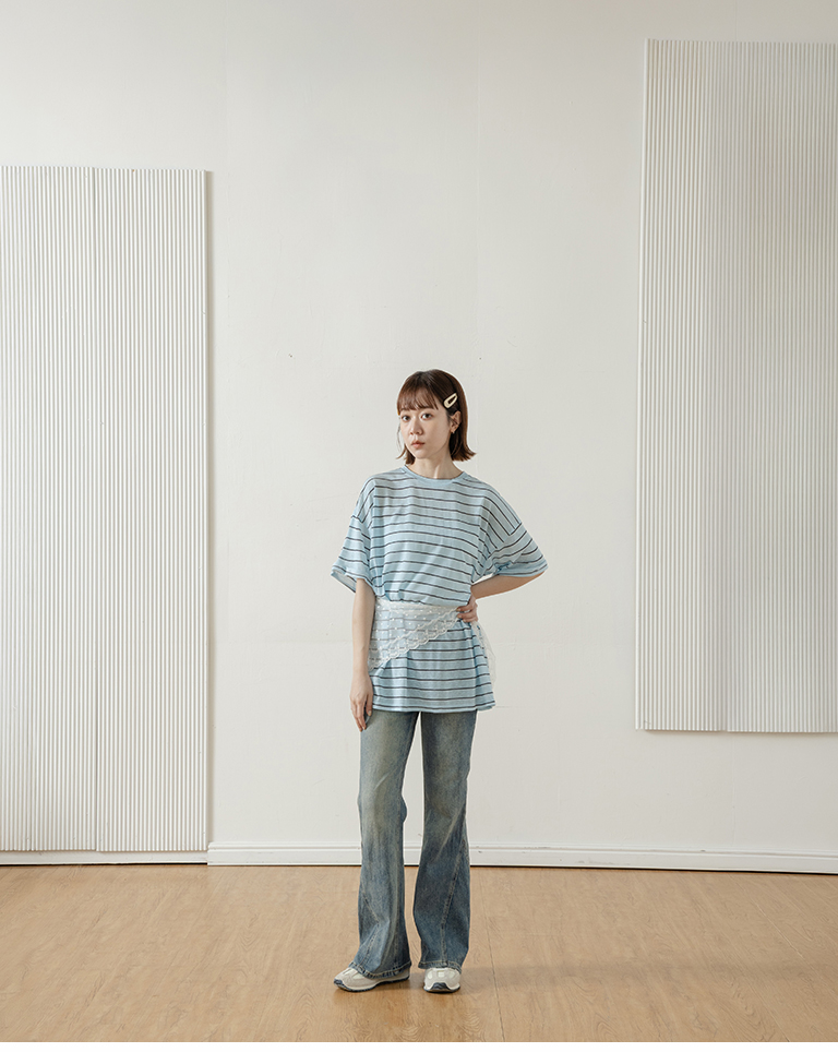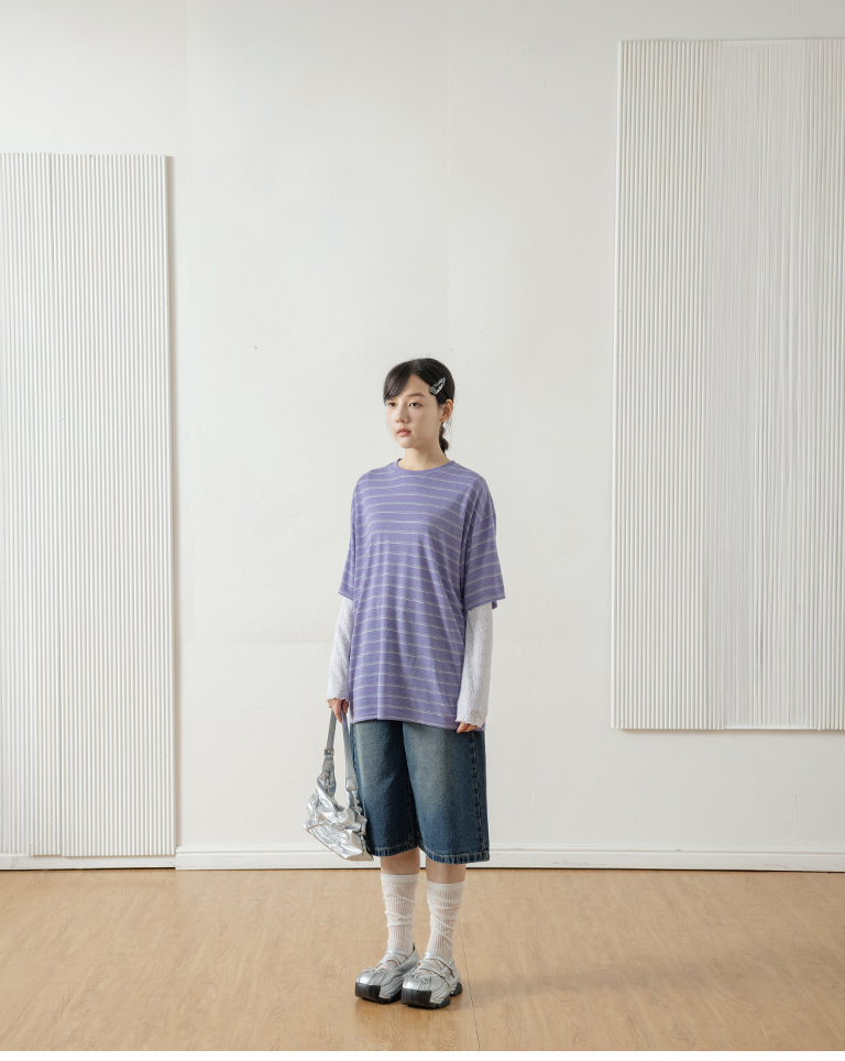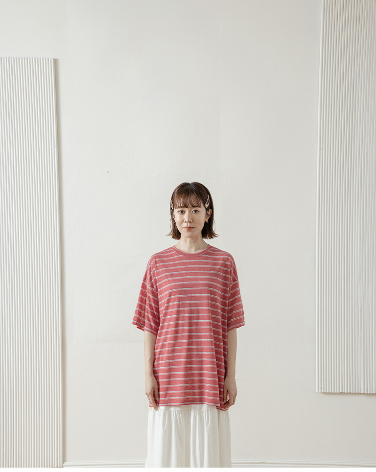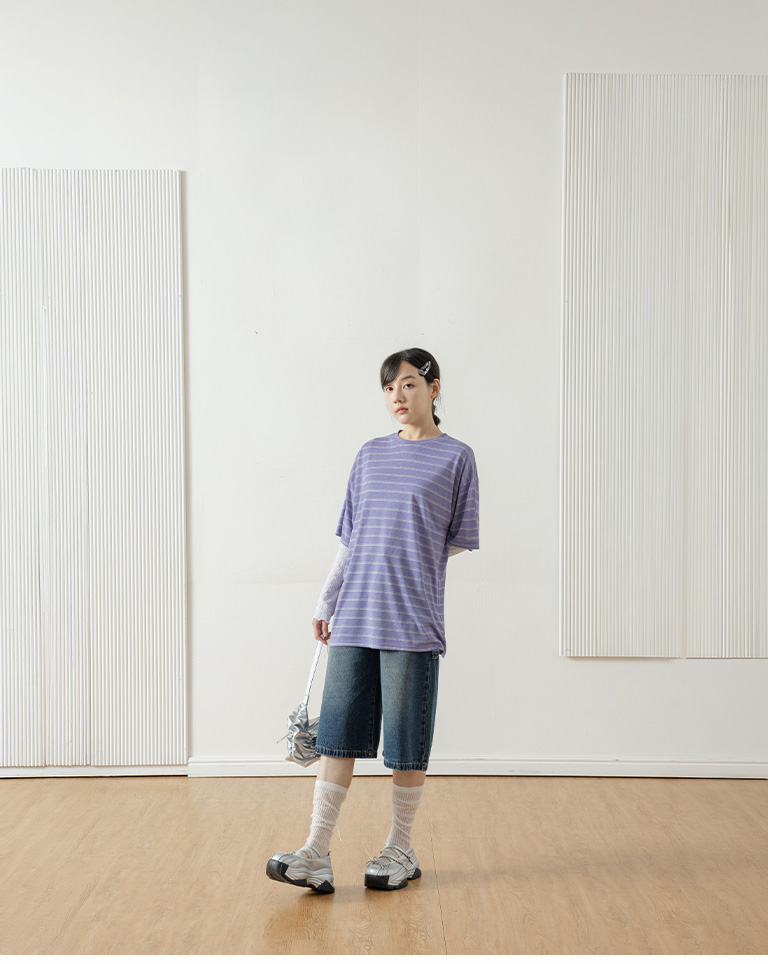 Striped wide-leg short-sleeved top in three colors
