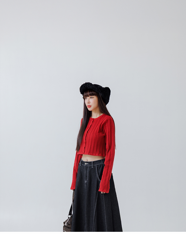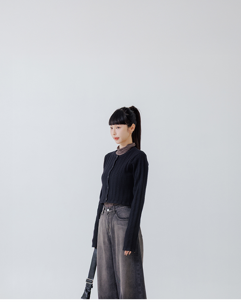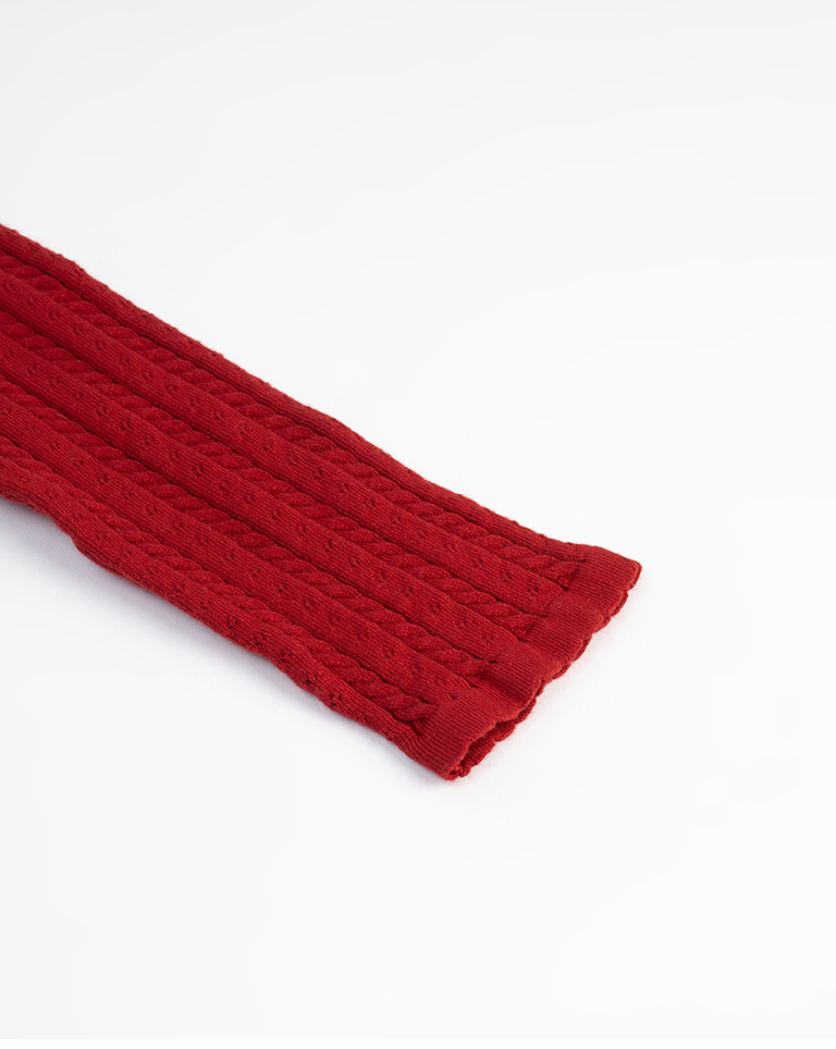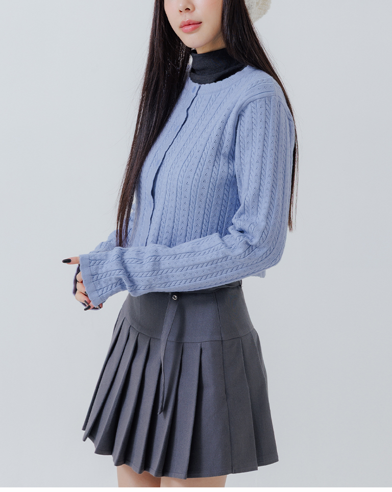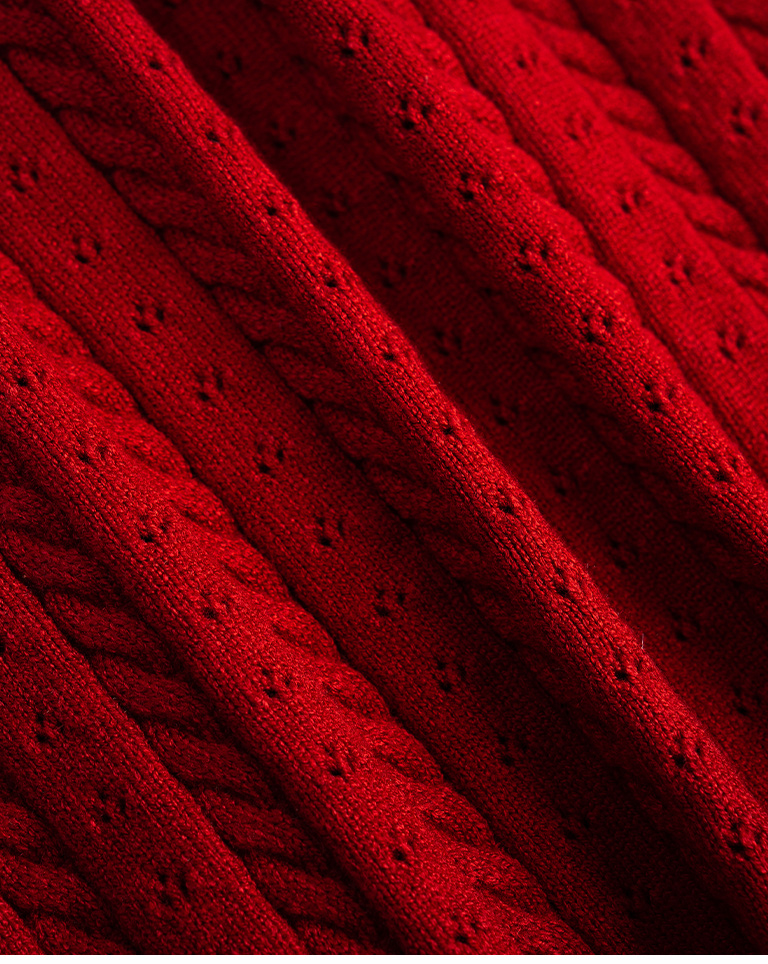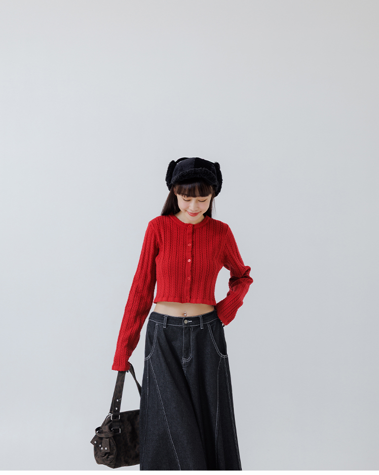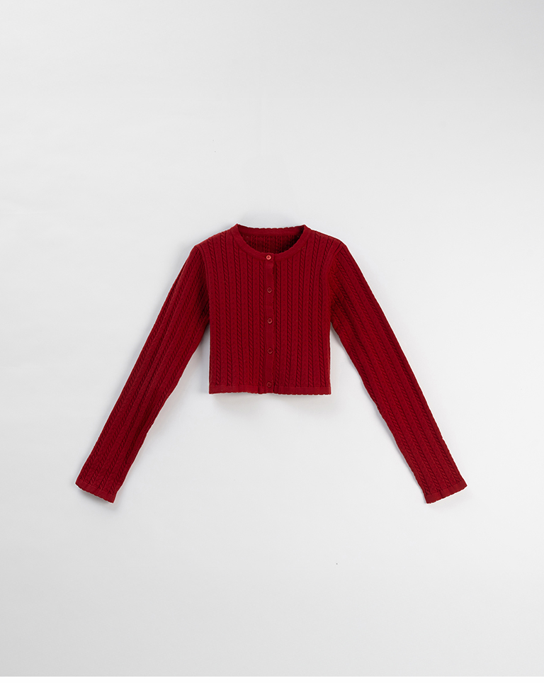 Hollow-out jacquard knit top with button-down design, available in four colors.