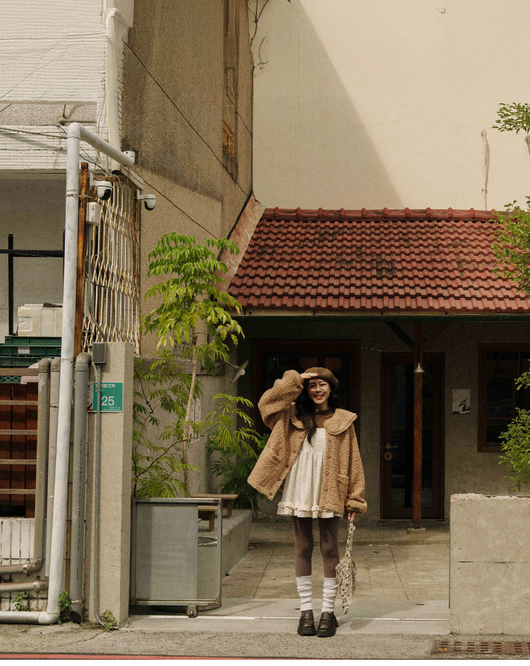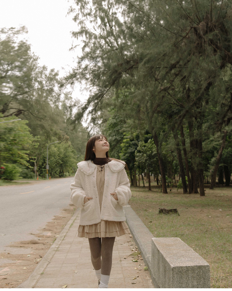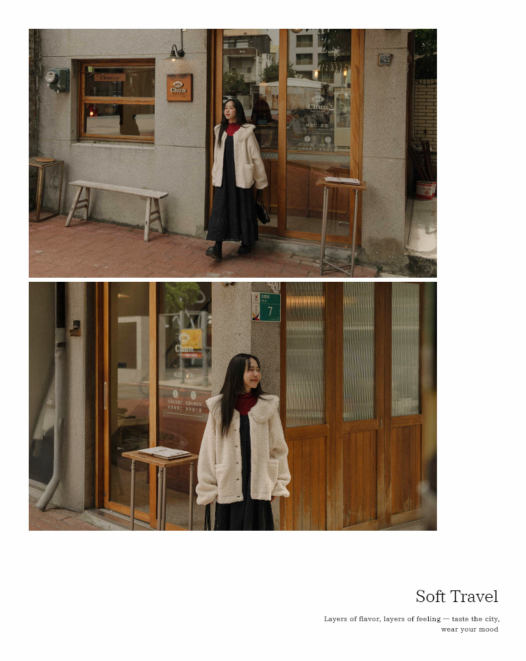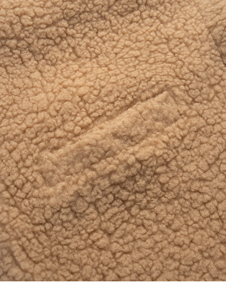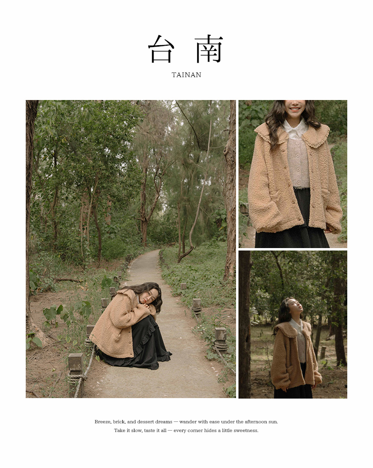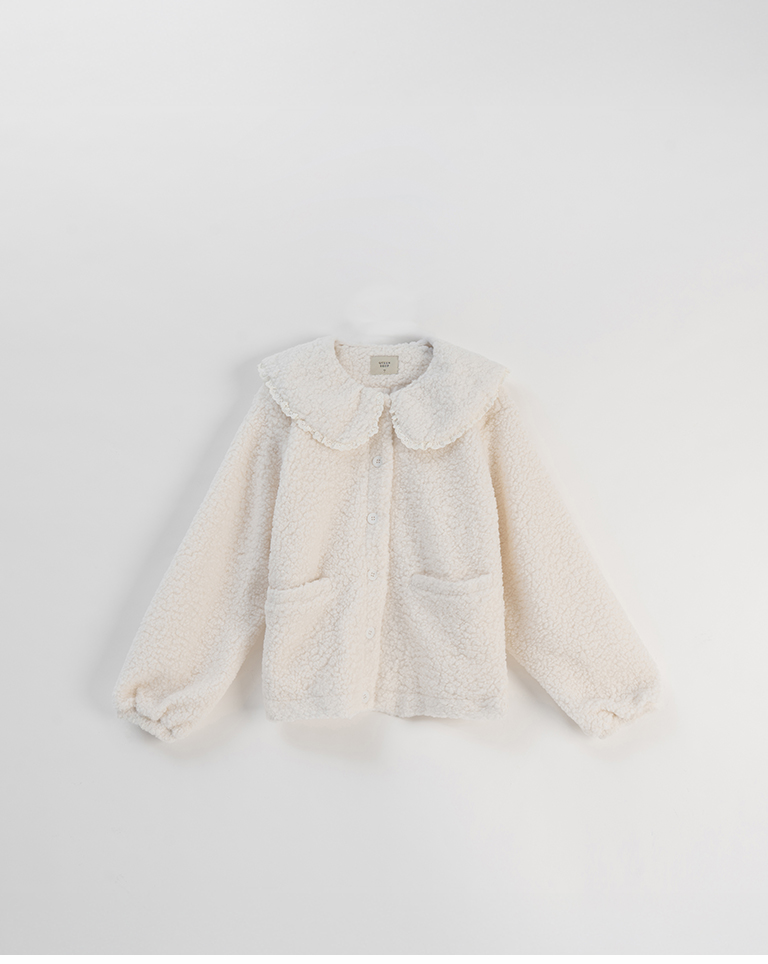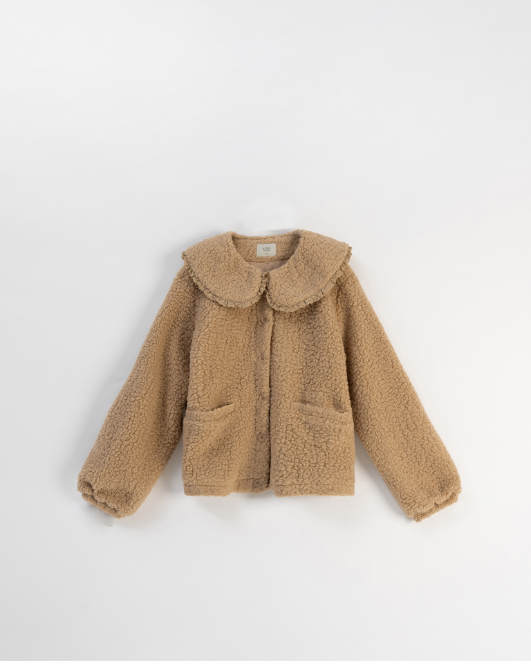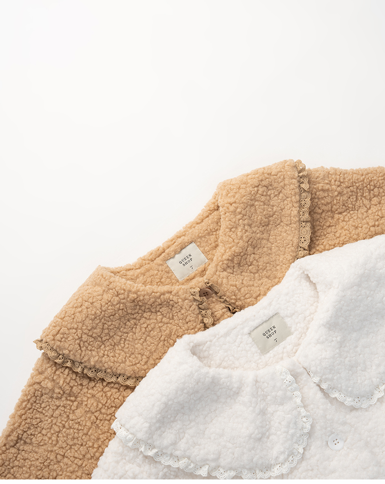 Peter Pan collar faux shearling coat, available in two colors.